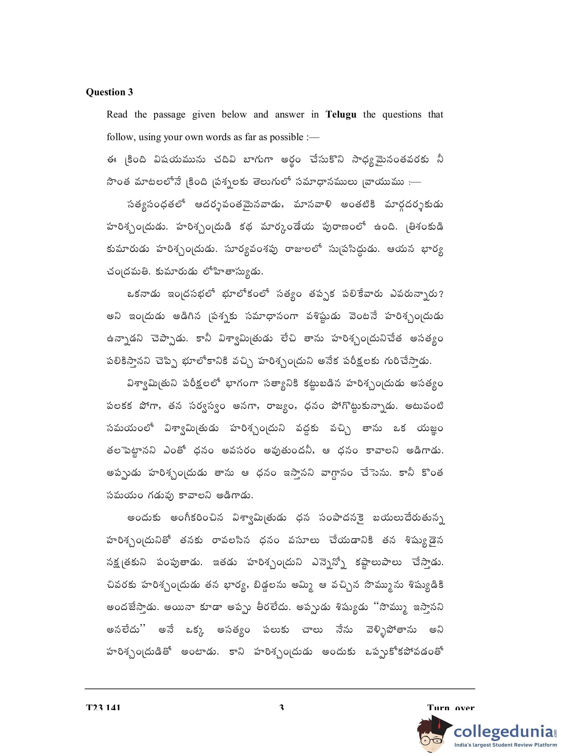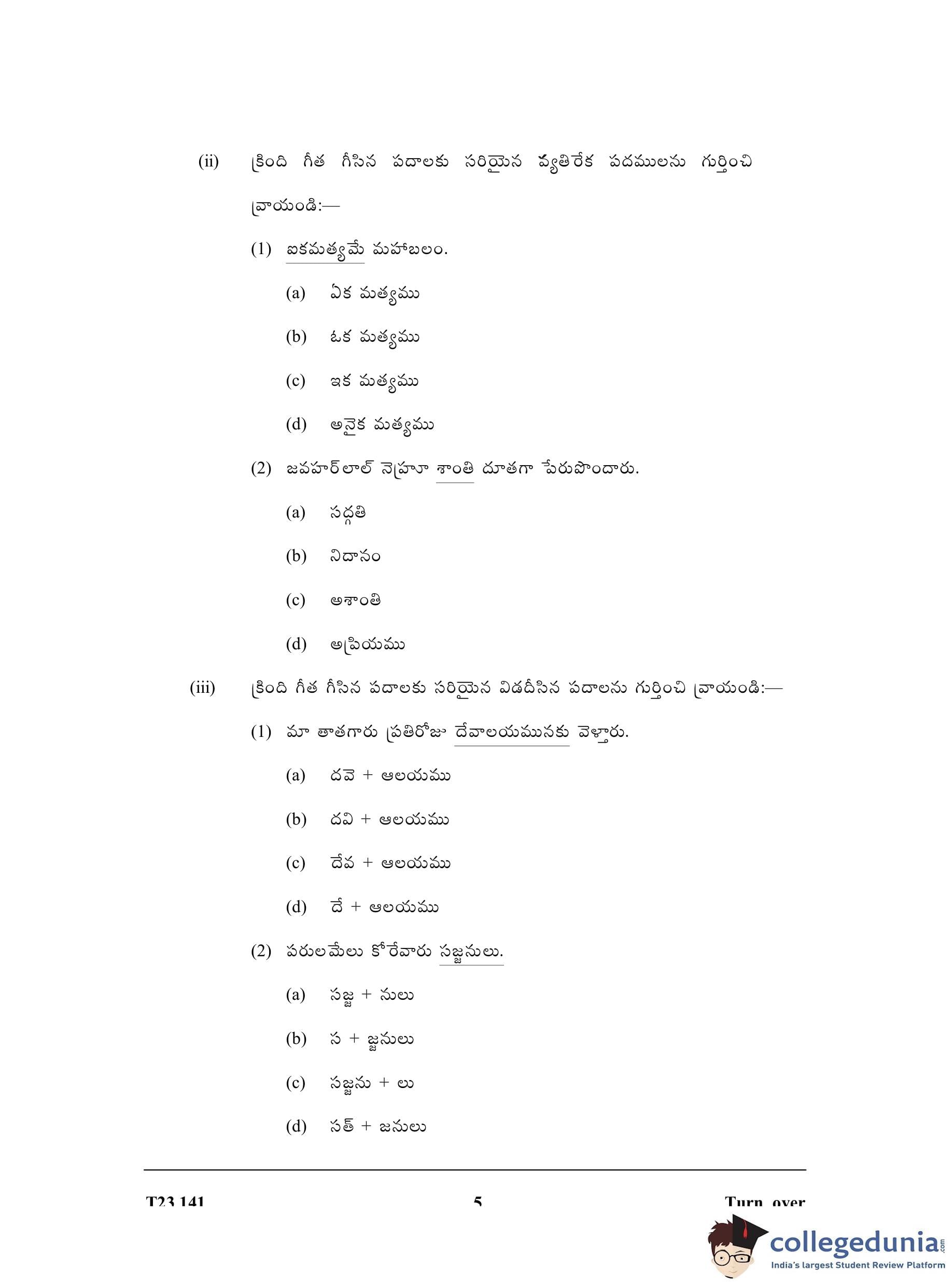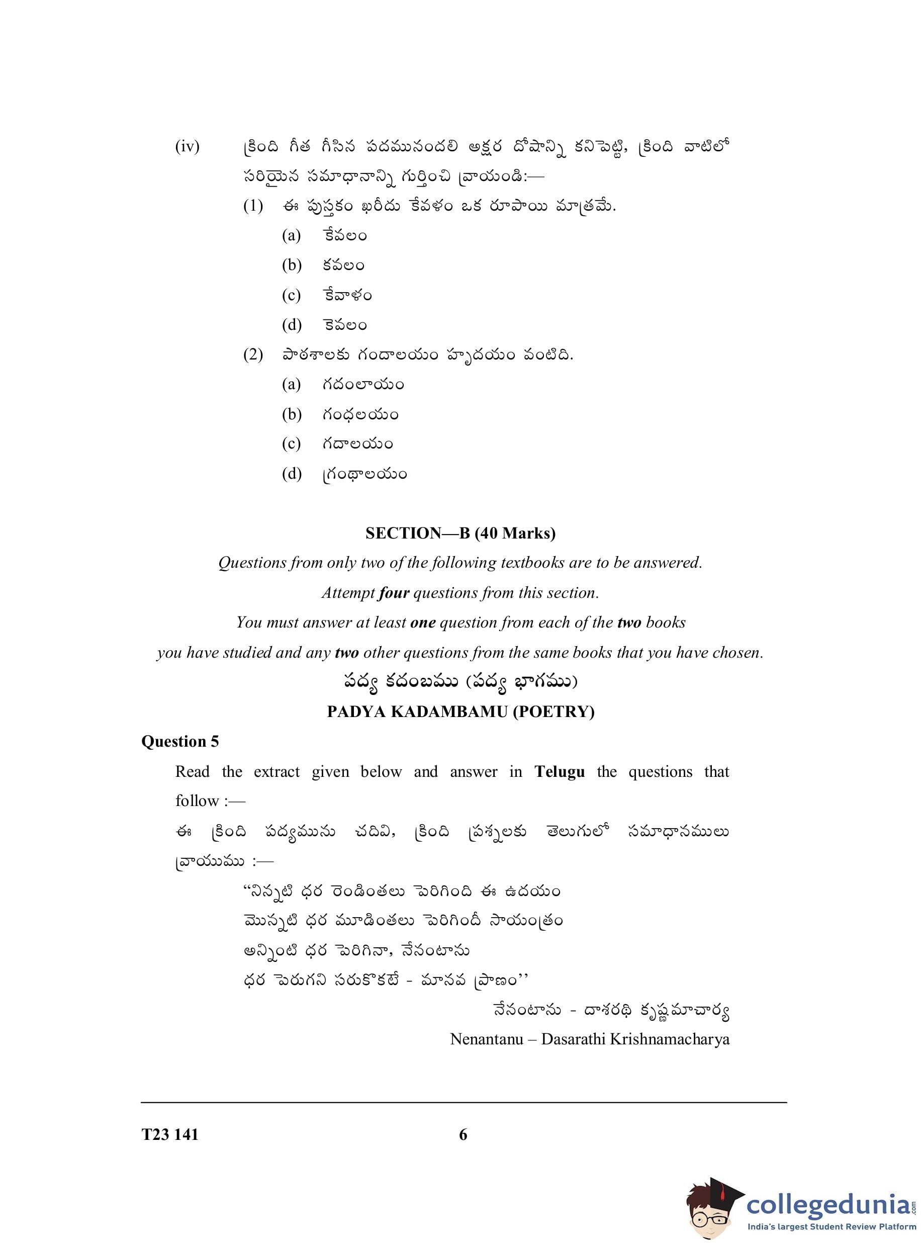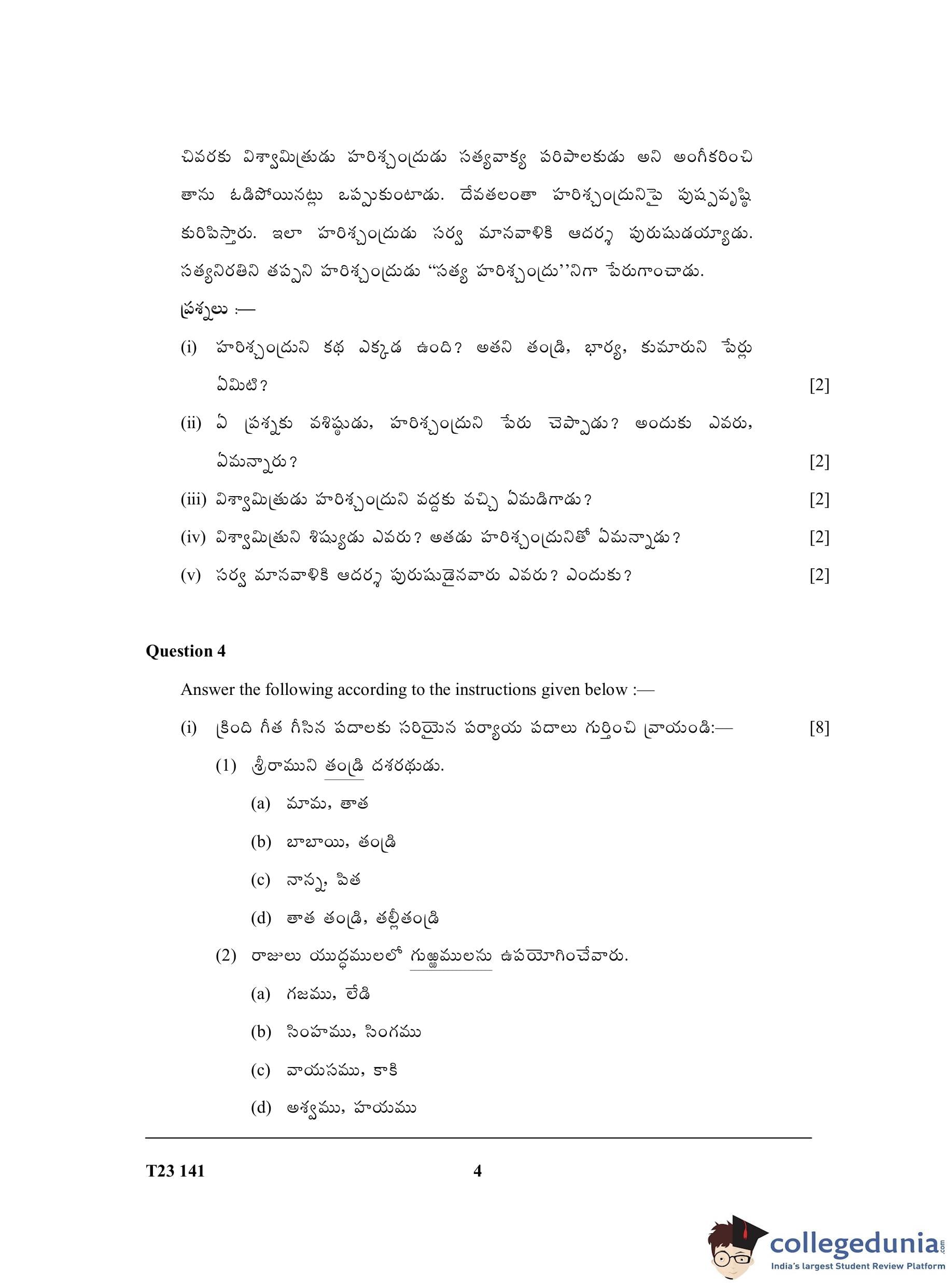 ICSE Class 10 Telugu Question Paper 2023 with Answer Key