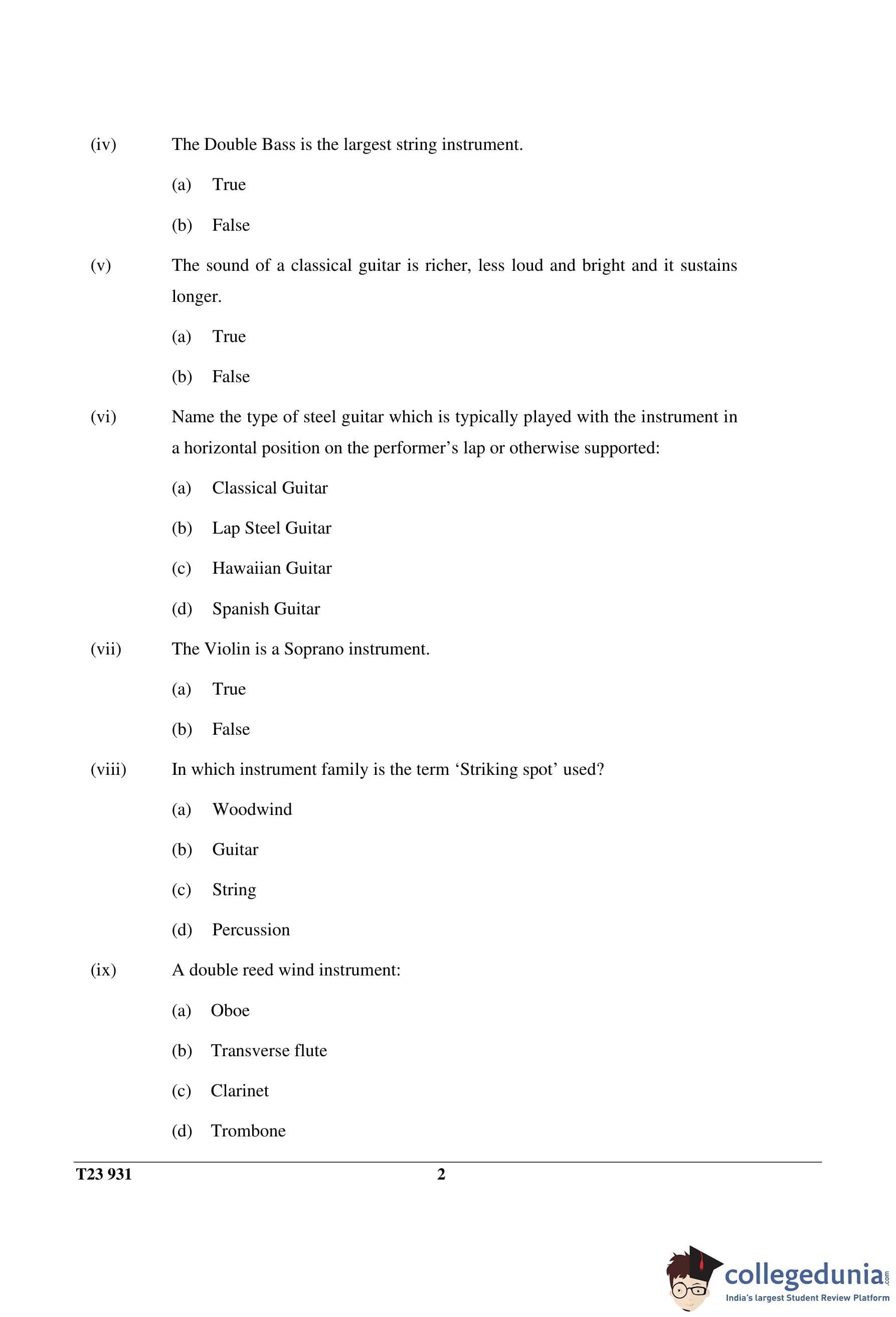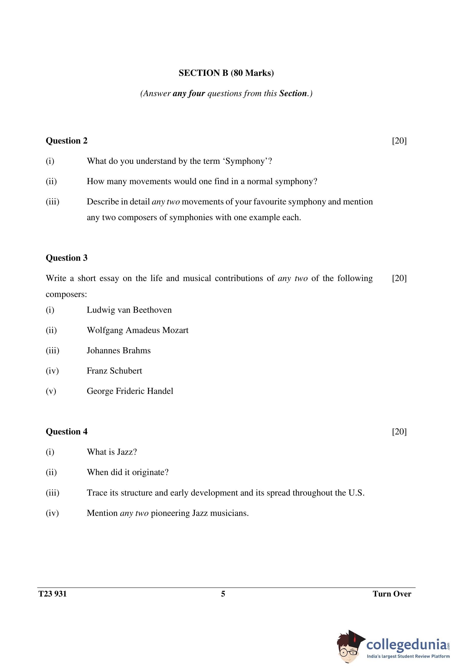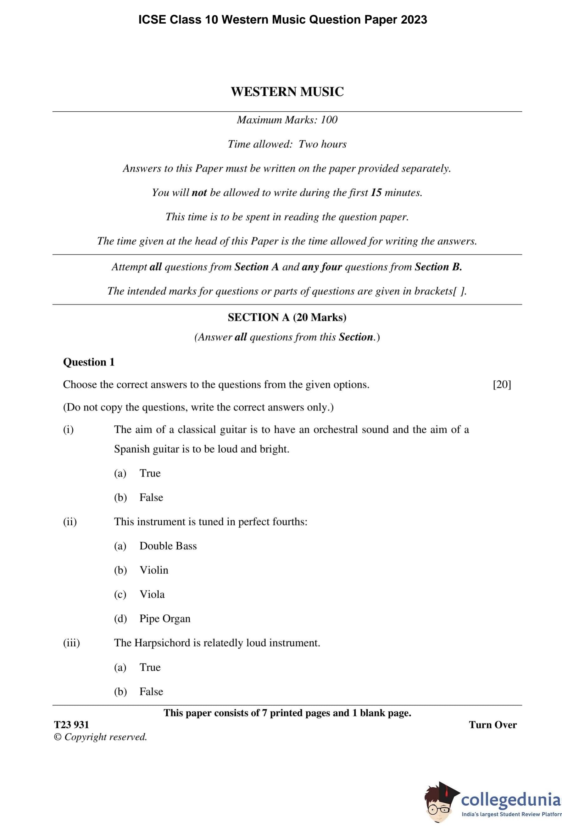 ICSE Class 10 Western Music Question Paper 2023 with Answer Key