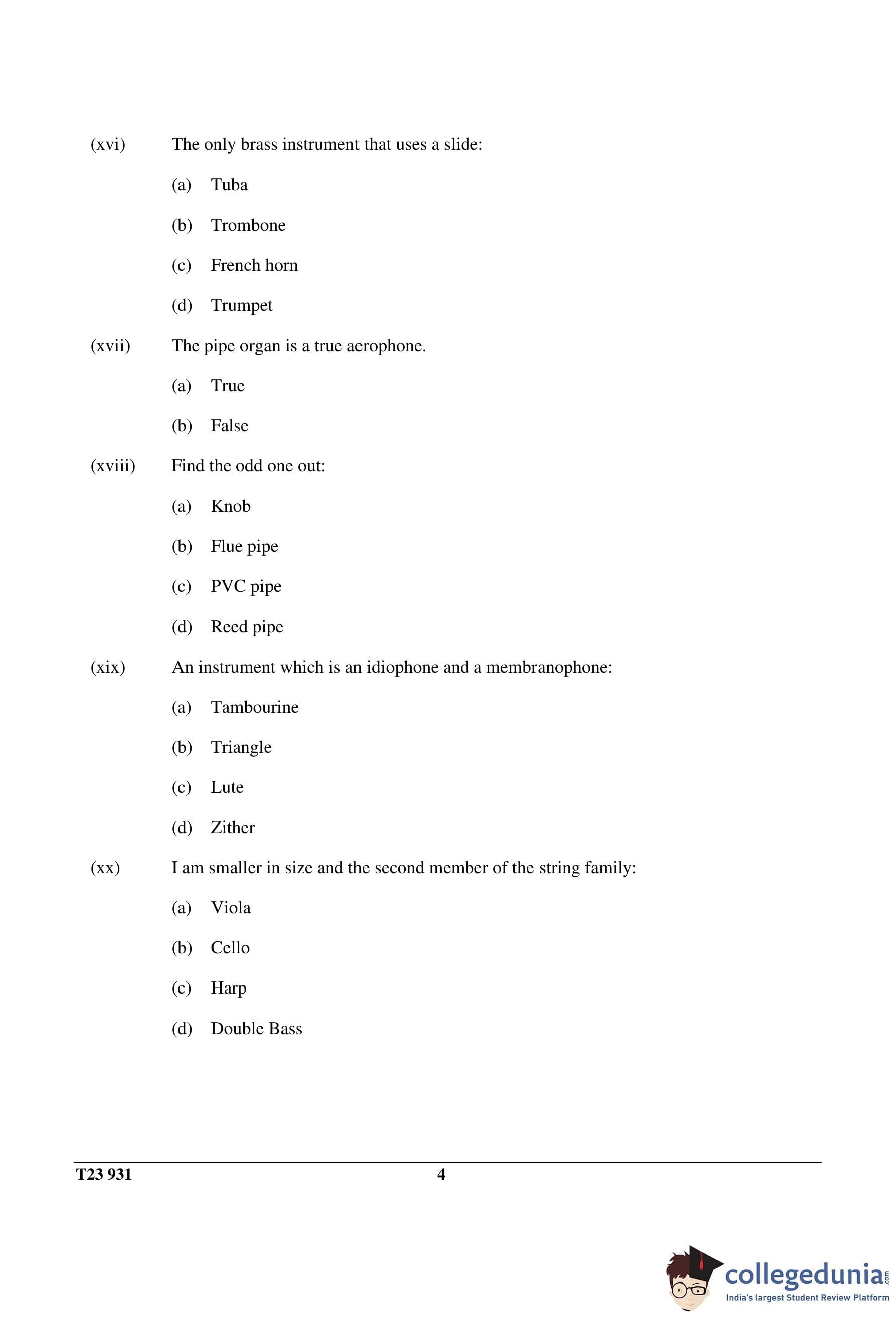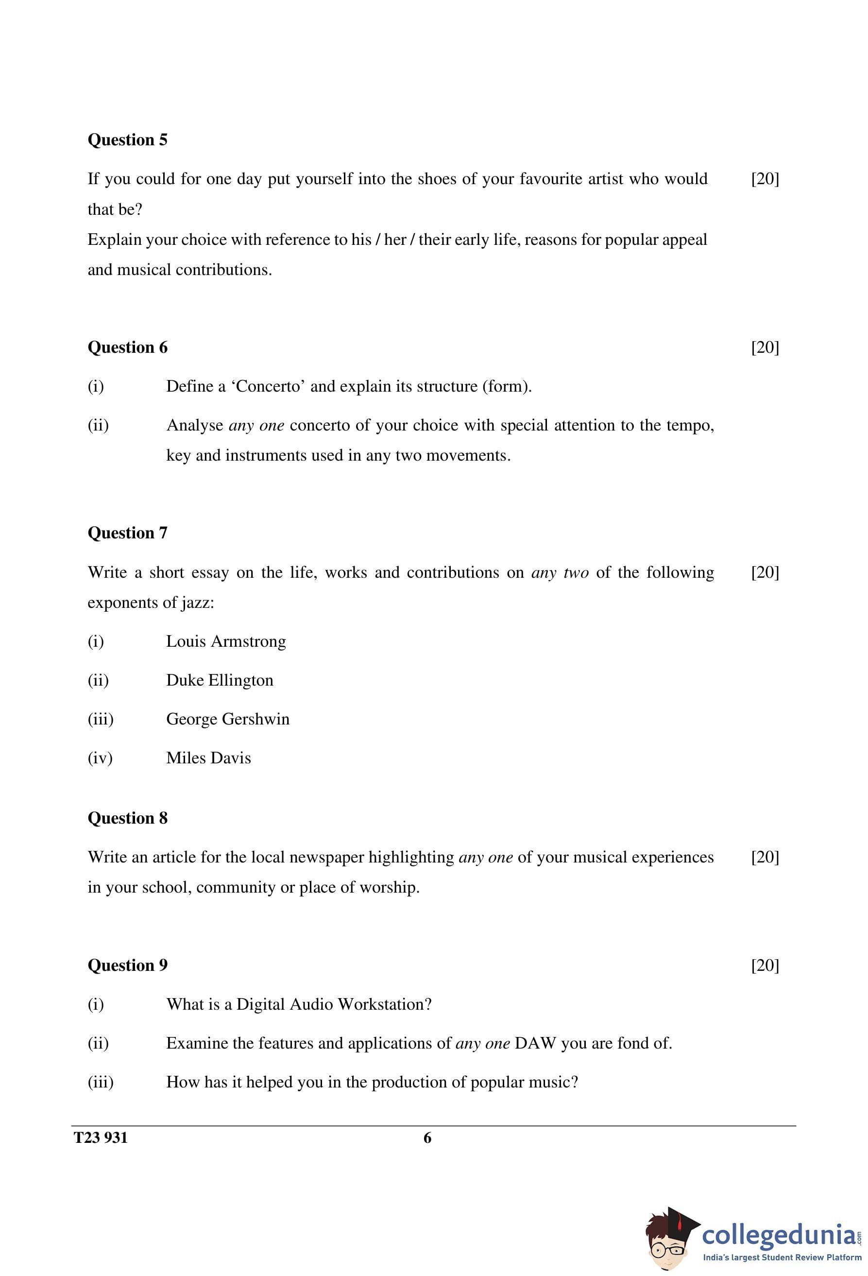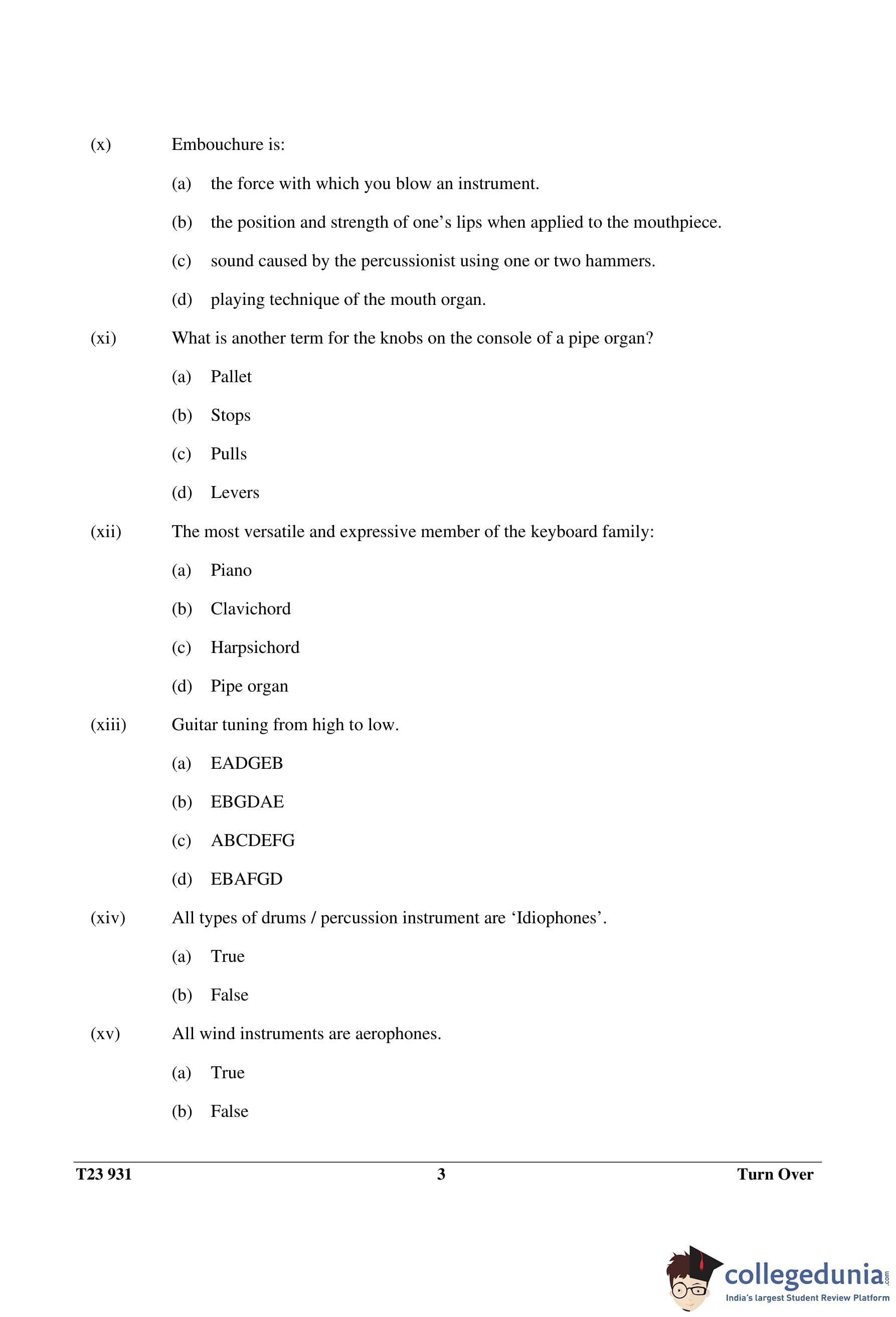ICSE Class 10 Western Music Question Paper 2023 with Answer Key