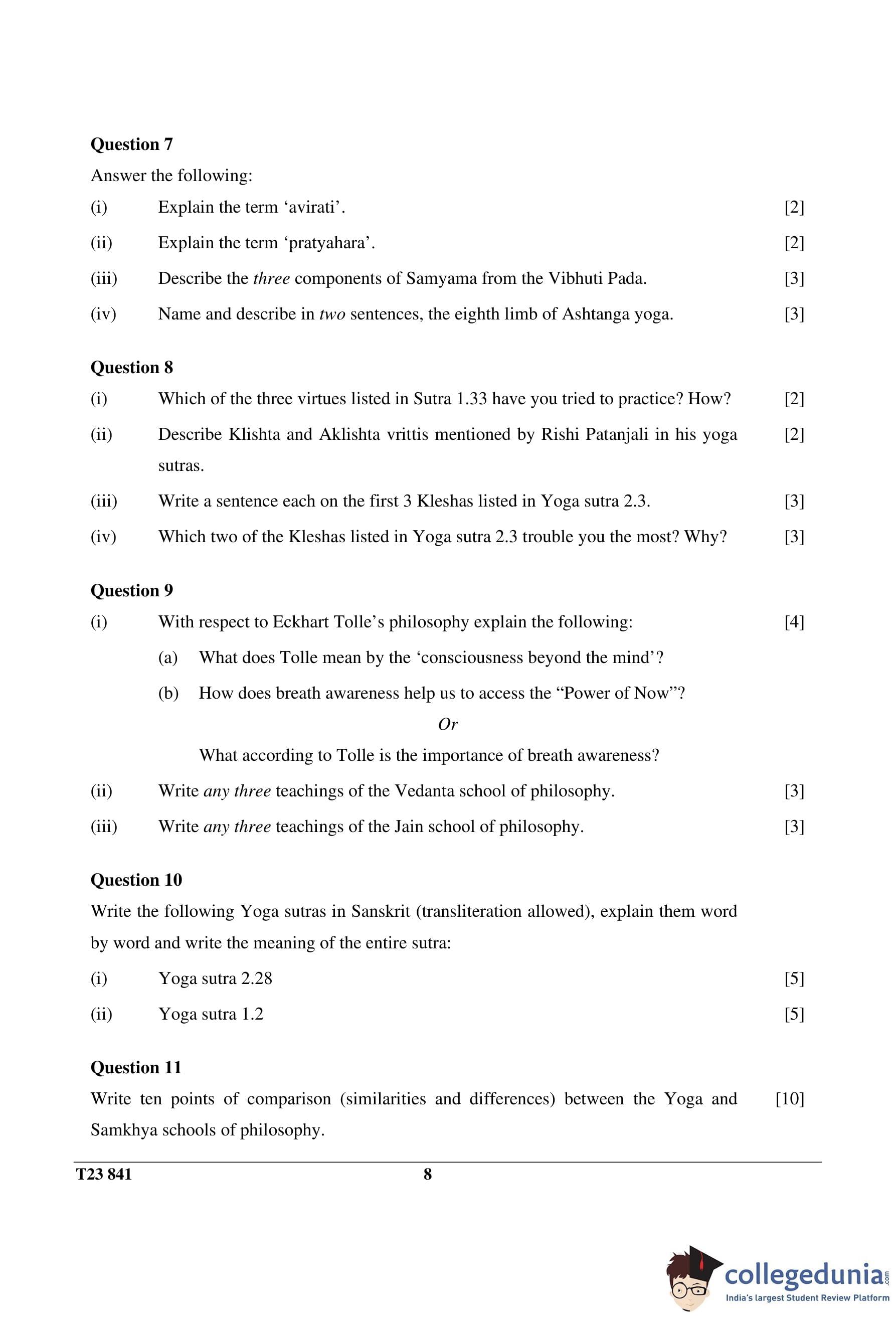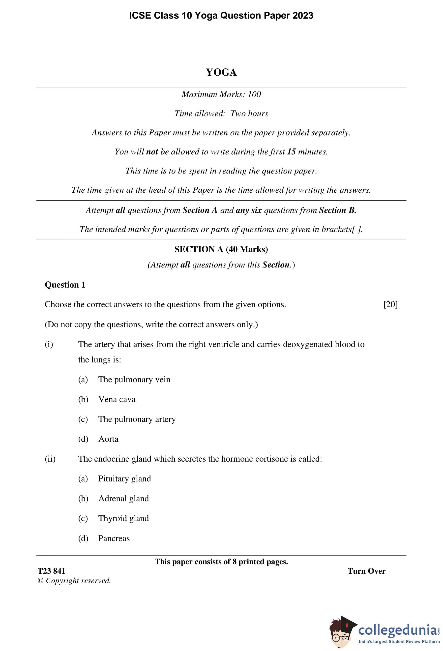 ICSE Class 10 Yoga Question Paper 2023 with Answer Key
