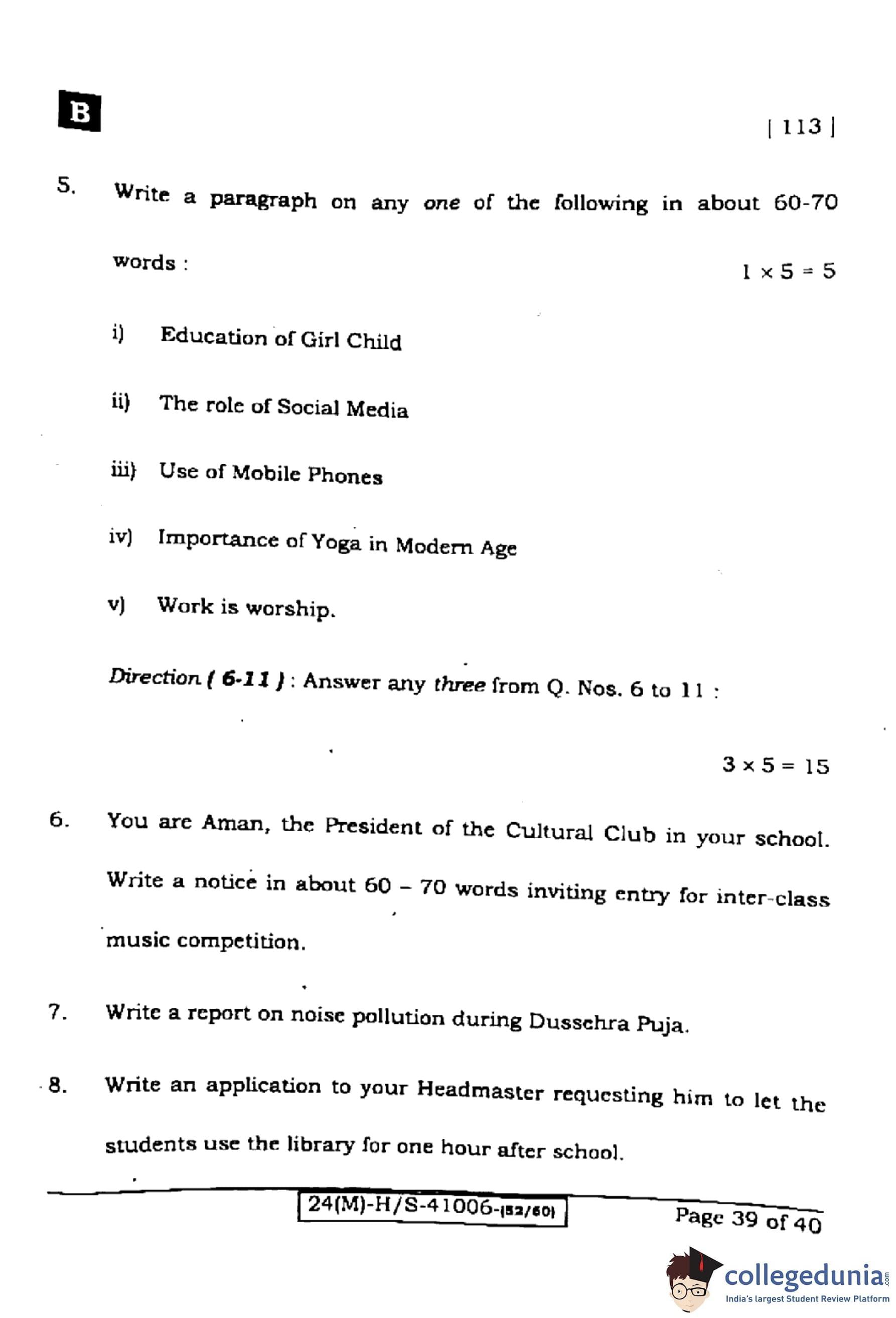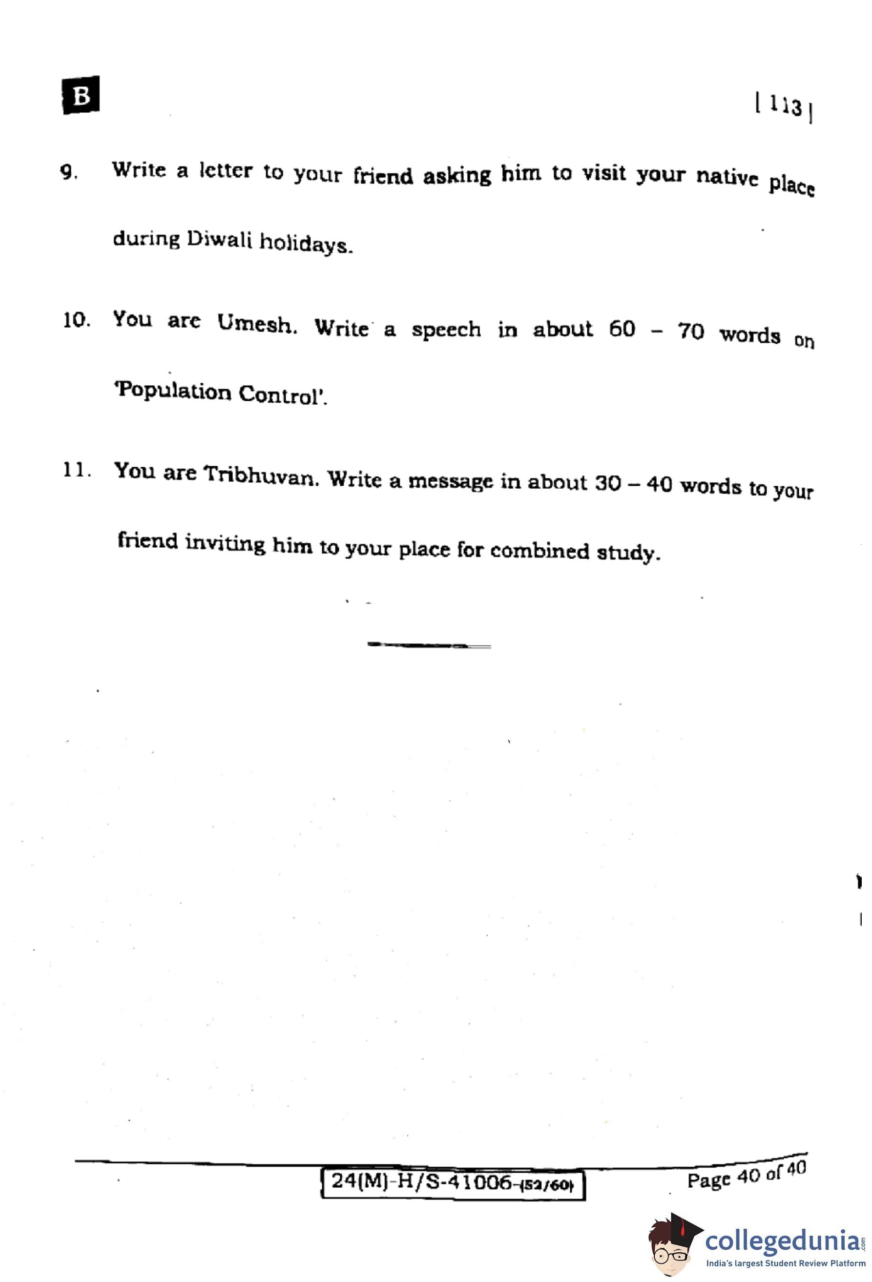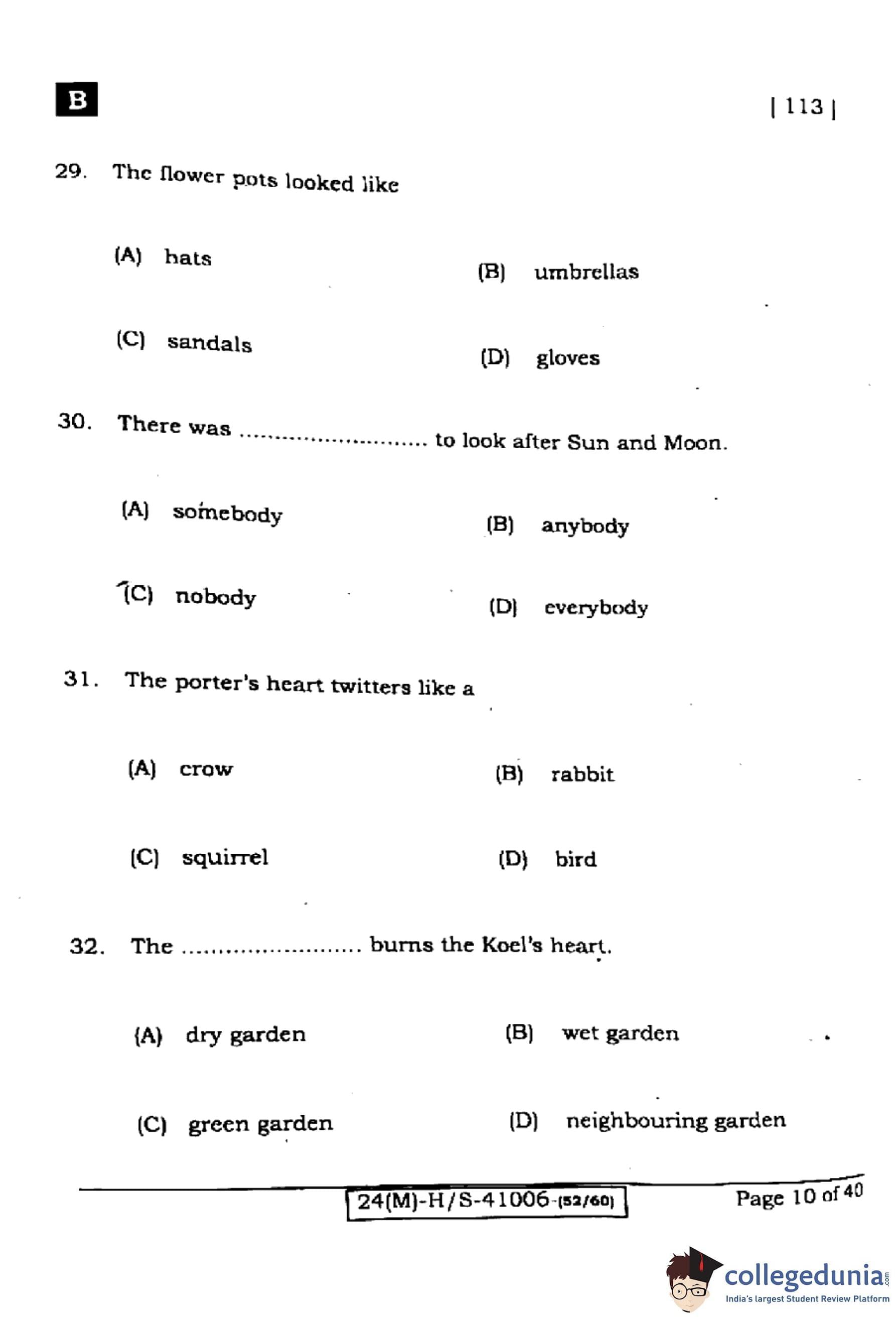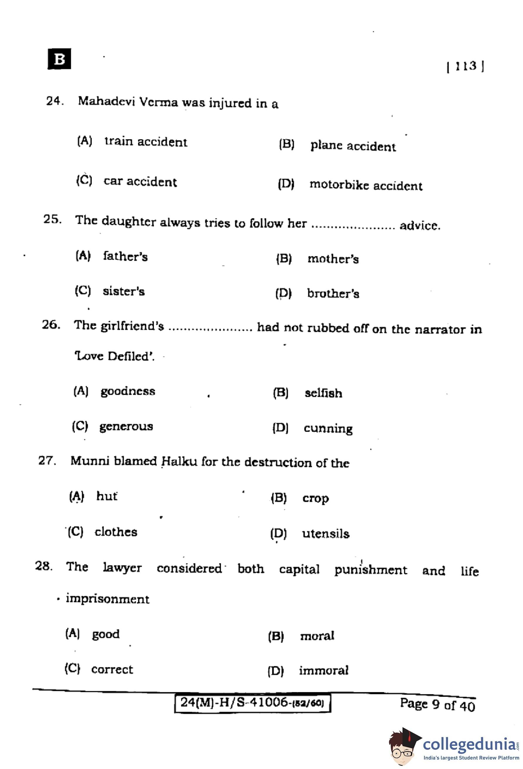 Bihar Board Class 10 English Question Paper 2024 ( SET B) with Answer Key (Shift 1)