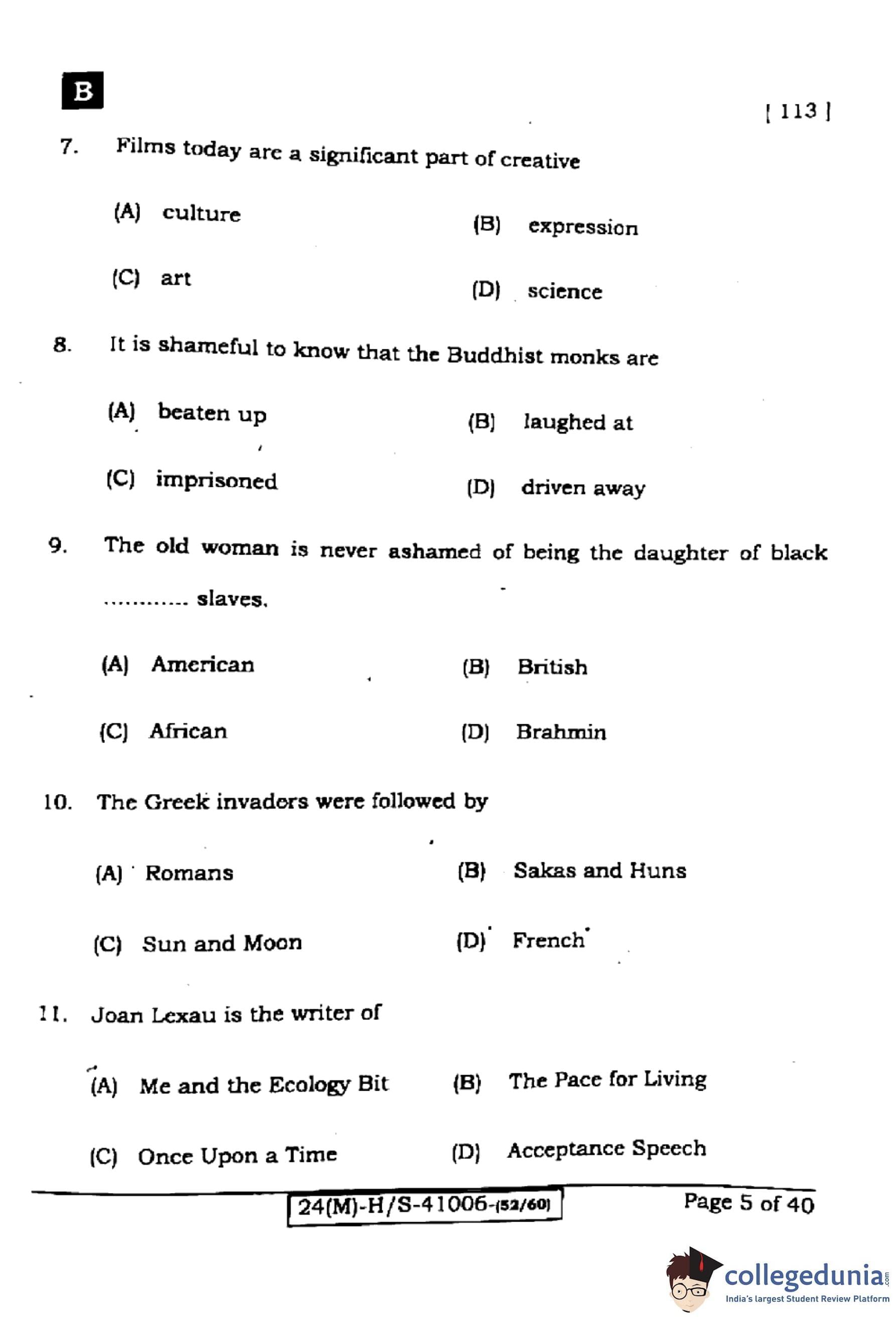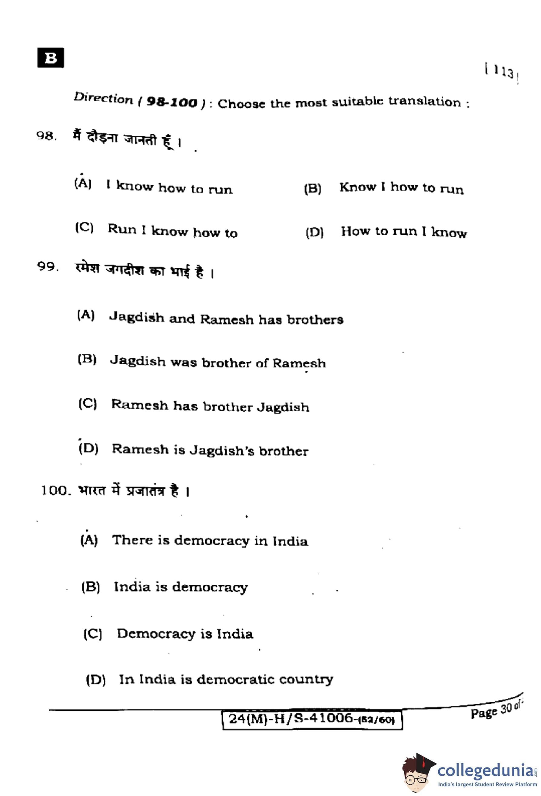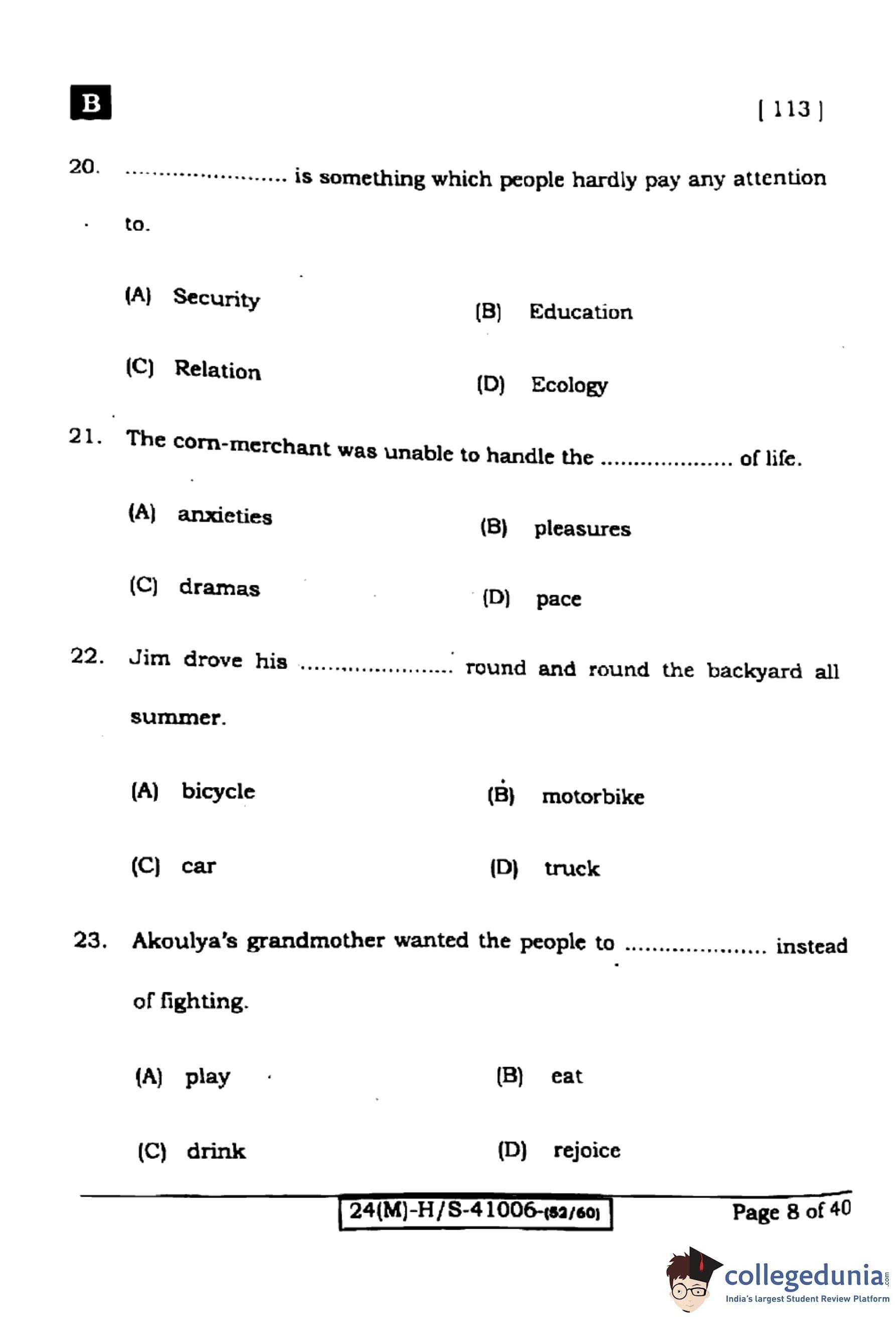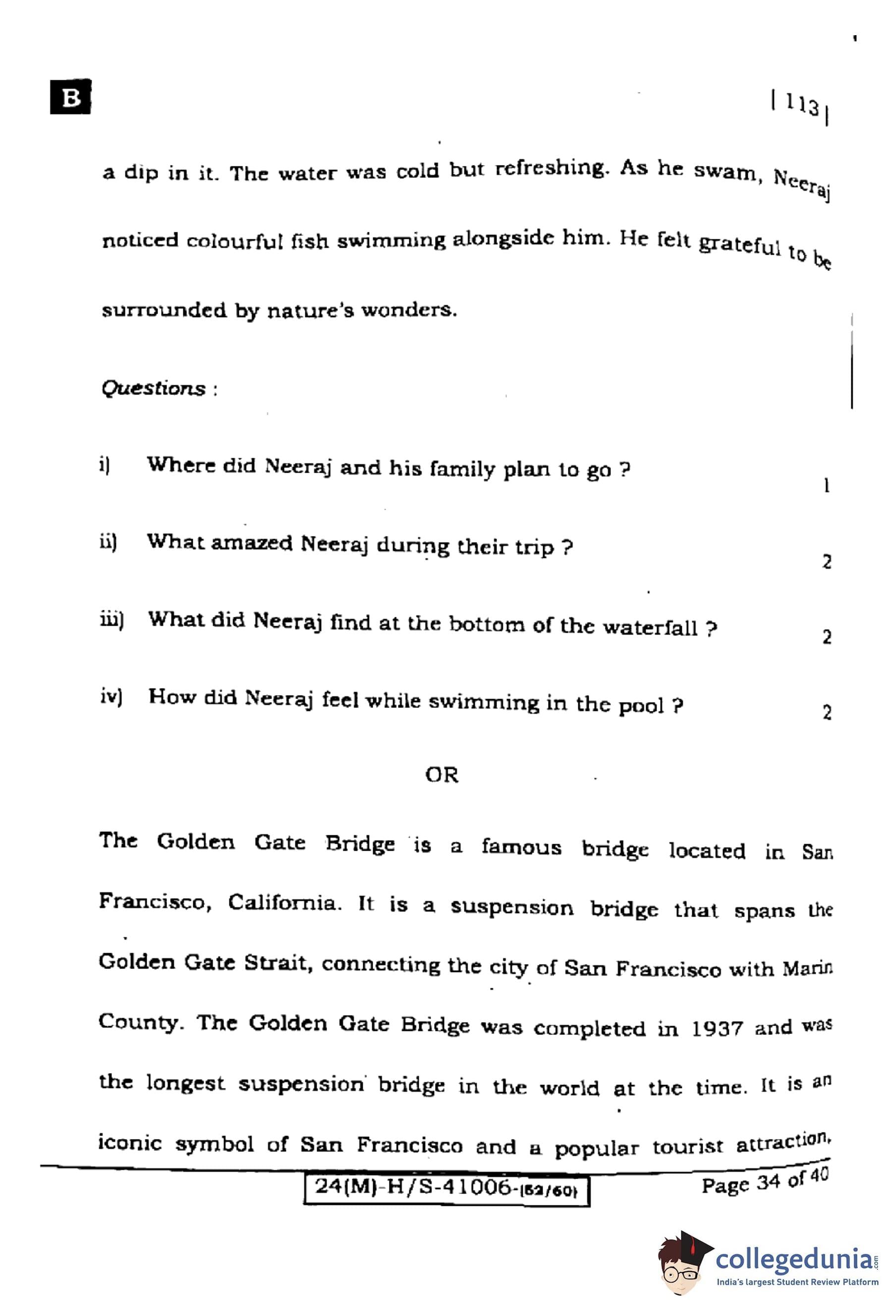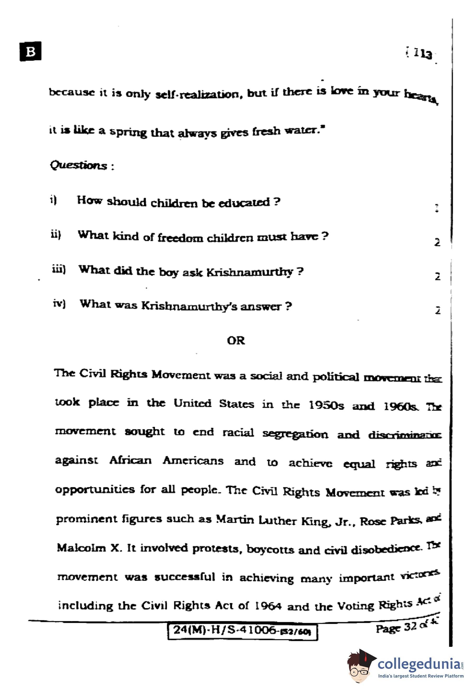 Bihar Board Class 10 English Question Paper 2024 ( SET B) with Answer Key (Shift 1)