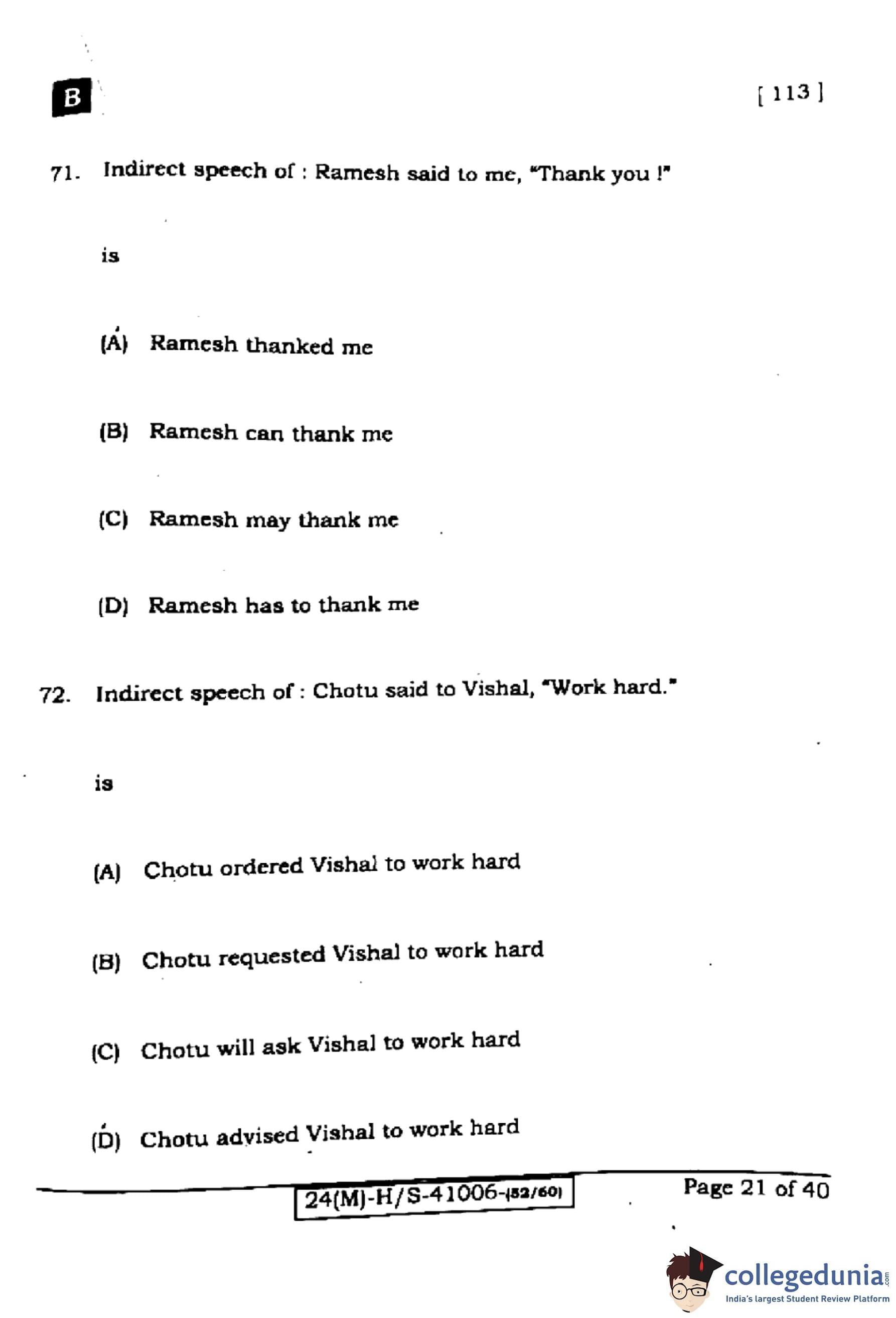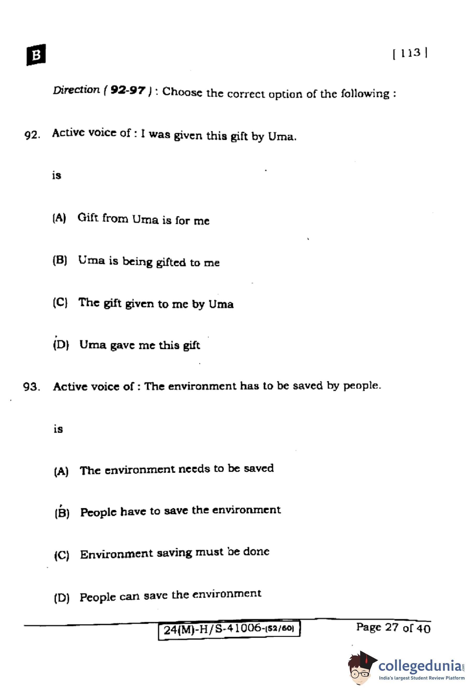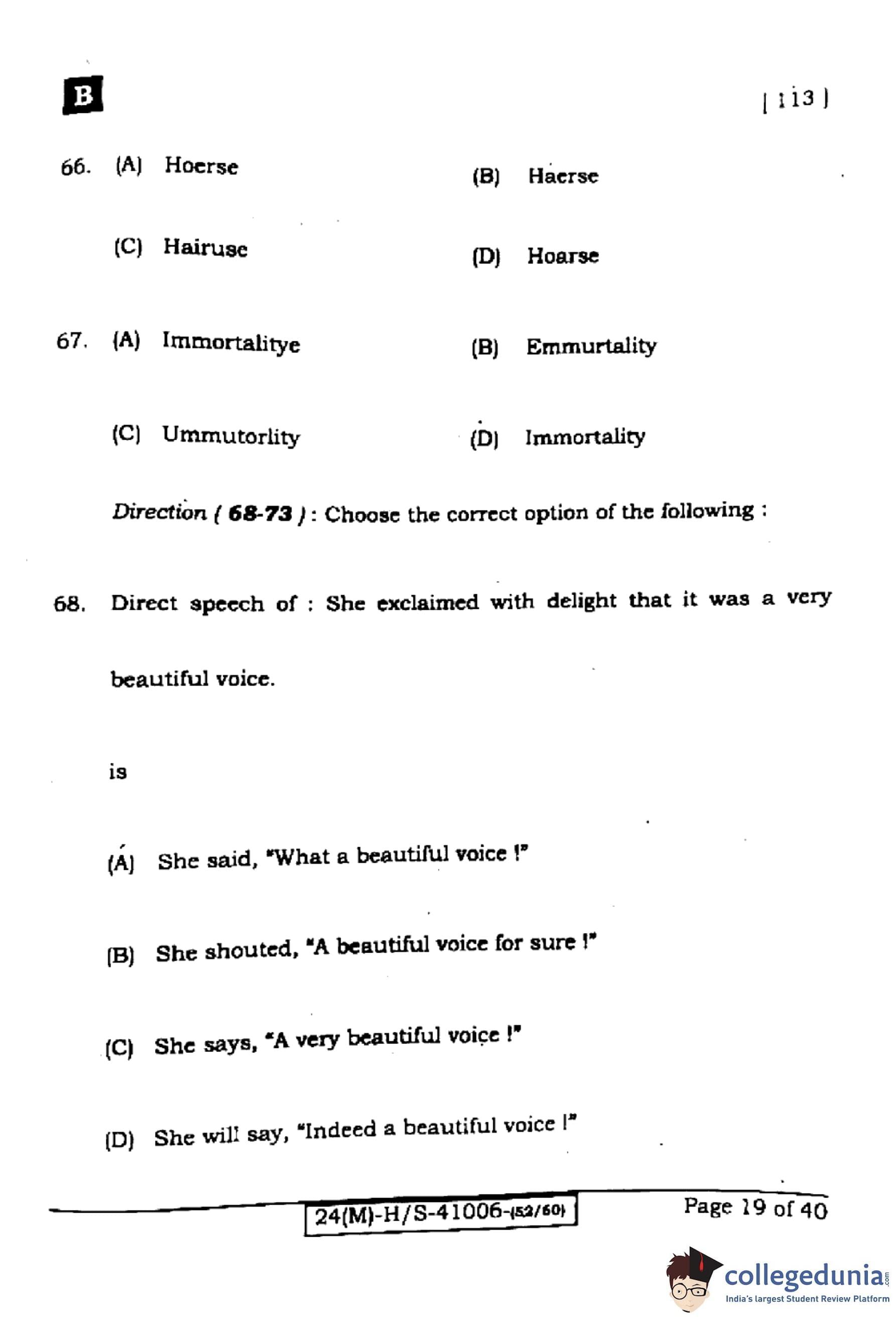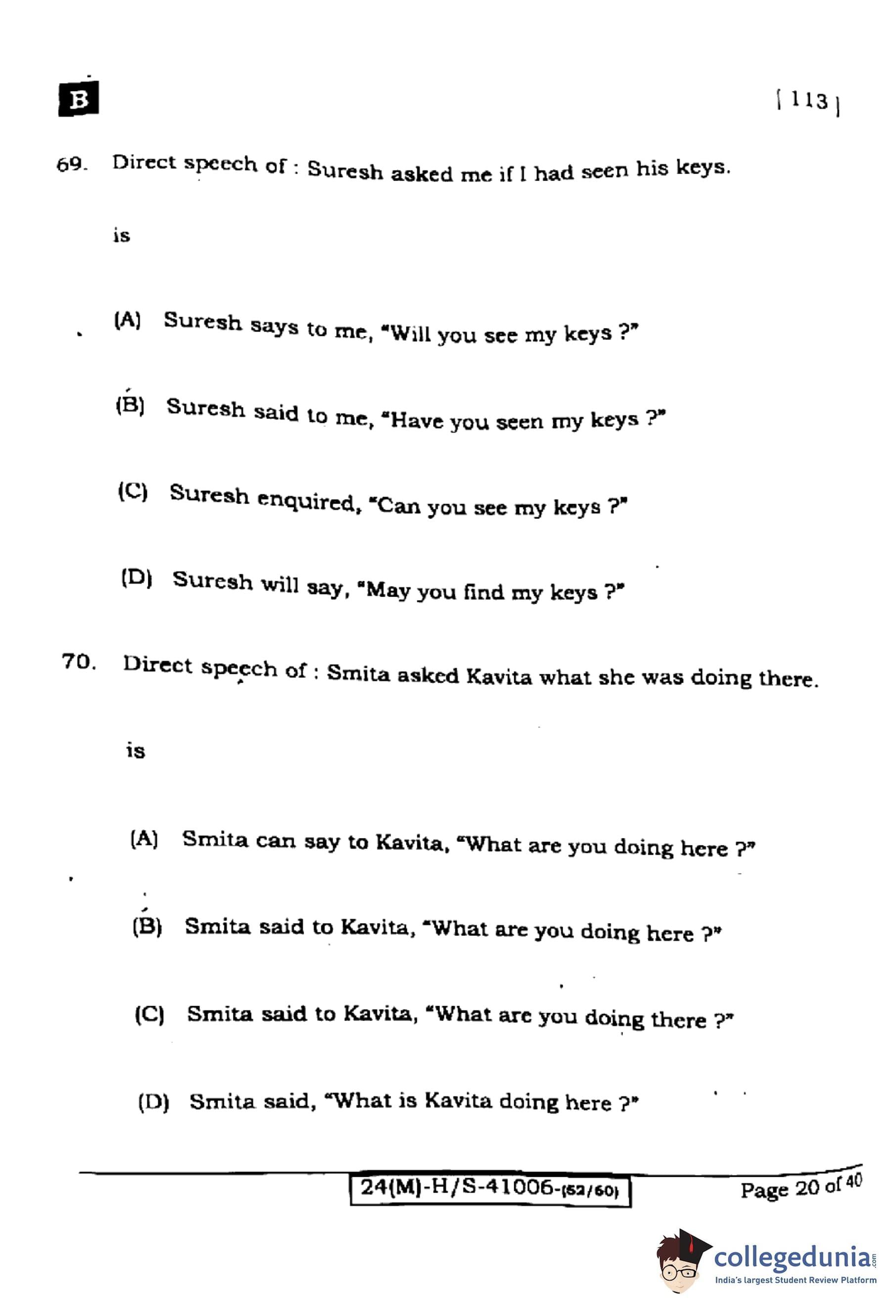 Bihar Board Class 10 English Question Paper 2024 ( SET B) with Answer Key (Shift 1)