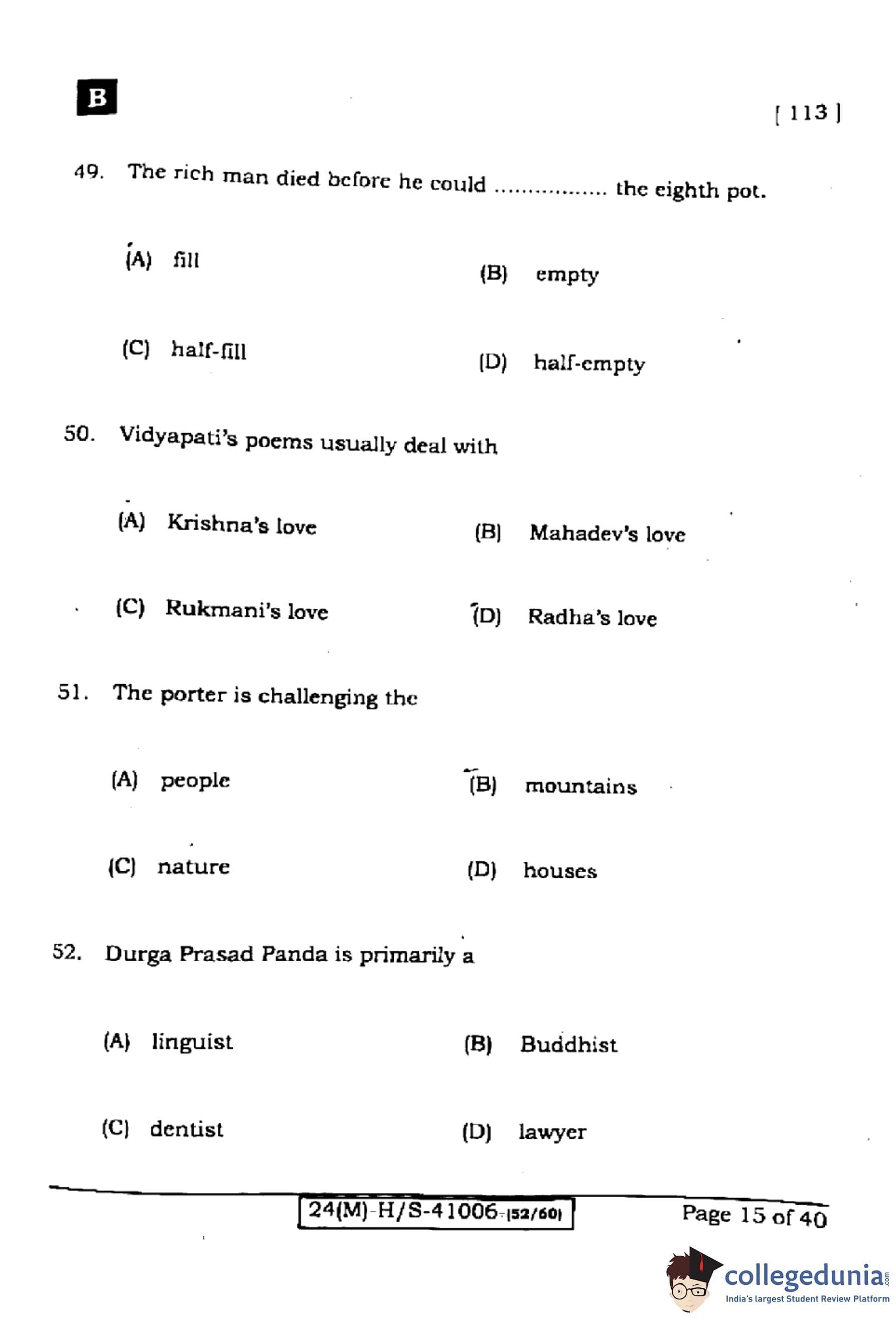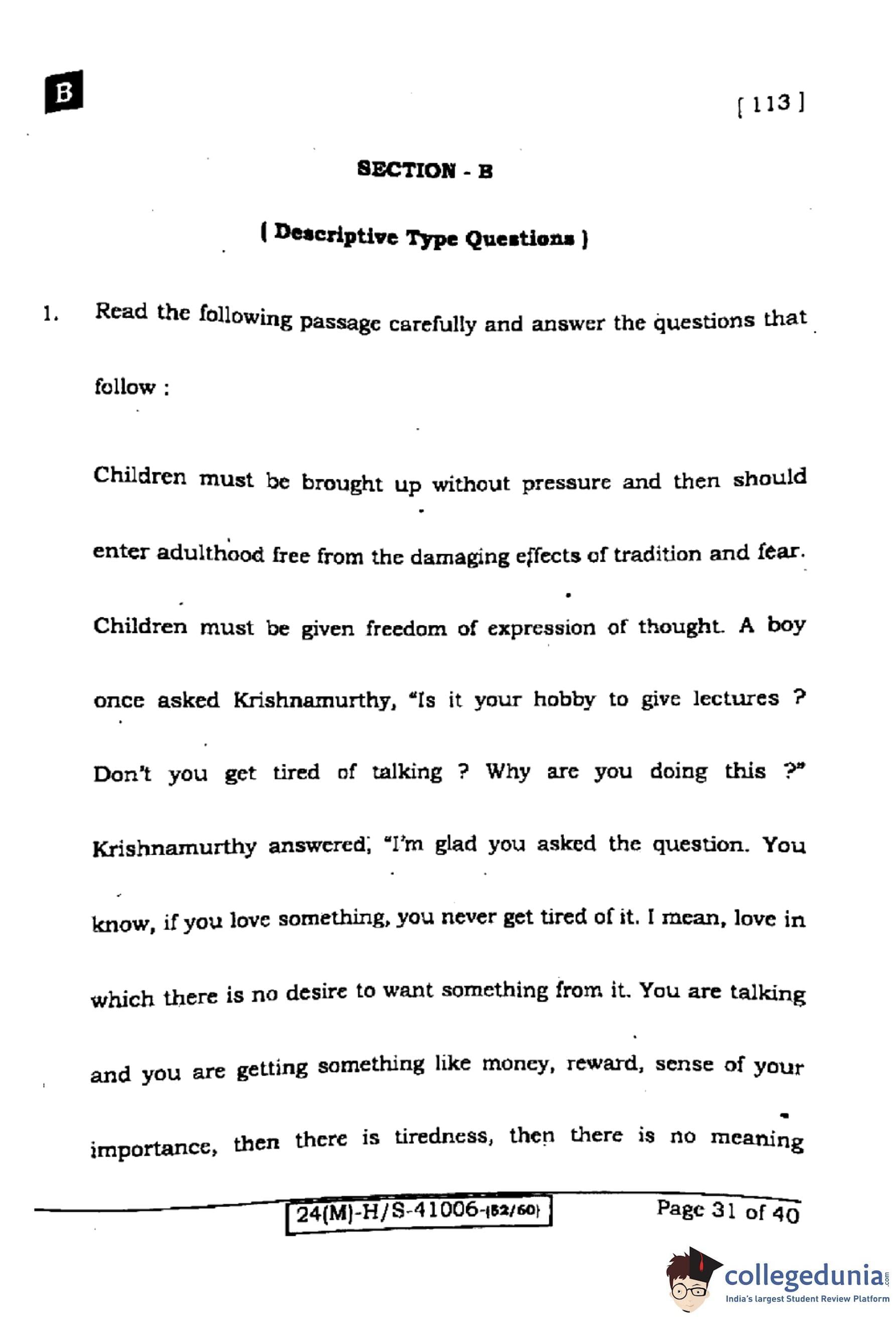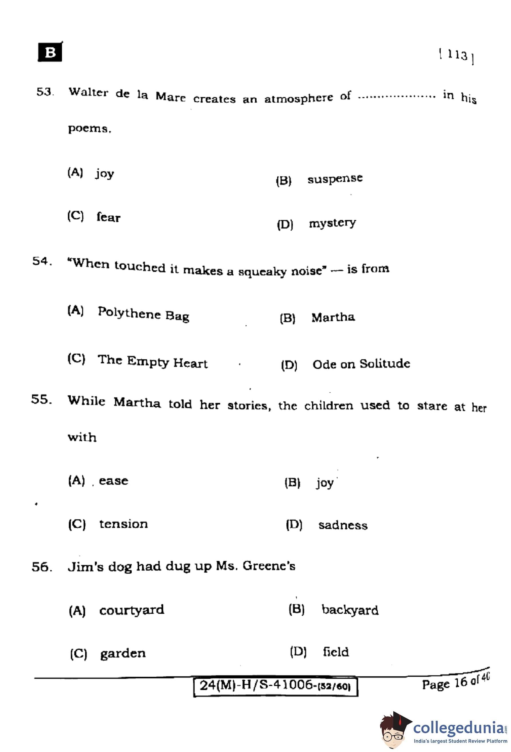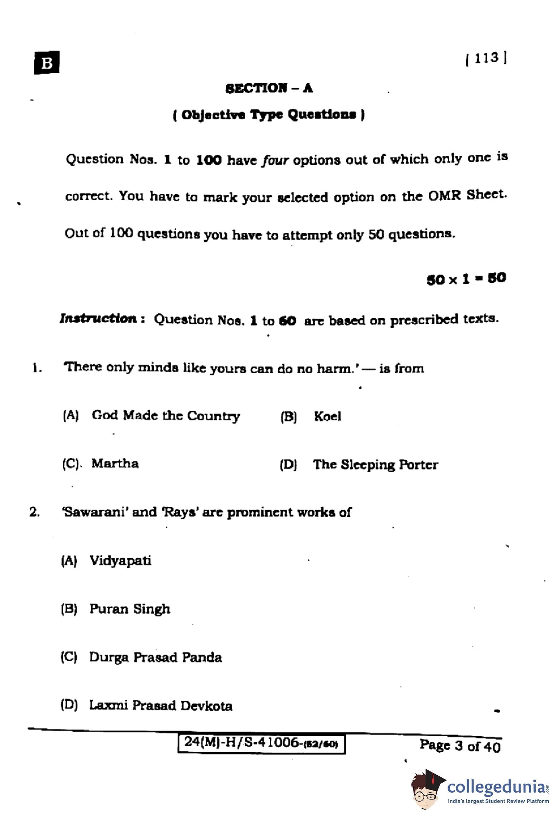 Bihar Board Class 10 English Question Paper 2024 ( SET B) with Answer Key pdf is available for download here. The Science paper was conducted on February 21, 2024 in the morning shift from 9:30 AM to 12:45 PM. The question paper was divided into two sections - Section A for objective questions and Section B for subjective questions.