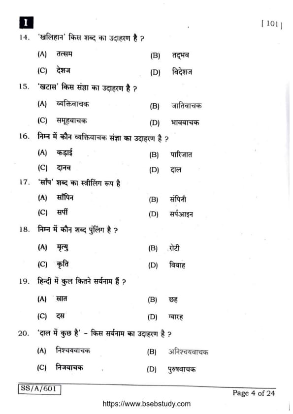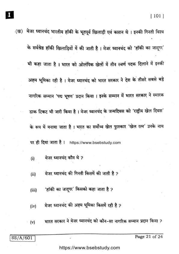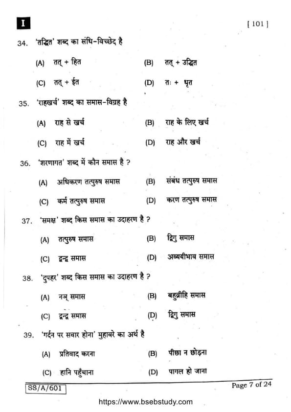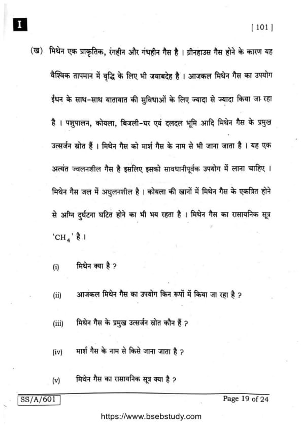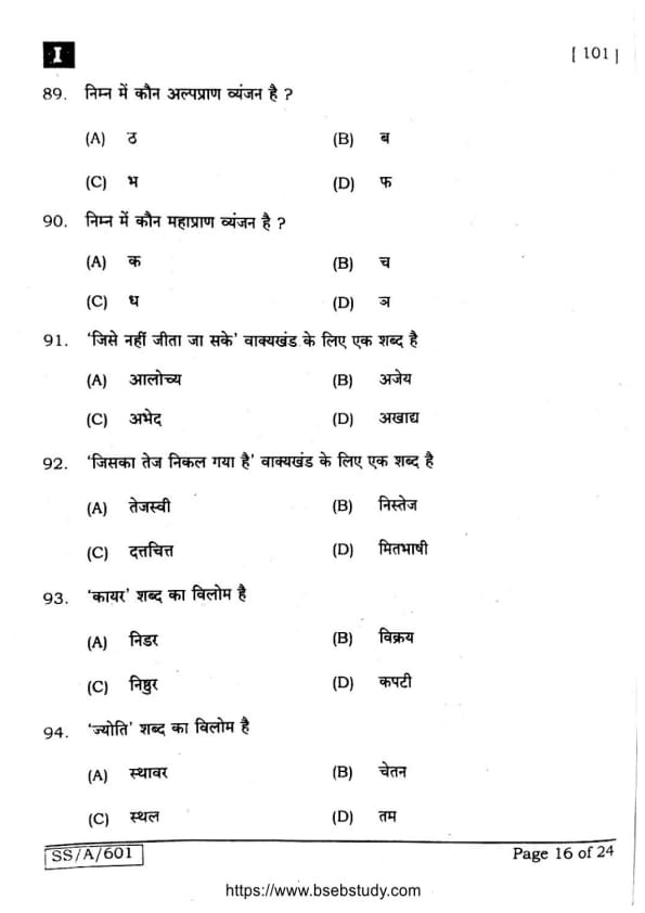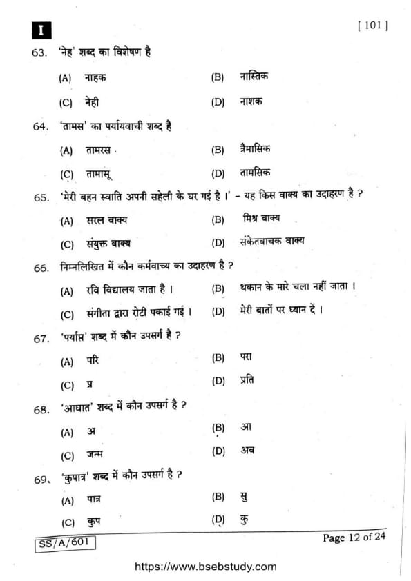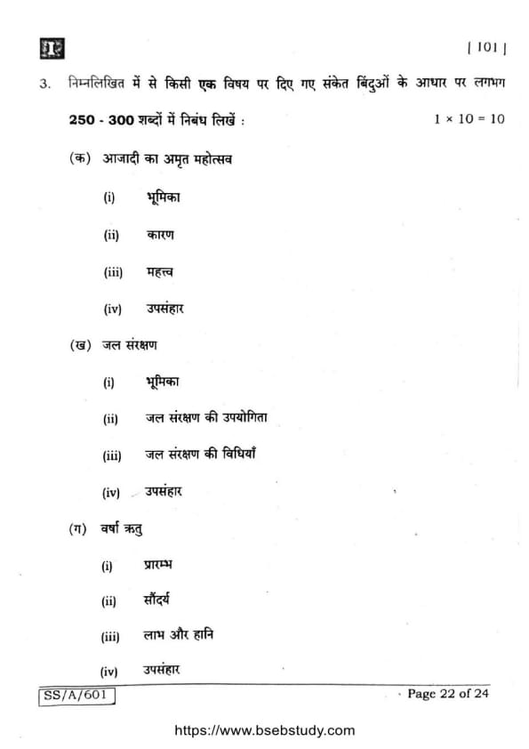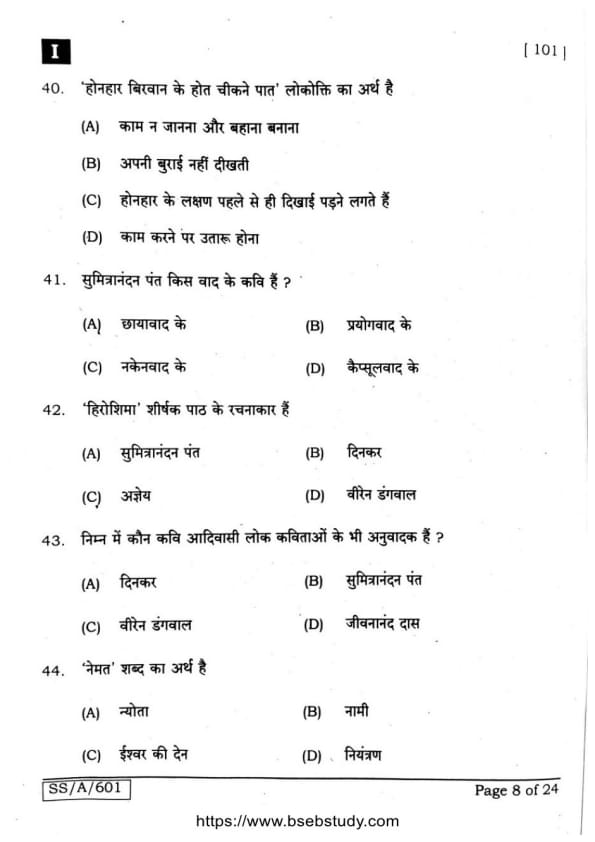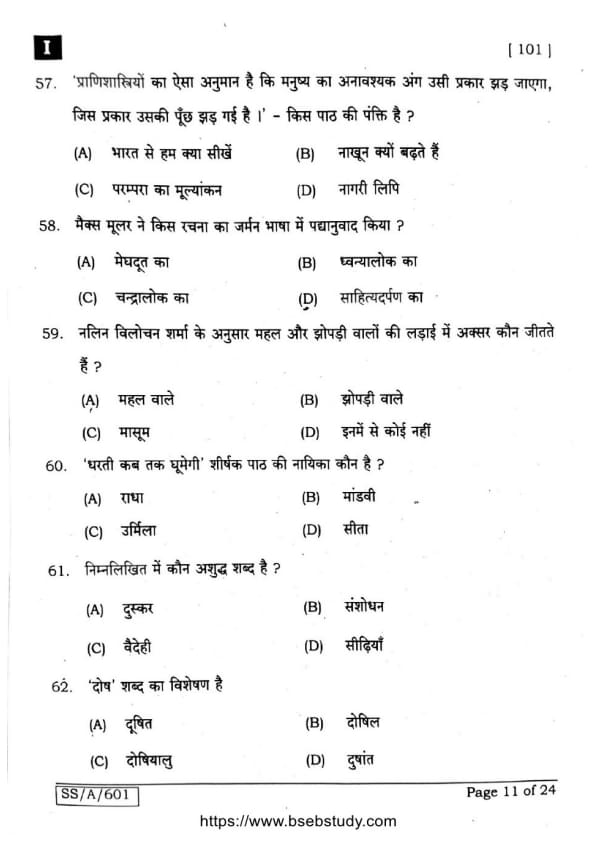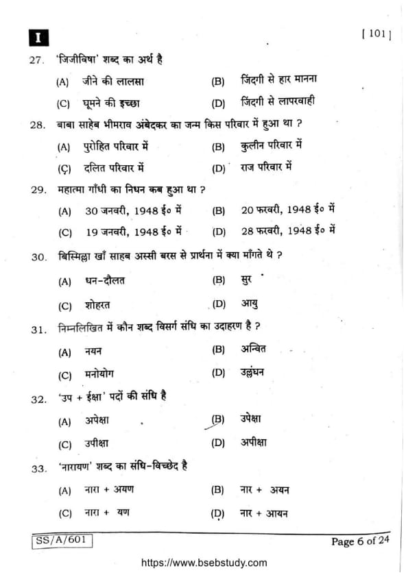 Bihar Board Class 10 Hindi (MT) Question Paper 2025 (Code 101 Set-I) with Solutions