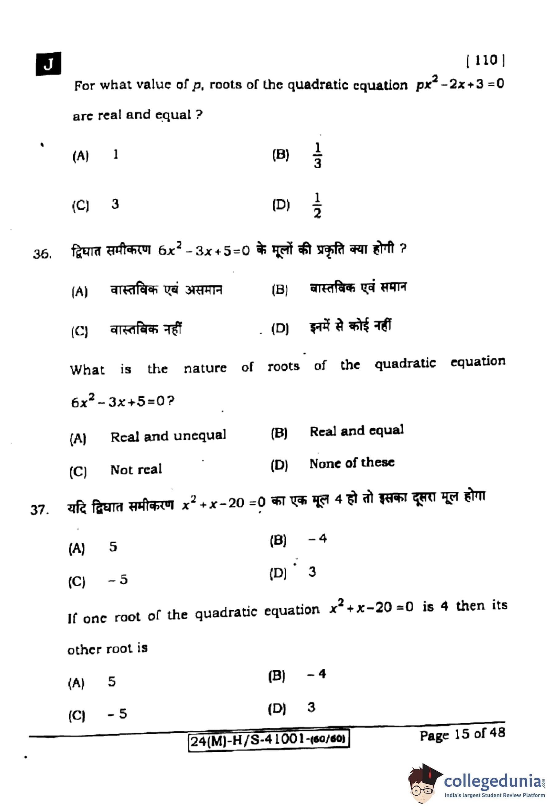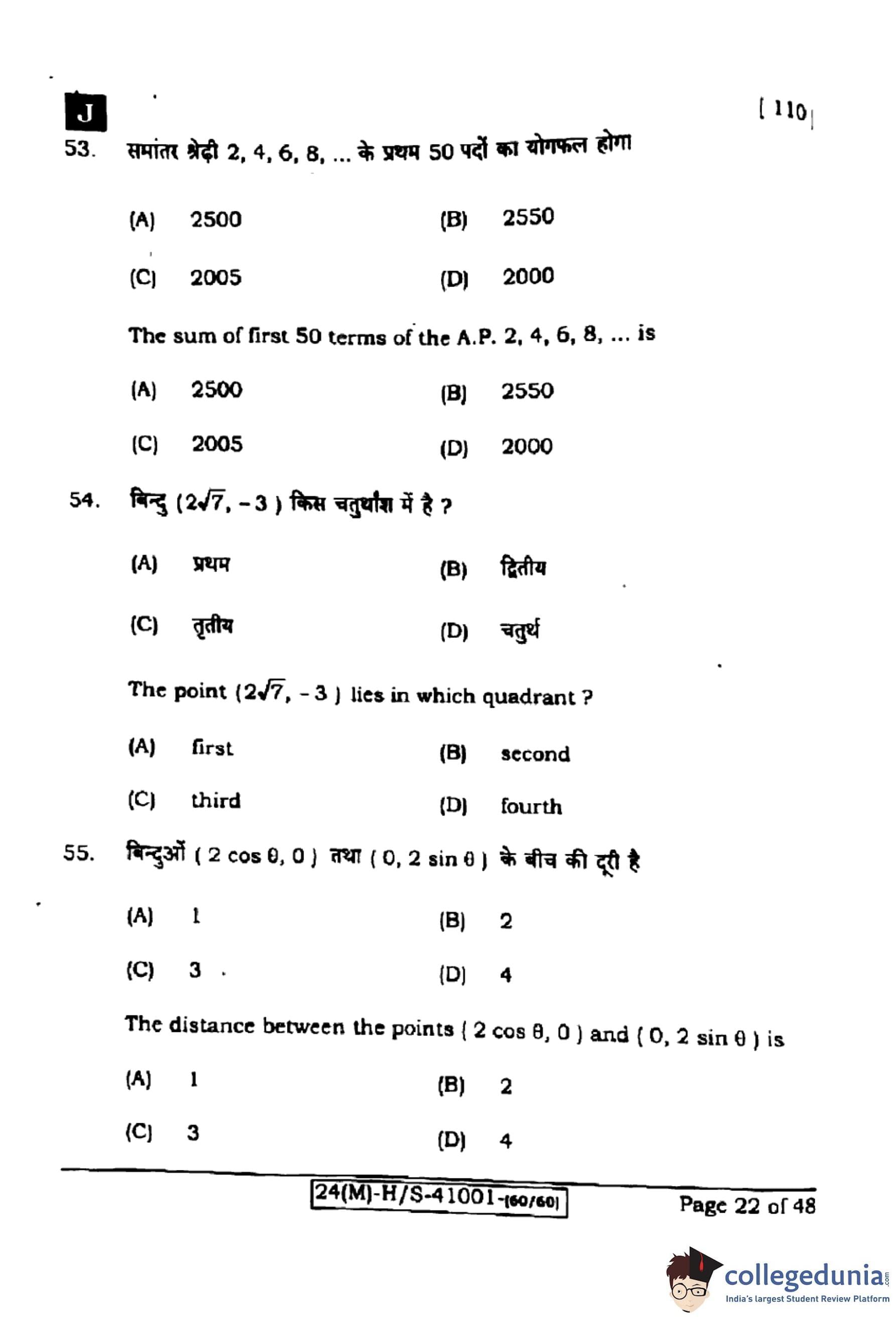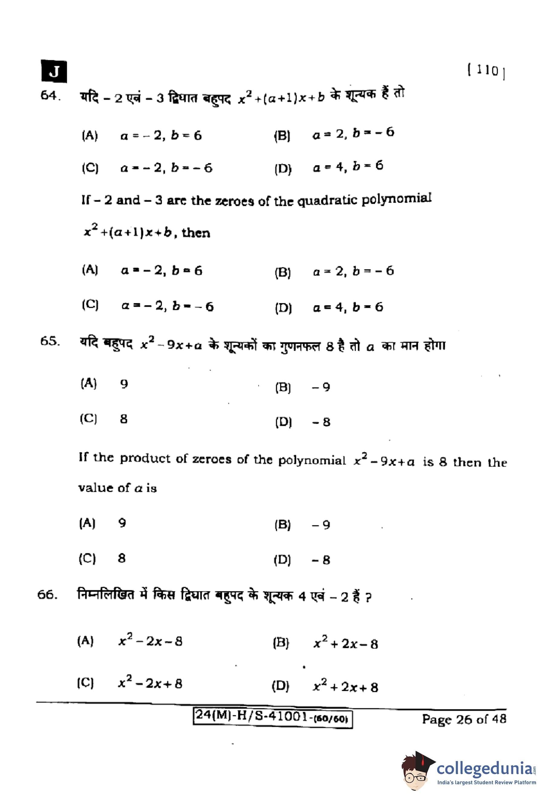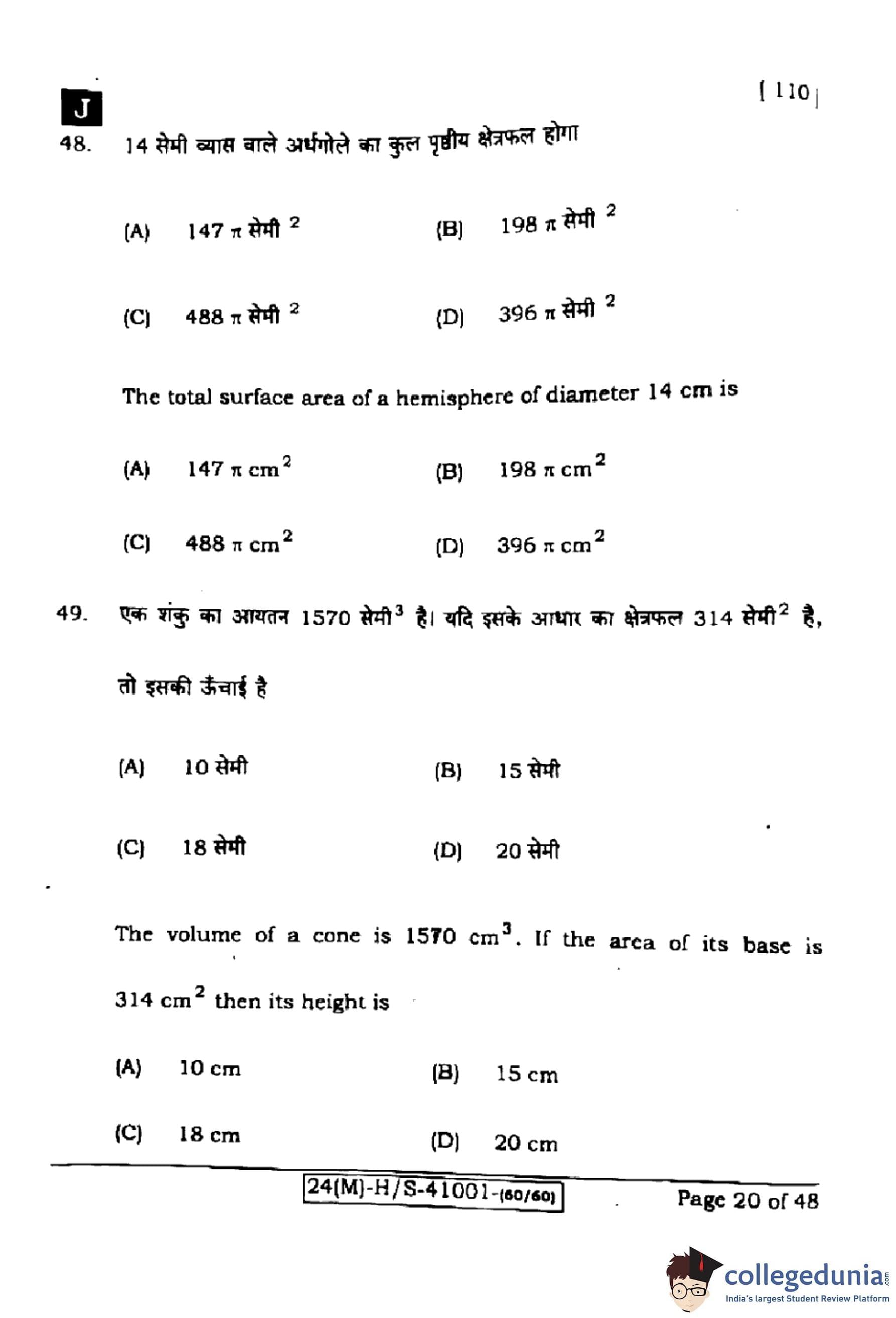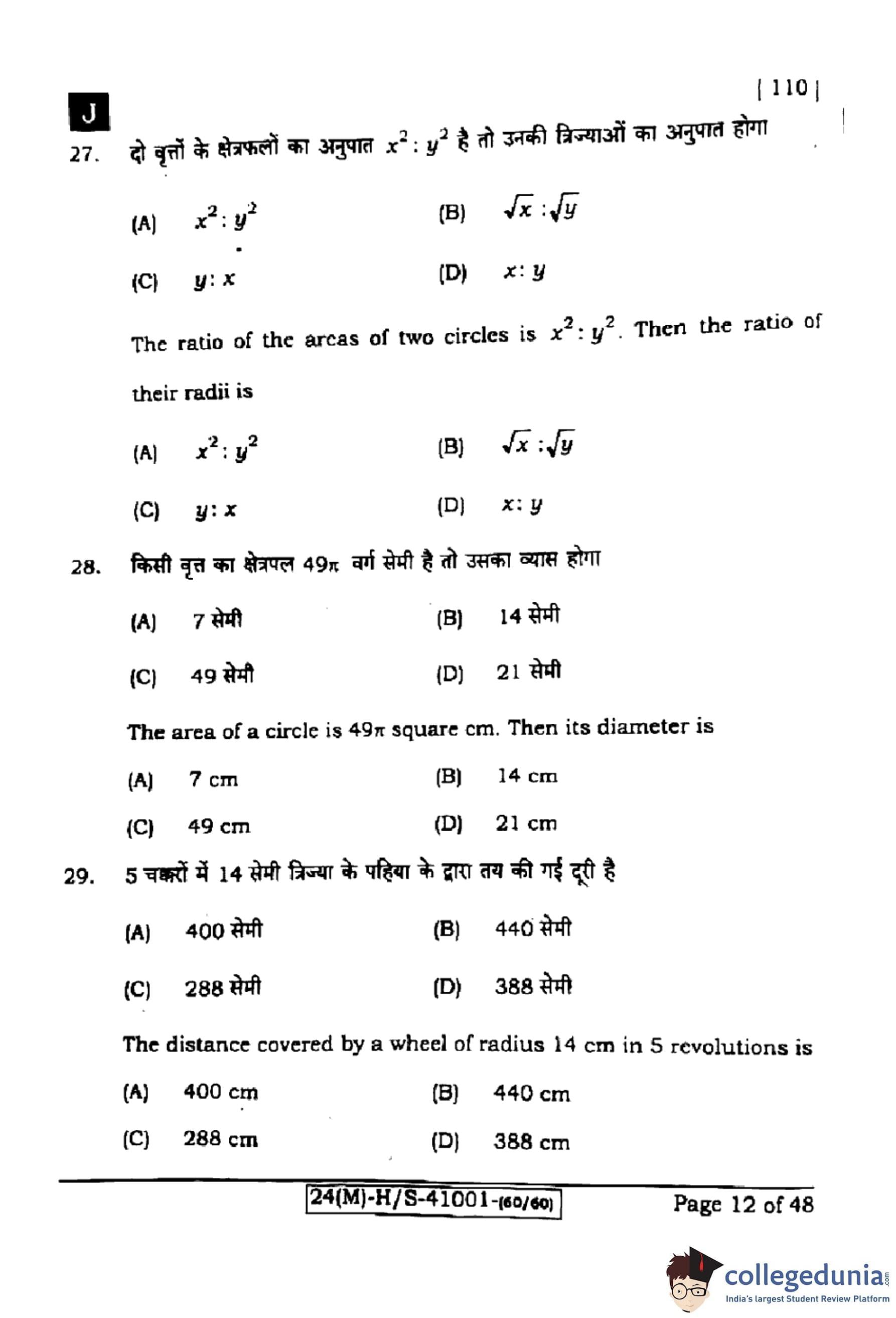 Bihar Board Class 10 (Set J) Maths Question Paper 2024 with Solutions