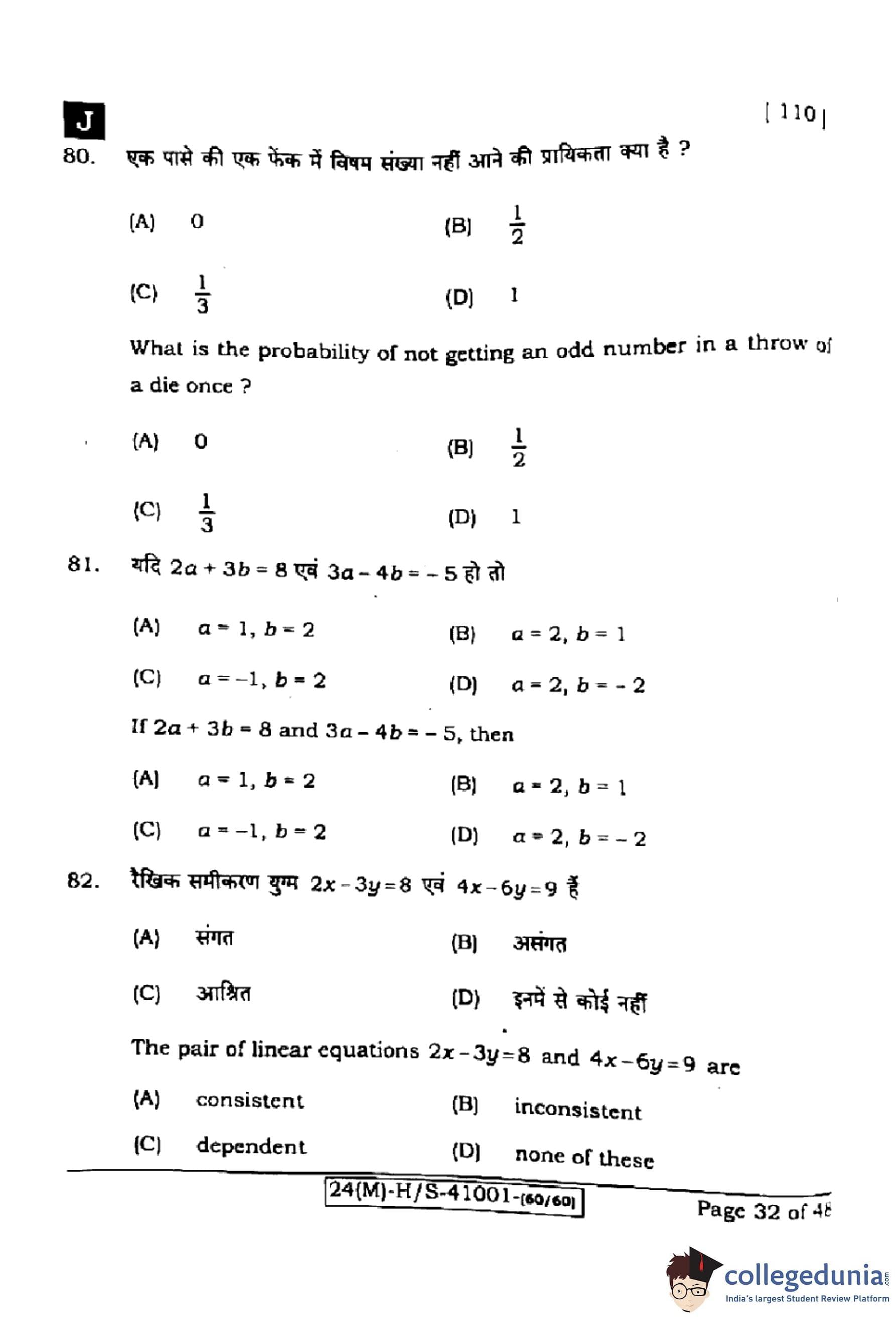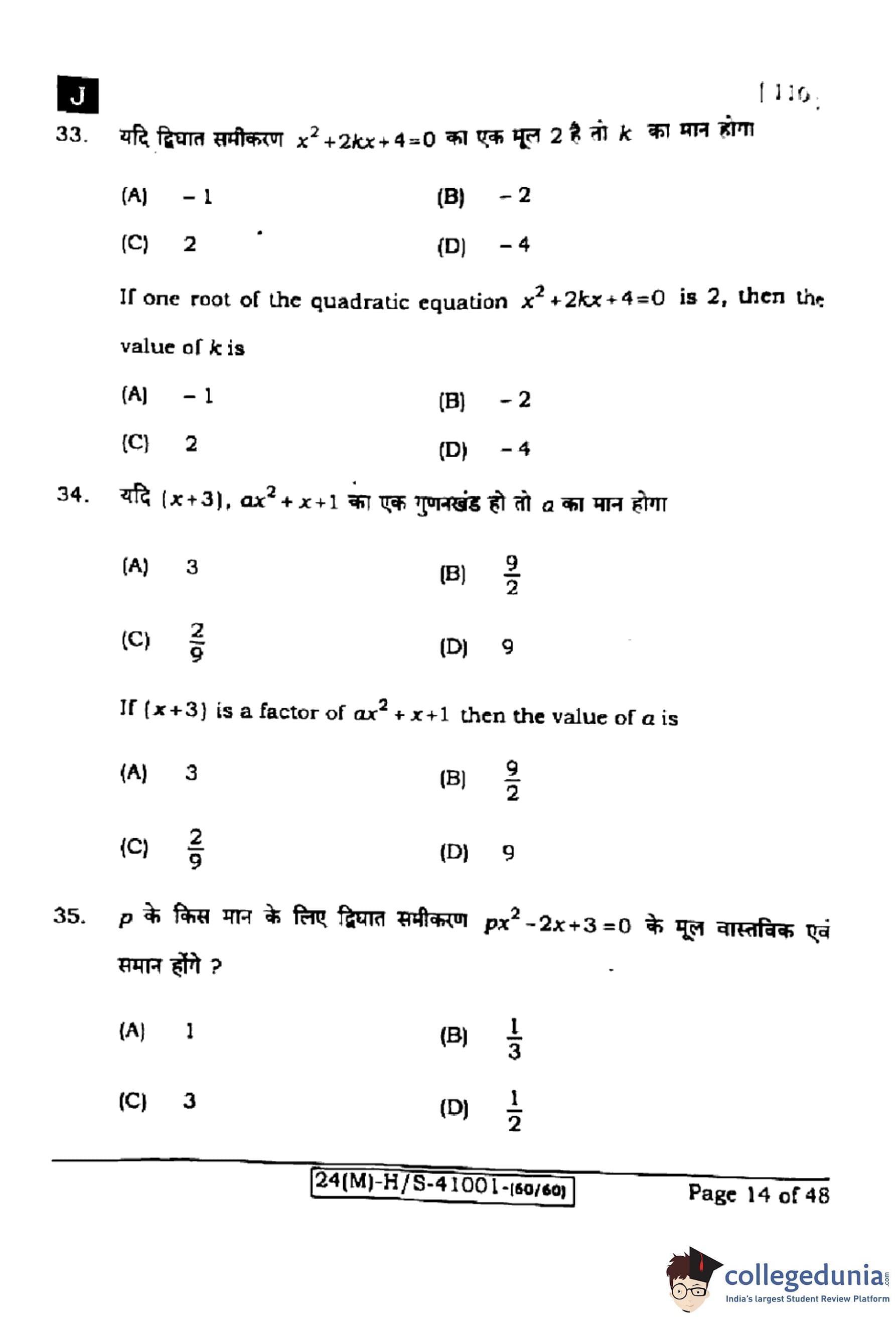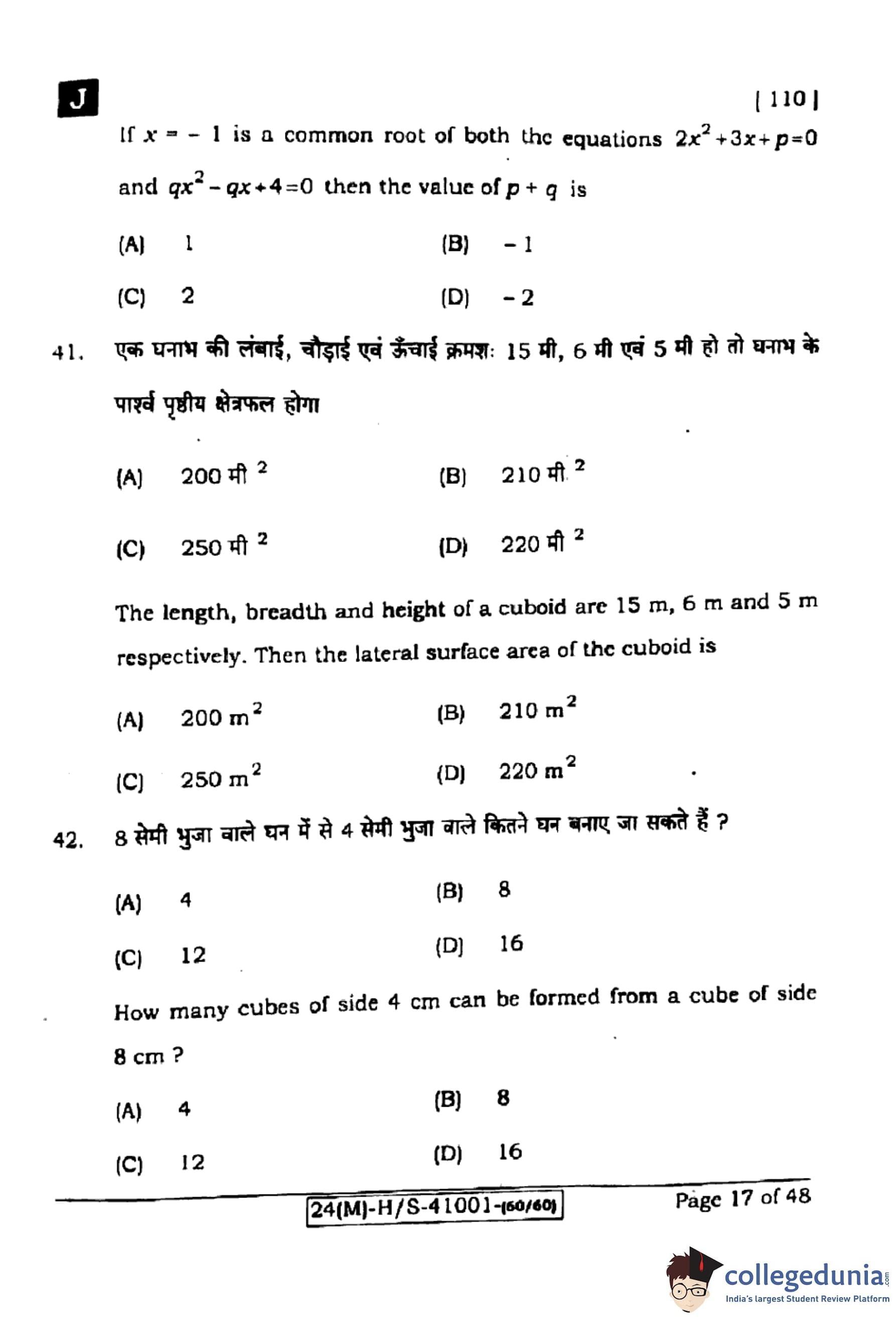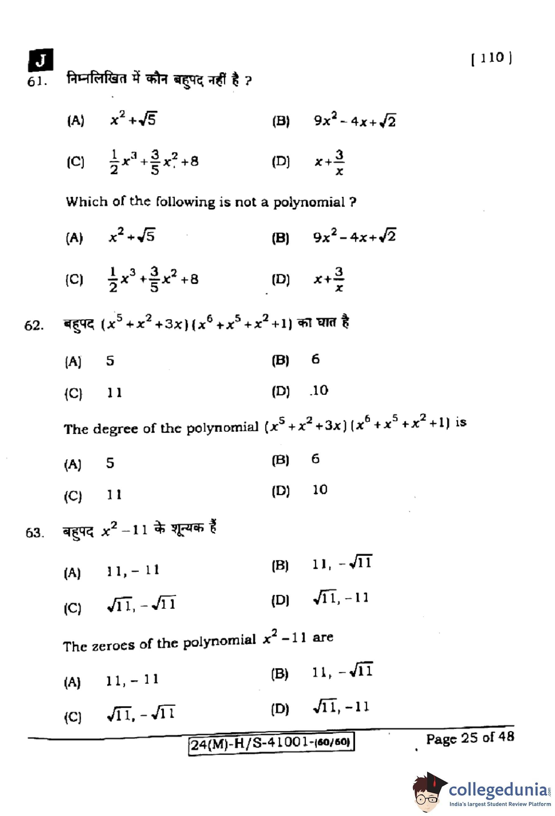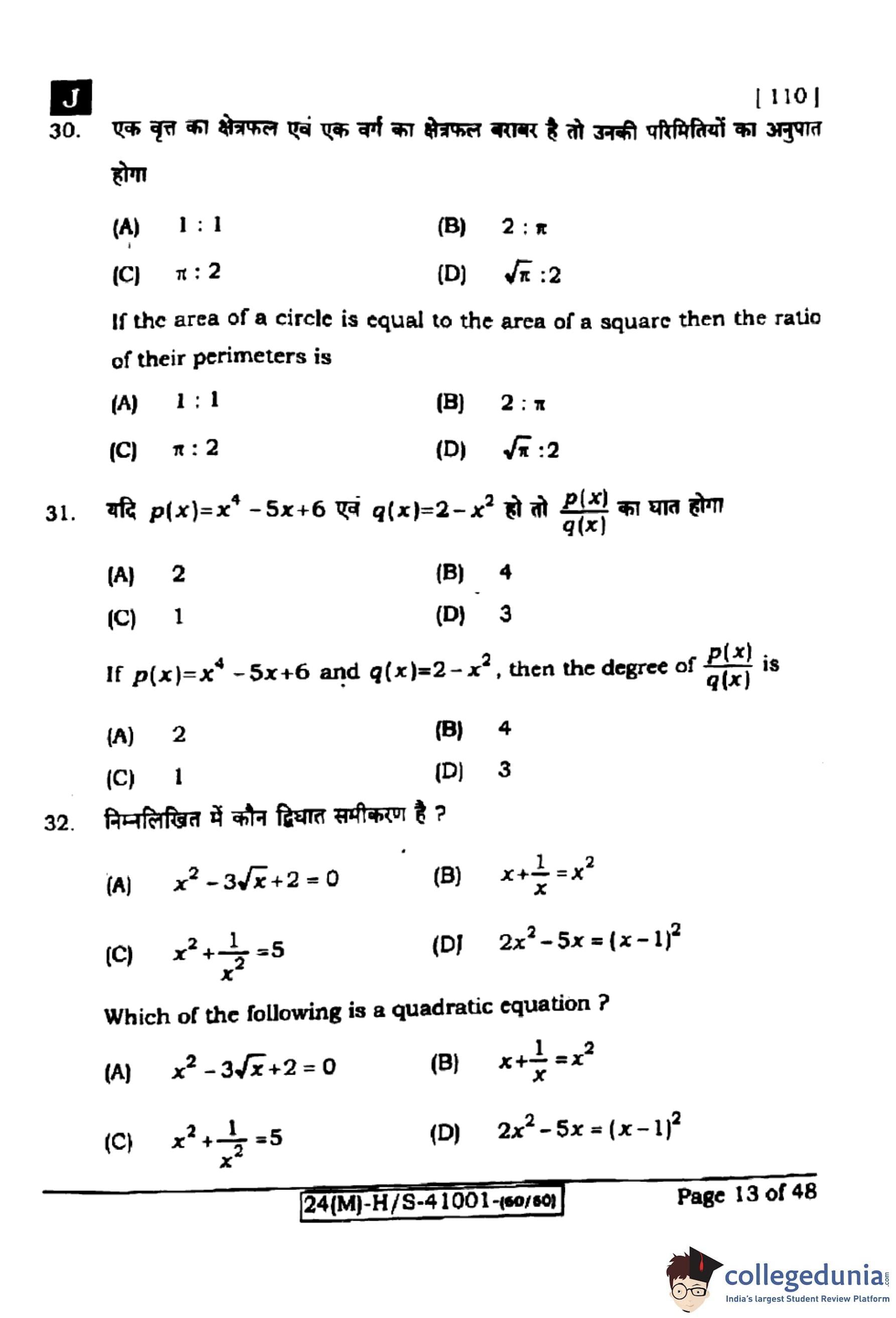 Bihar Board Class 10 (Set J) Maths Question Paper 2024 with Solutions