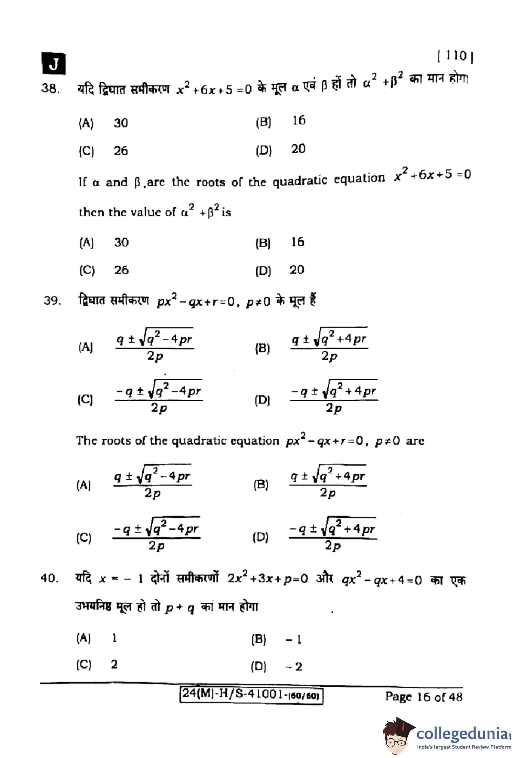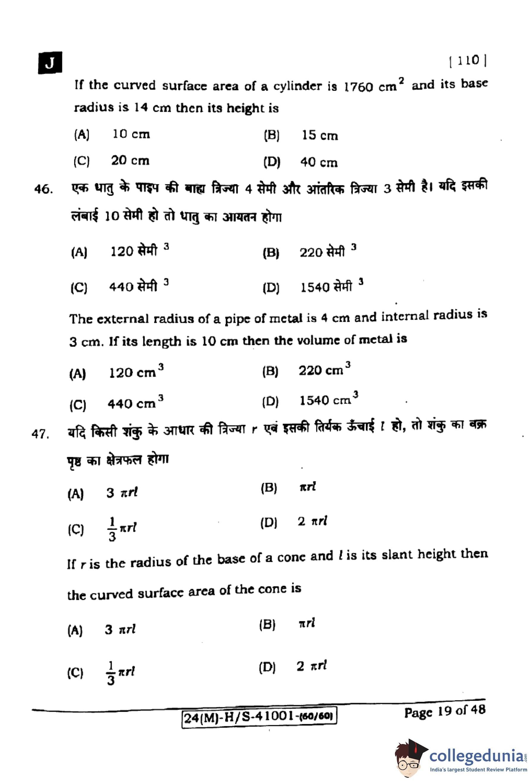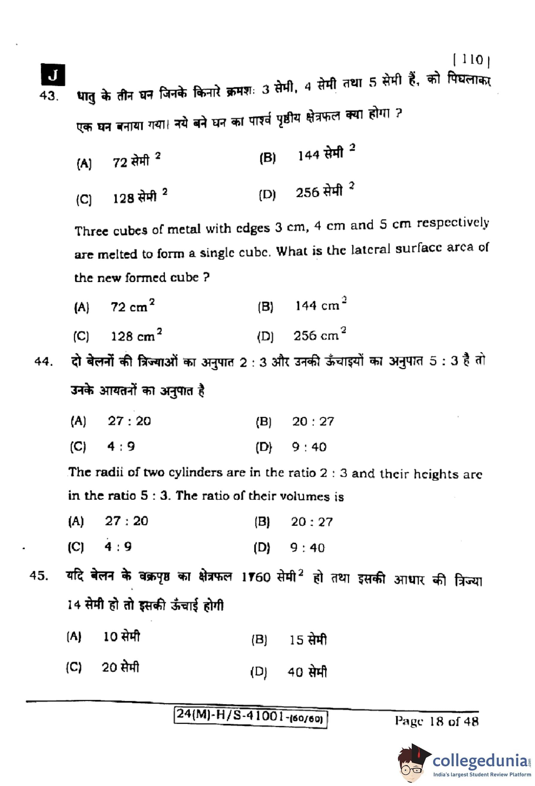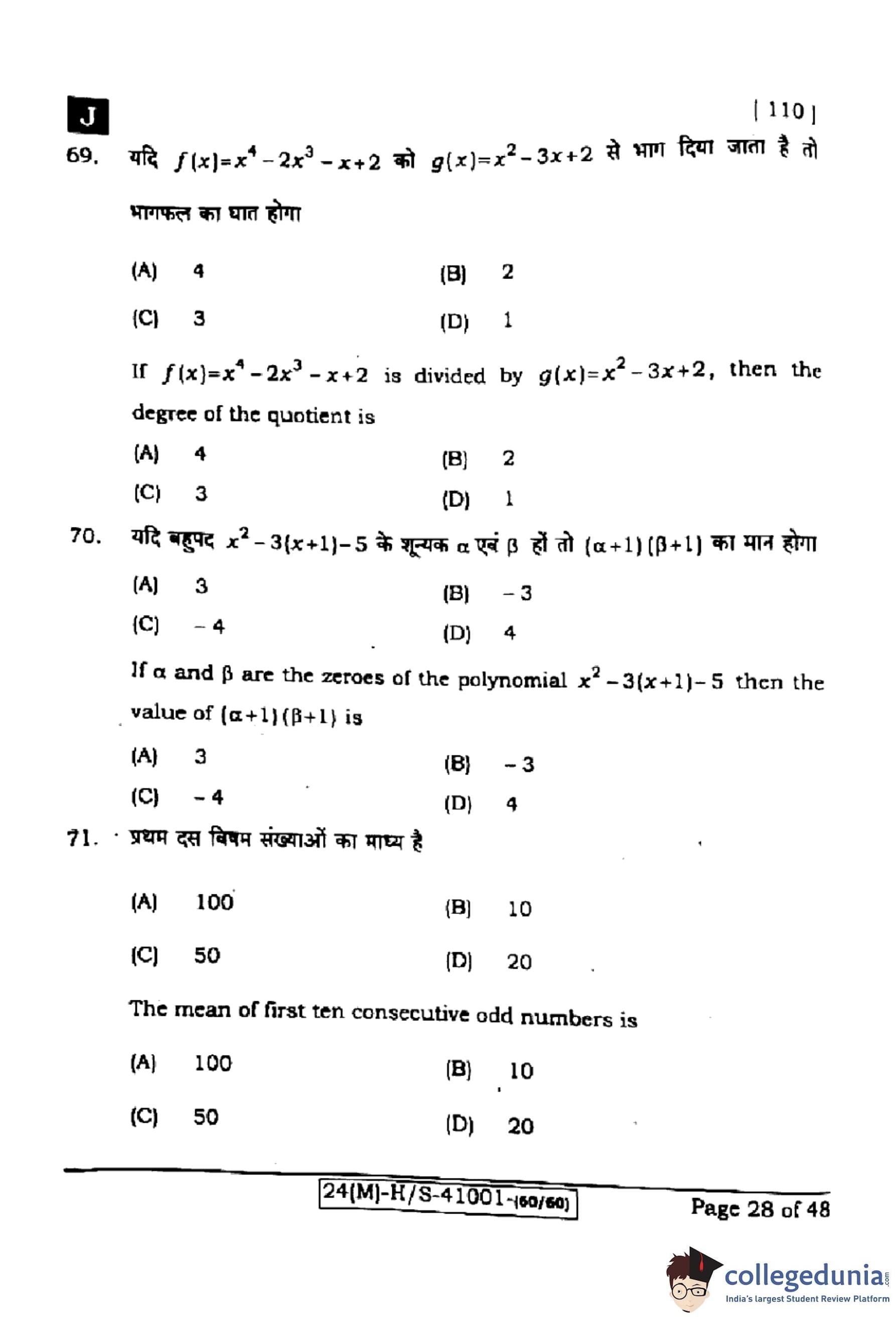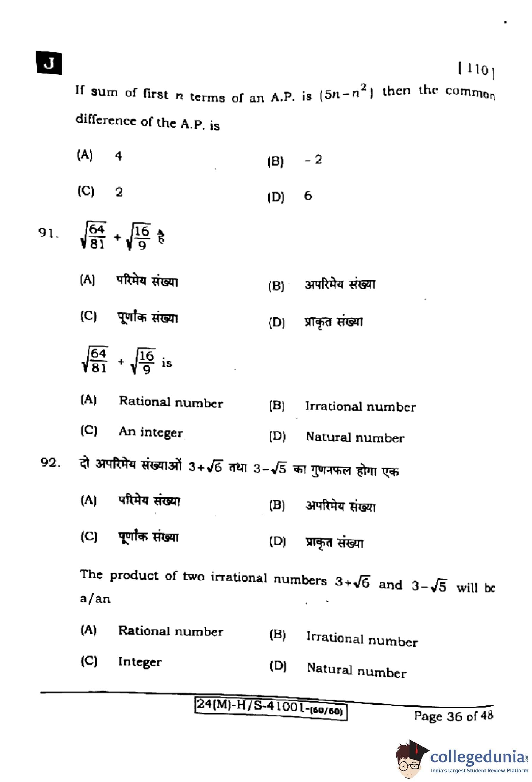 Bihar Board Class 10 (Set J) Maths Question Paper 2024 with Solutions