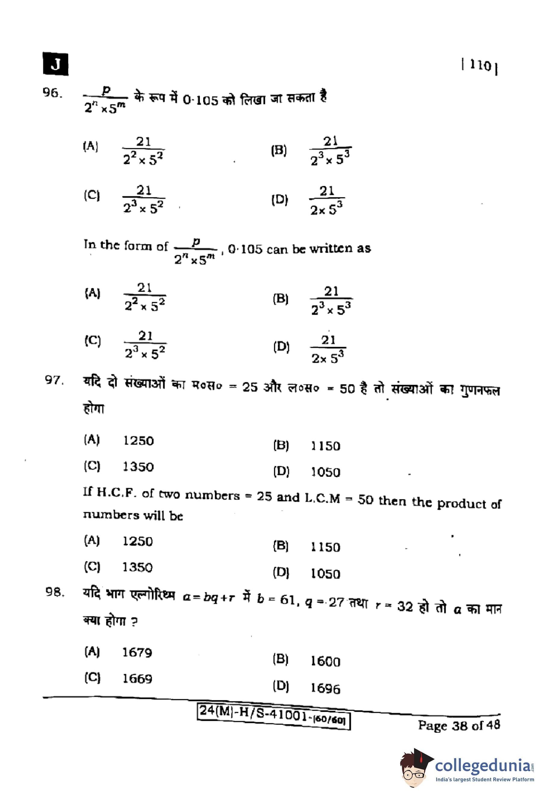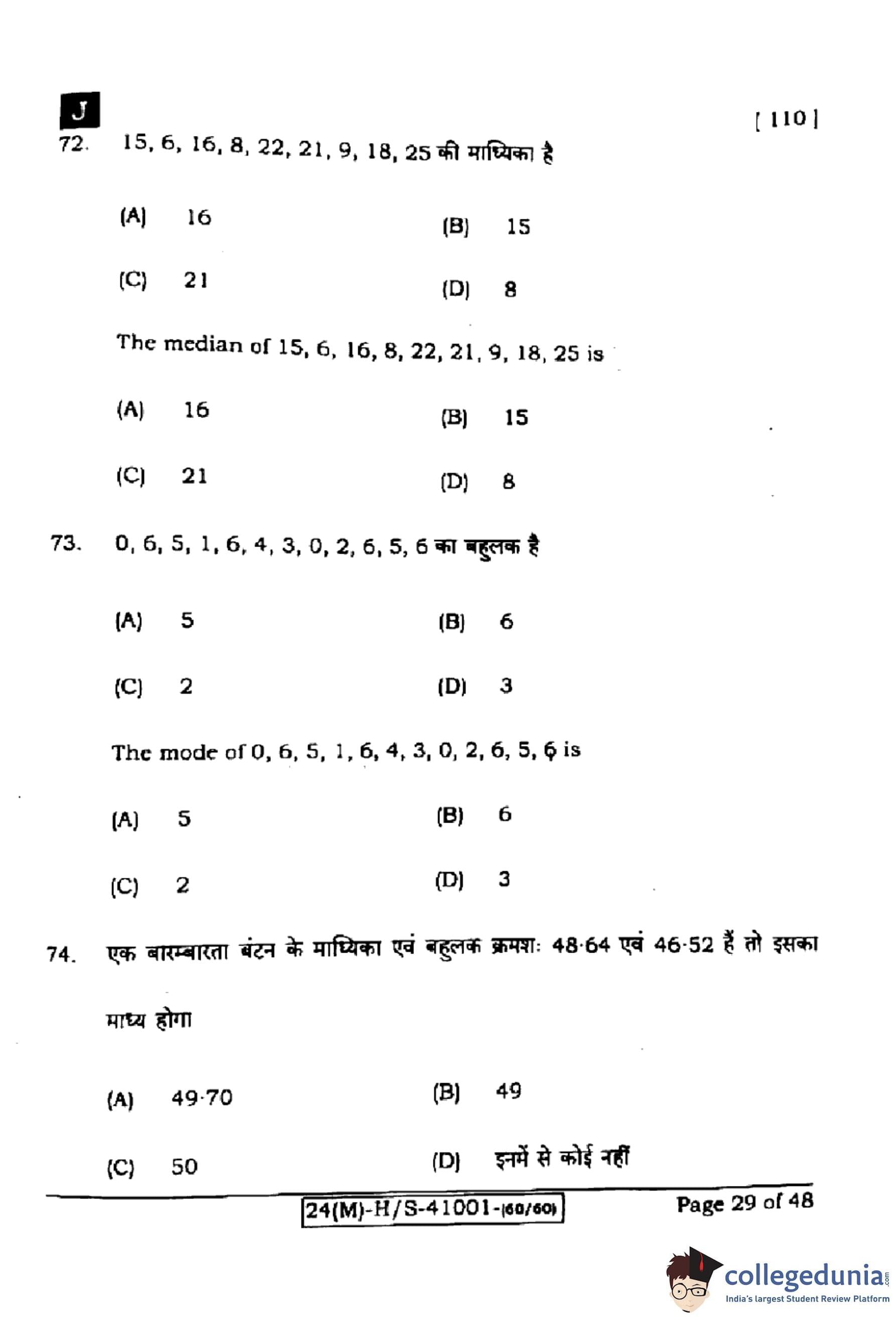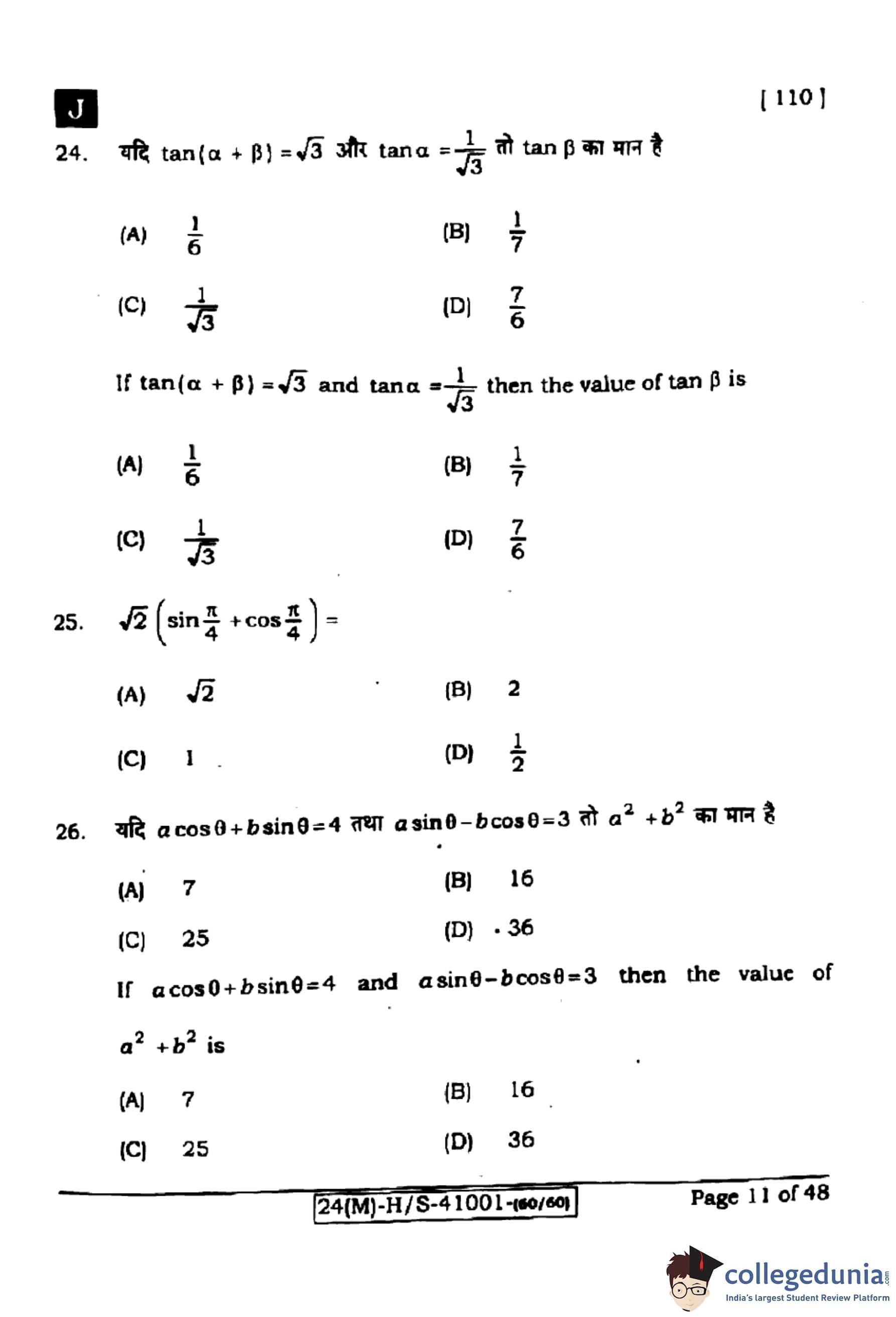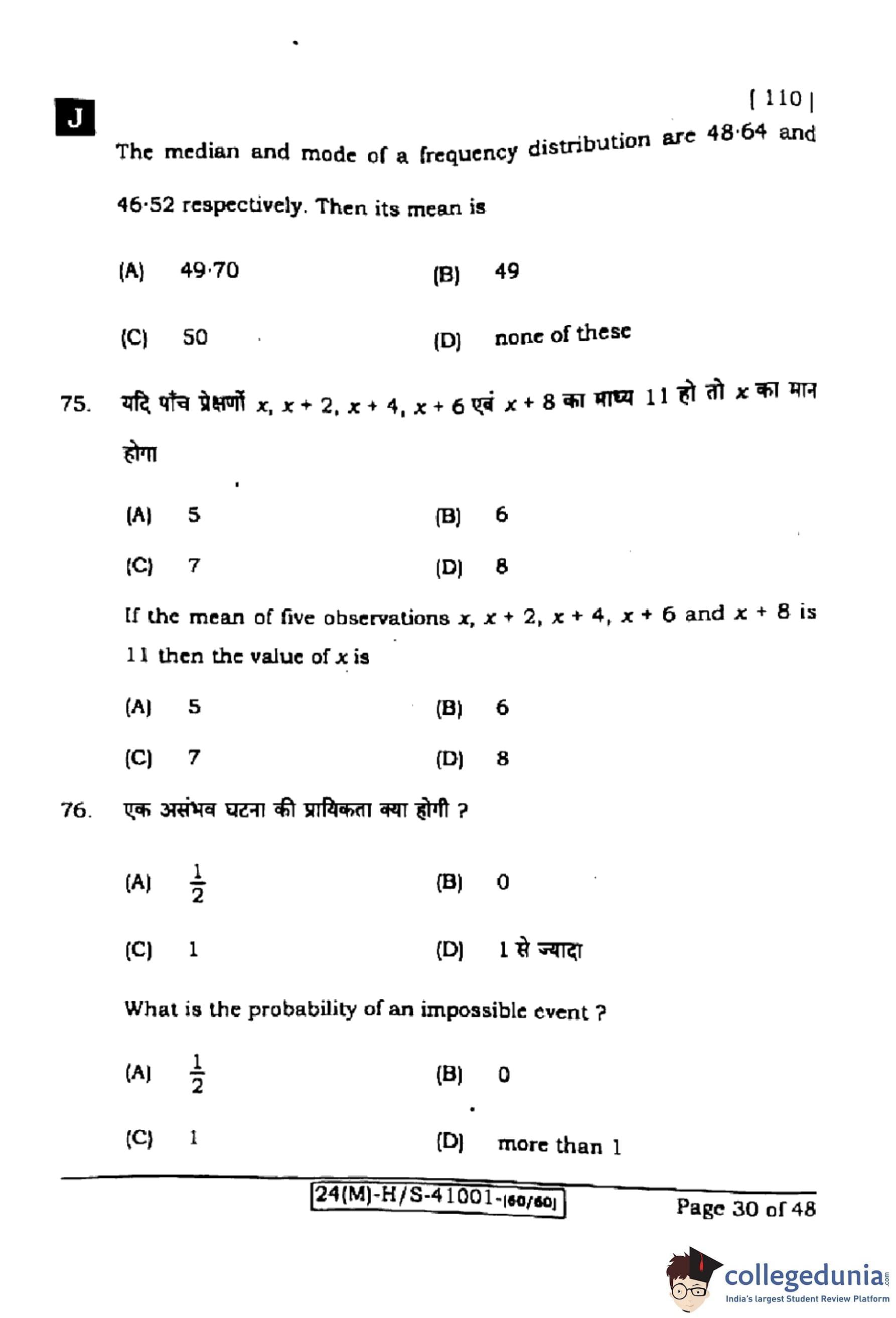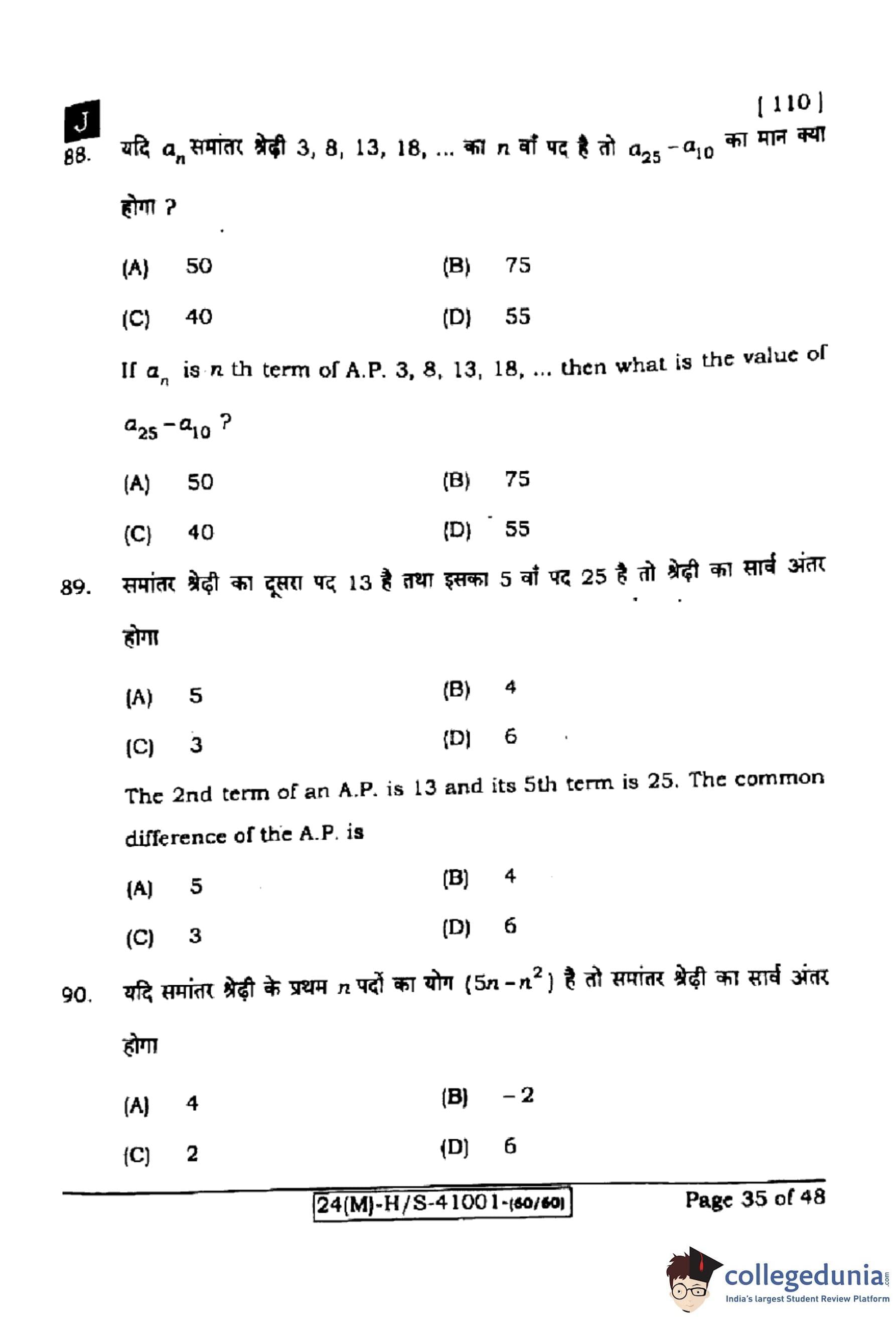 Bihar Board Class 10 (Set J) Maths Question Paper 2024 with Solutions