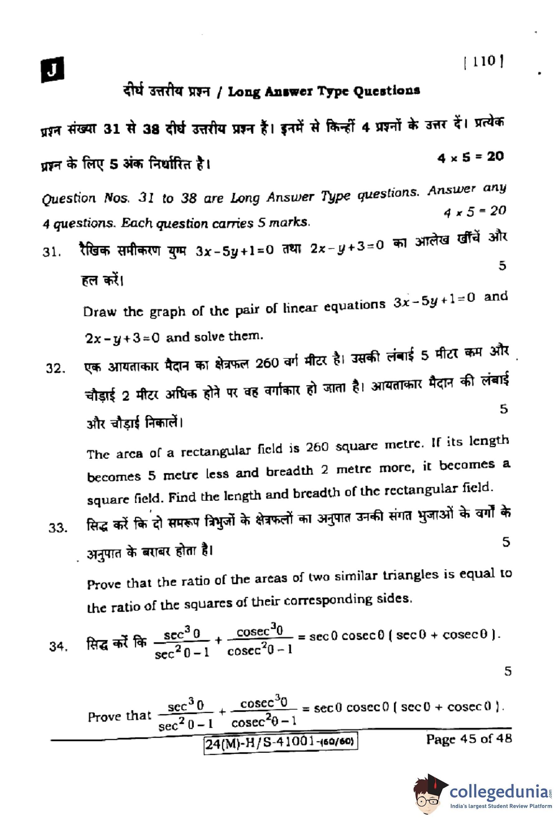 | Bihar Board Class 10 Maths Question Paper with Answer Key | Check Solution |