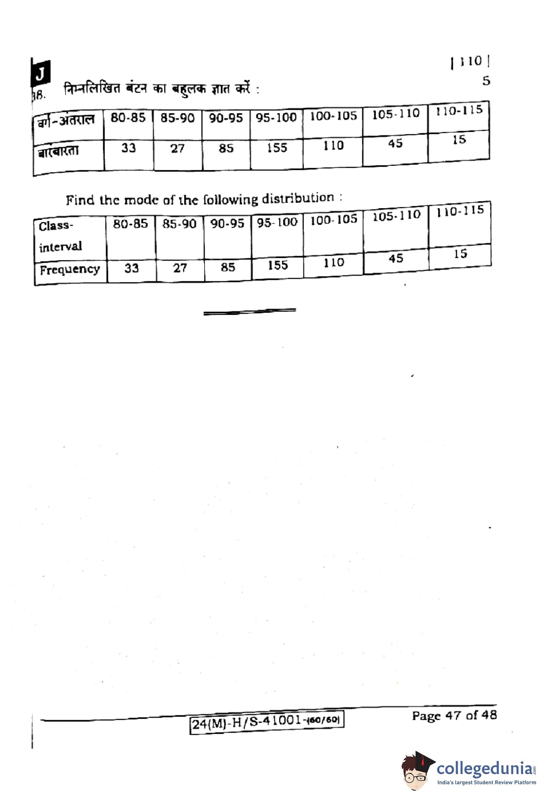 \[ = 95 + 3.04 \approx 98.04. \] Quick Tip: The mode is estimated using the modal class and interpolation formula.