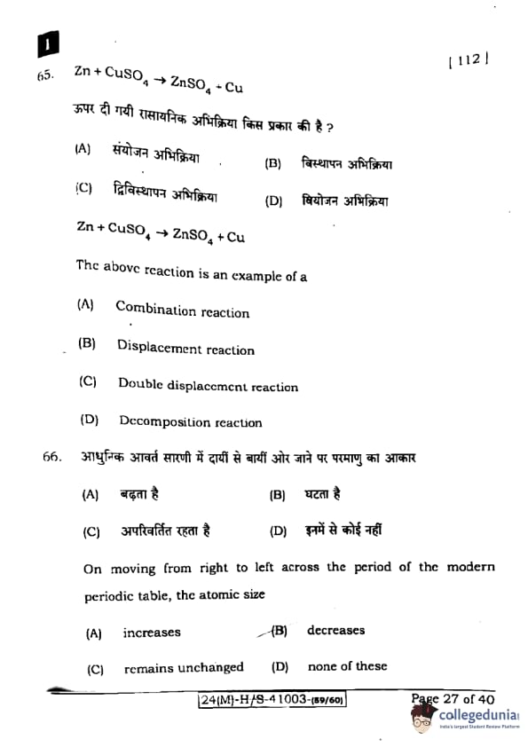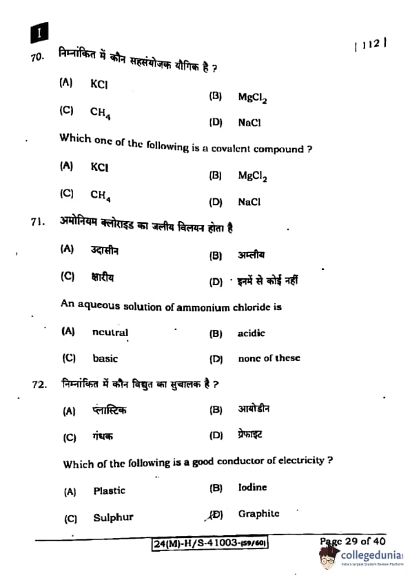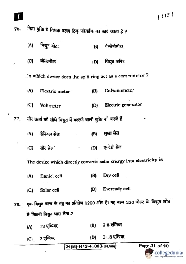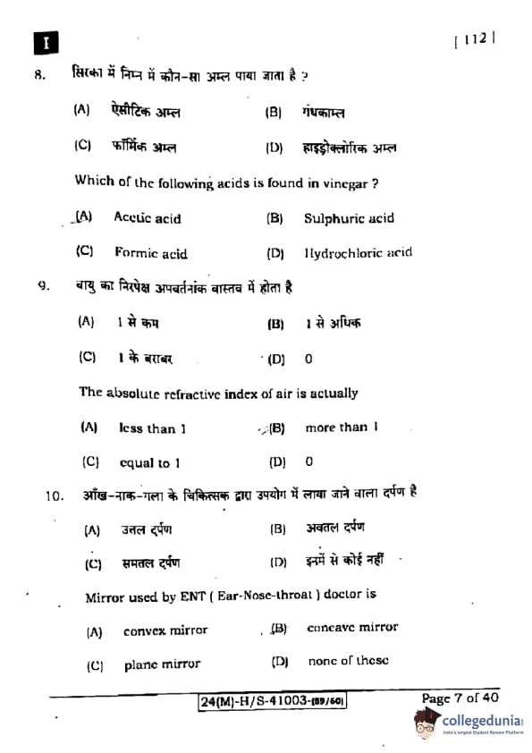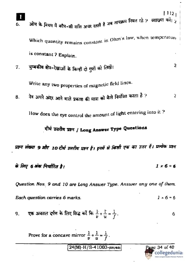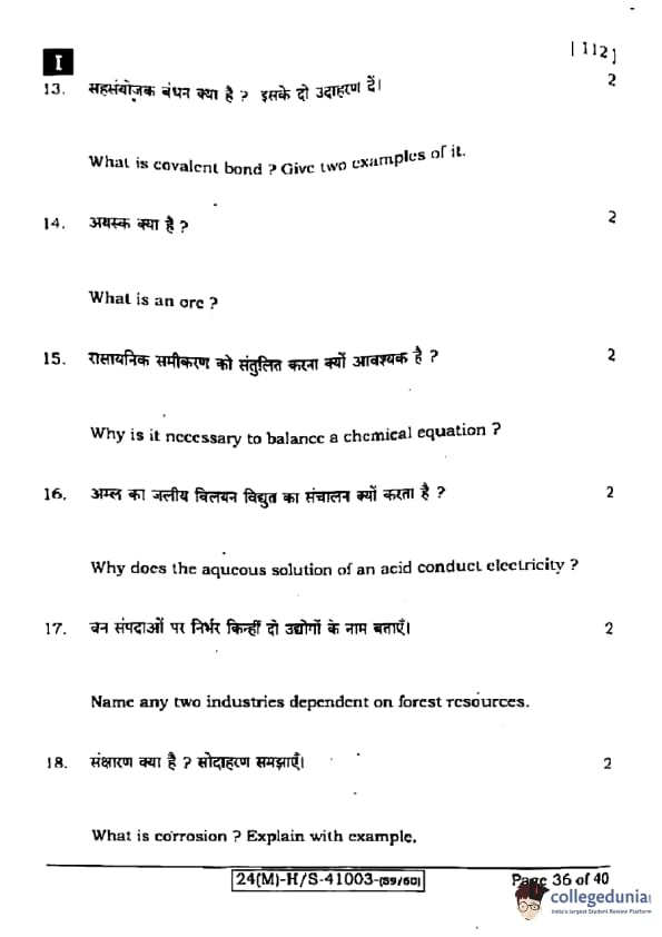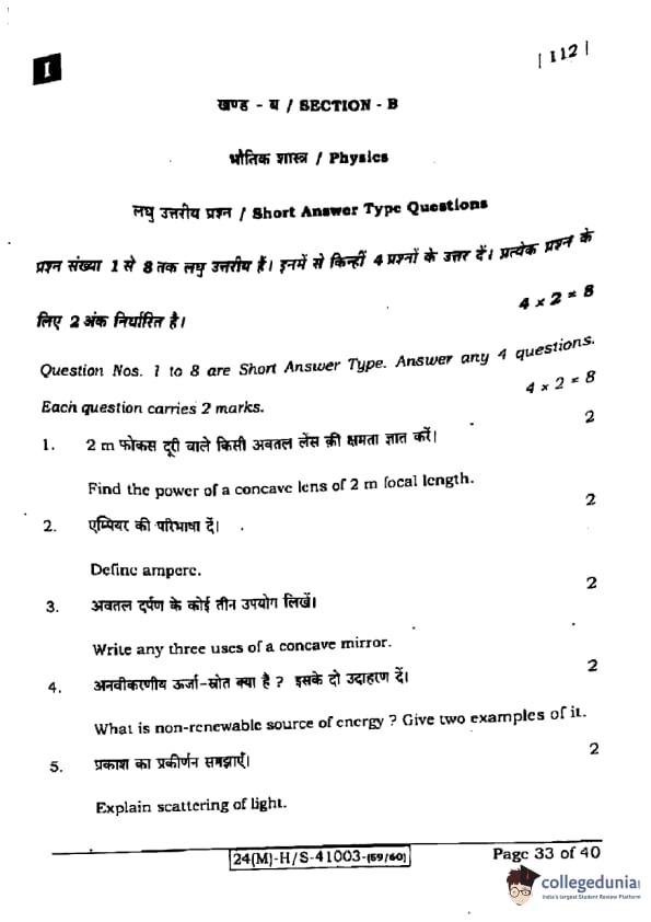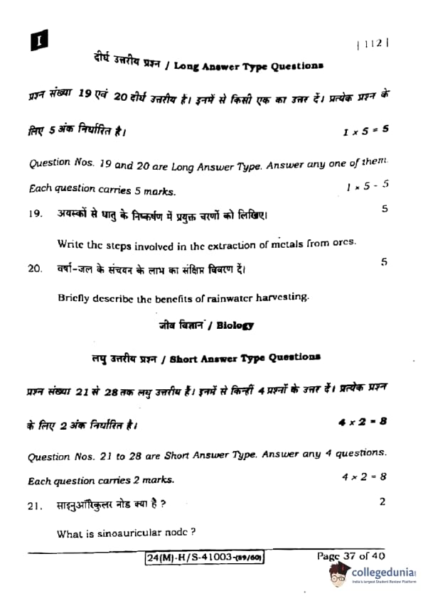 | Bihar Board Class 10 Science (Set 1 Shift 1) Question Paper with Answer Key | Check Solution |
