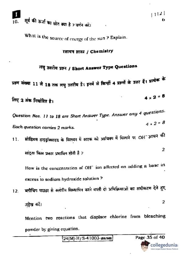 Bihar Board Class 10 Science Question Paper 2024 with Solutions
