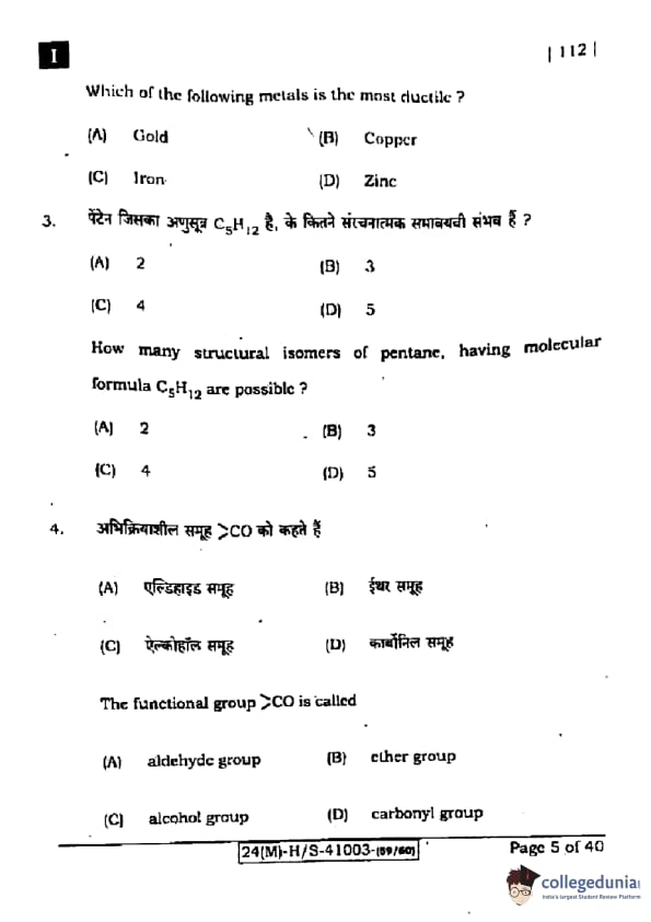 The functional group \( >CO \) is known as the carbonyl group. It is found in aldehydes, ketones, carboxylic acids, and their derivatives. Quick Tip: The carbonyl group is a key functional group in organic chemistry, playing a central role in many important reactions such as nucleophilic addition and substitution.