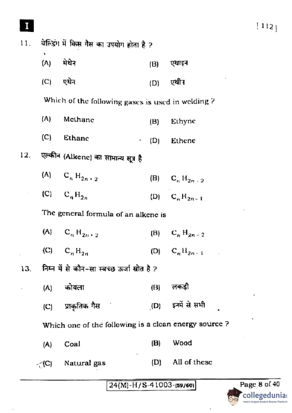Ethyne (also known as acetylene, \( C_2H_2 \)) is commonly used in welding because it burns with a hot flame. Quick Tip: Acetylene is one of the most common gases used in oxy-acetylene welding due to its high temperature when burned.