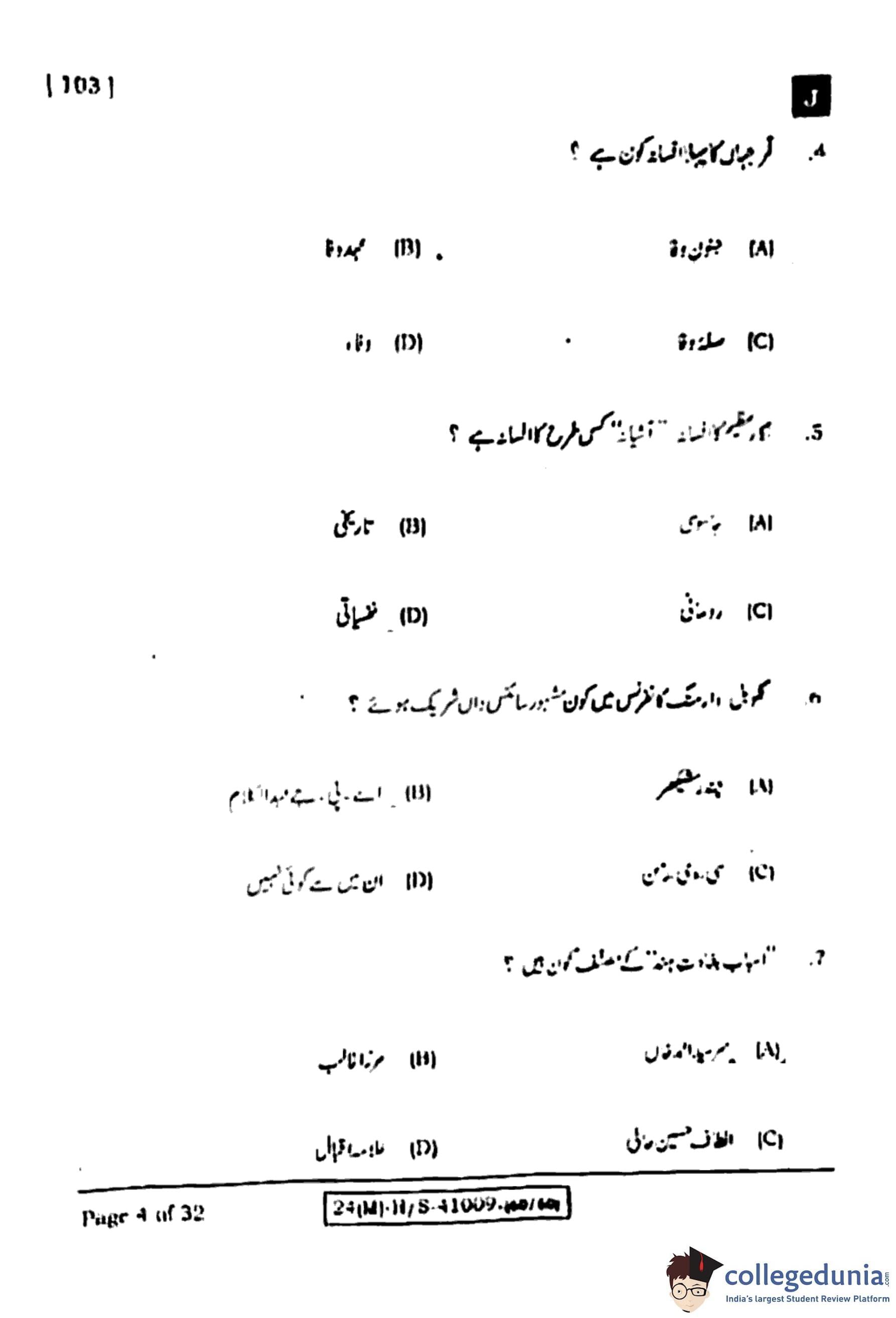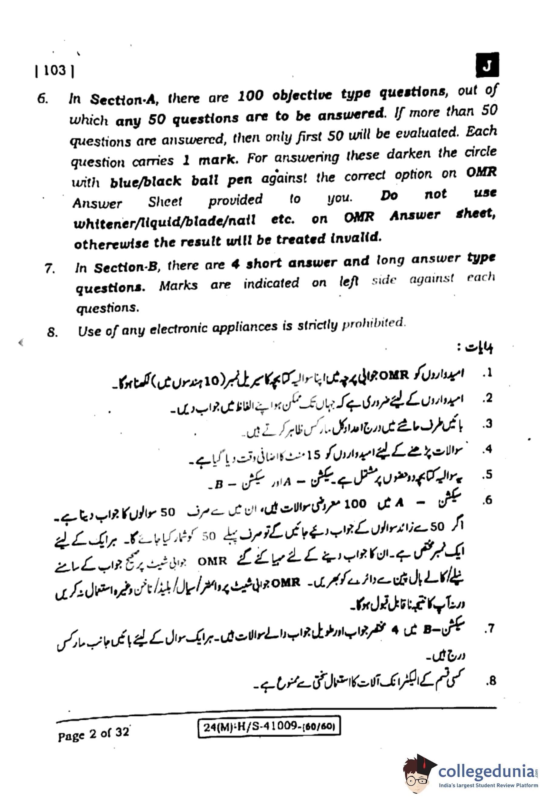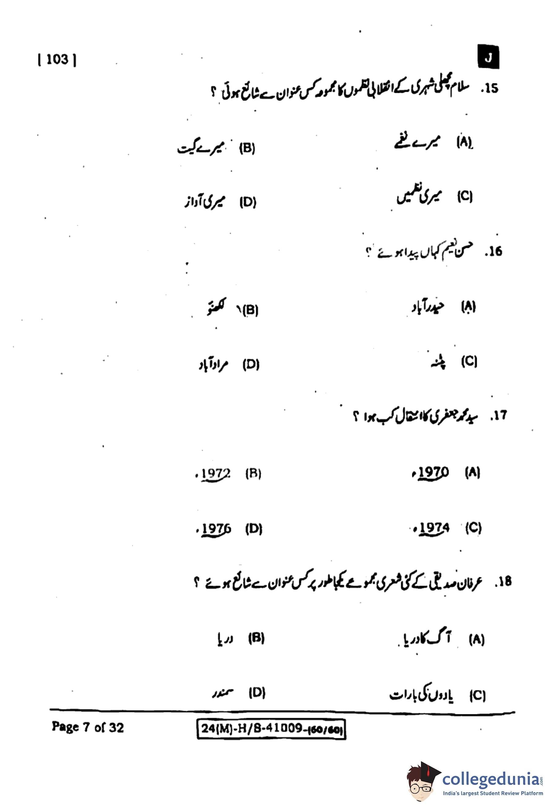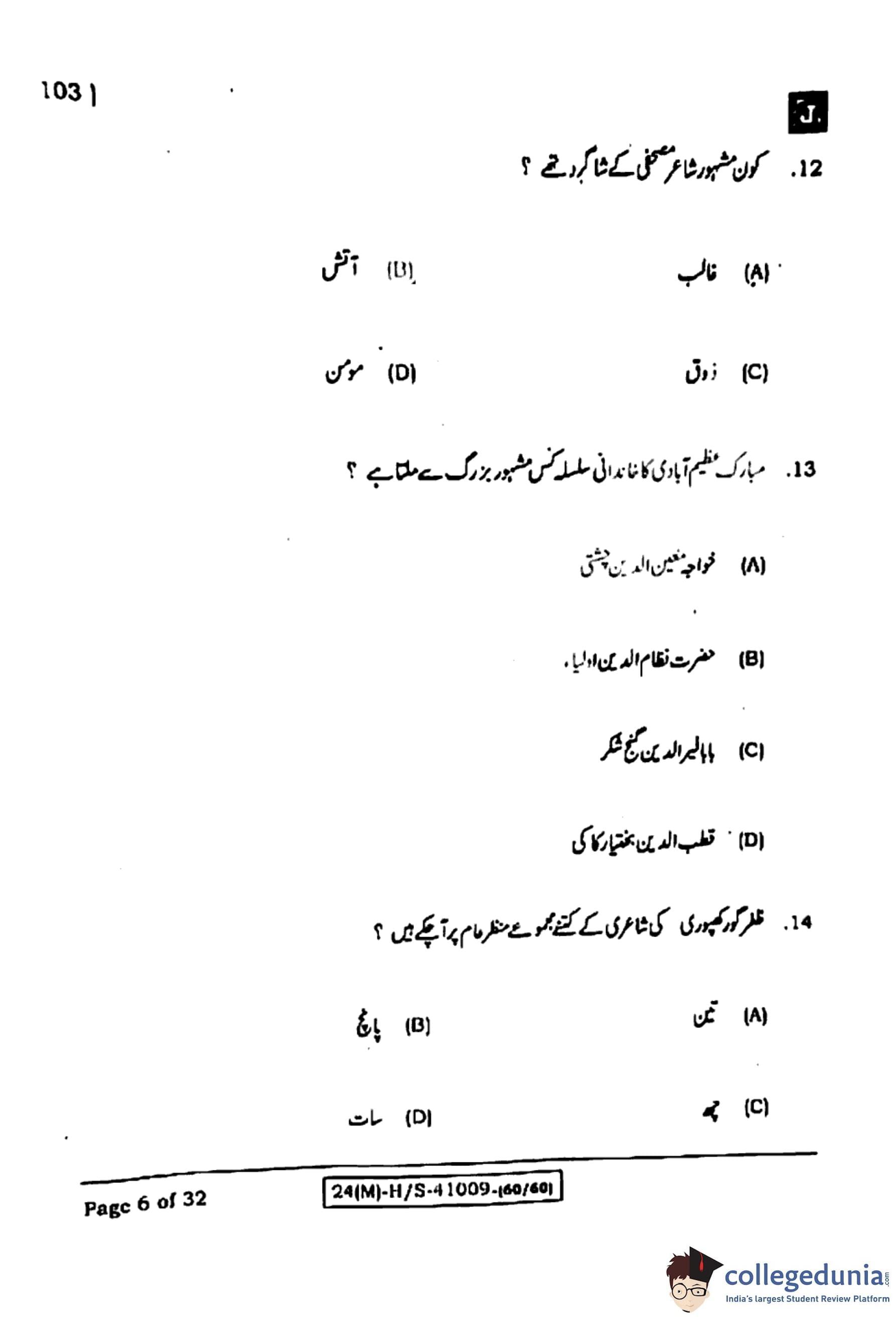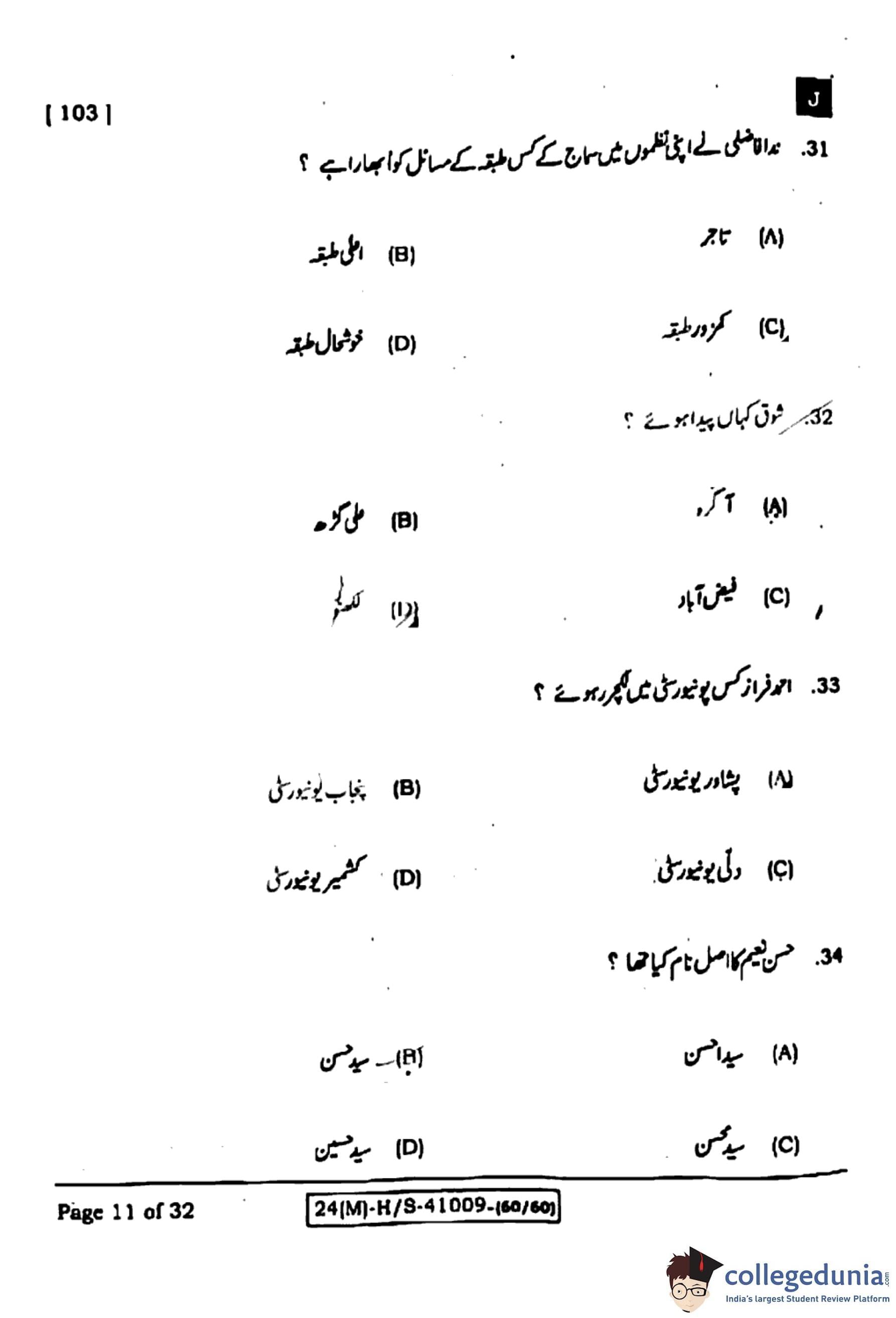 Bihar Board Class 10 Urdu Question Paper 2024 (SET J) with Answer Key (Shift 1)