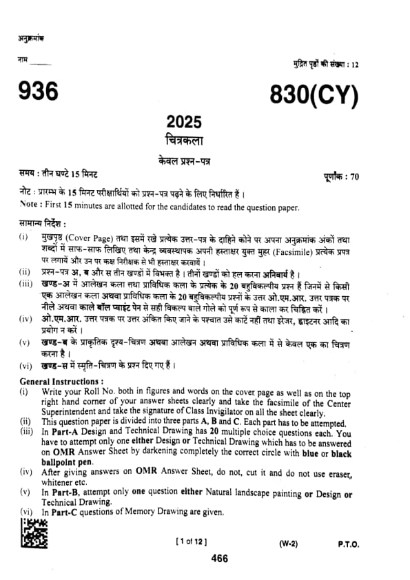 UP Board Class 10 Chitrakala Question Paper 2025 PDF (Code 830 CY) with Answer Key and Solutions PDF is available for download here. UP Board Class 10 exams were conducted between February 24th to March 12th 2025. The total marks for the theory paper were 70. Students reported the paper to be easy to moderate.