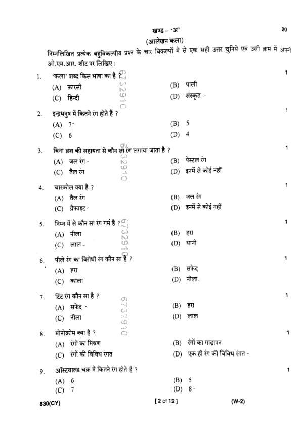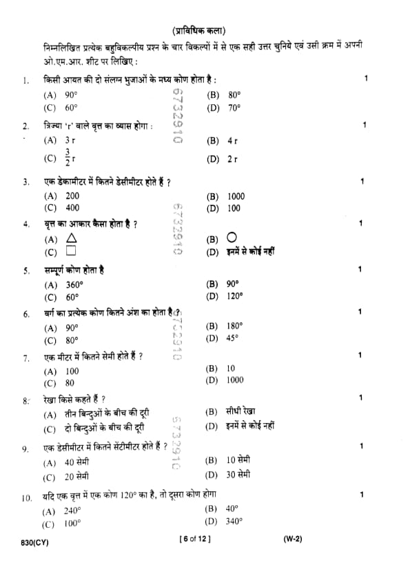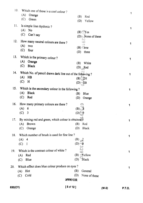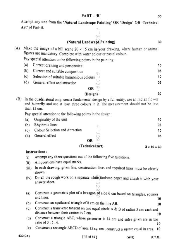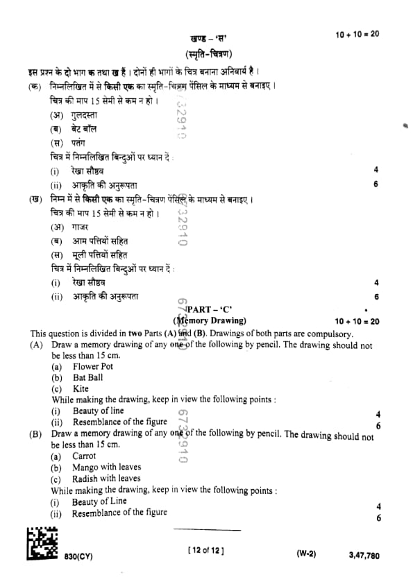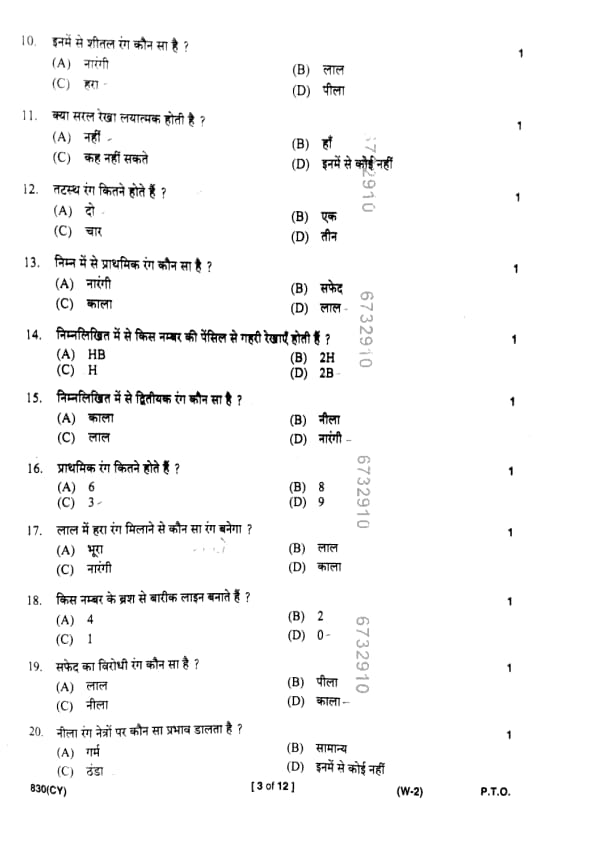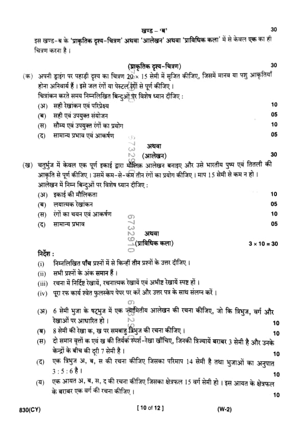| UP Board Class 10 Chitrakala (830 CY) Question Paper with Answer Key | Check Solutions |