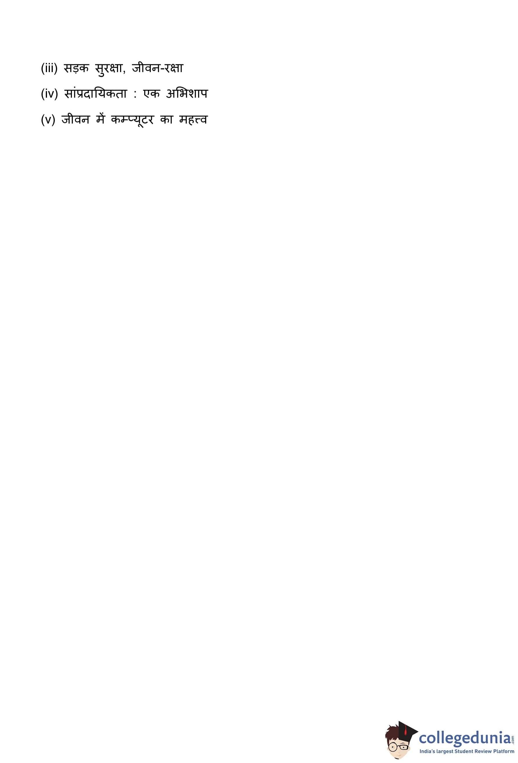 निम्नलिखित में से किसी एक विषय पर निबंध लिखिए: