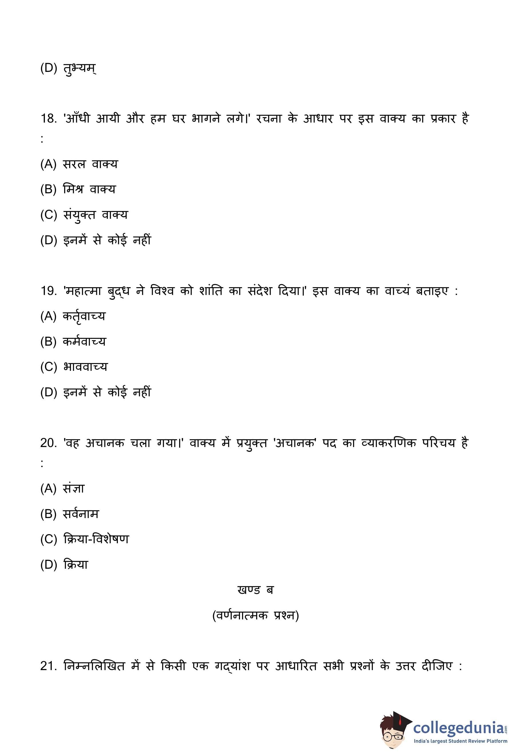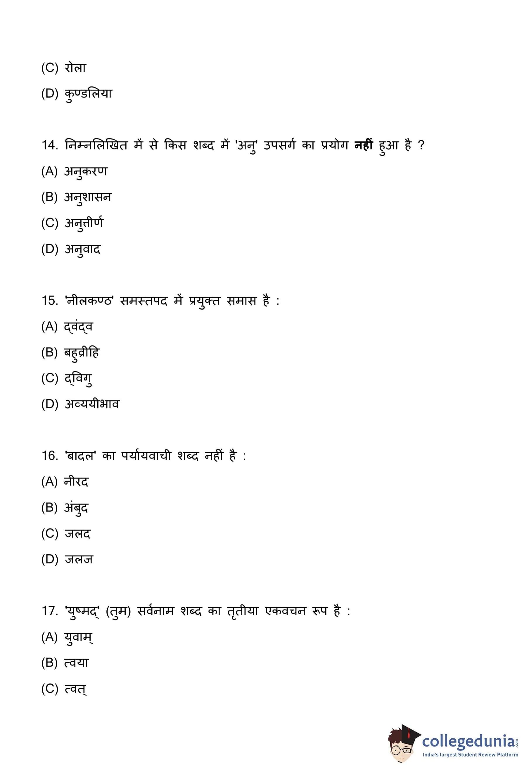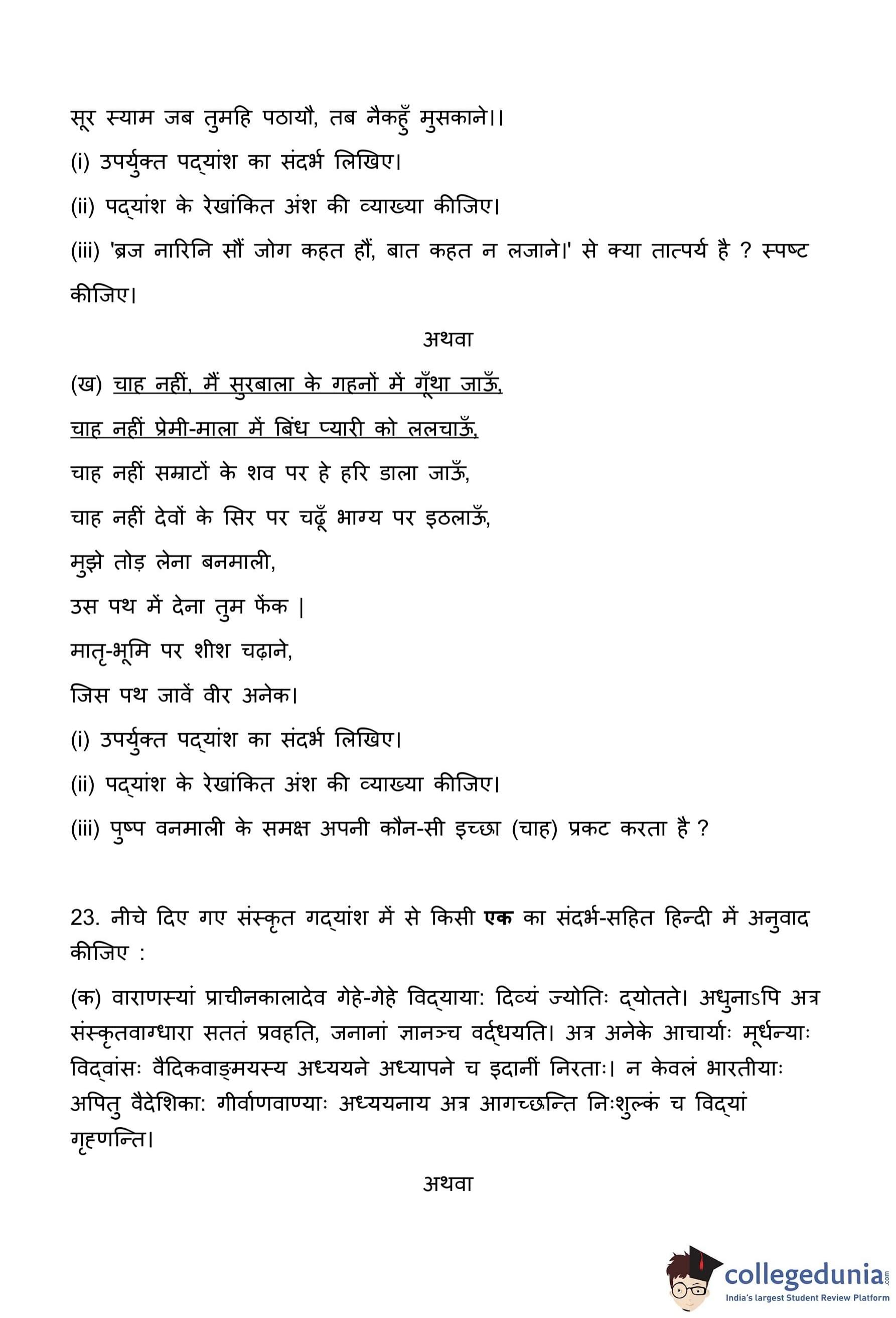 प्रश्न-पत्र में आए श्लोक हैं: