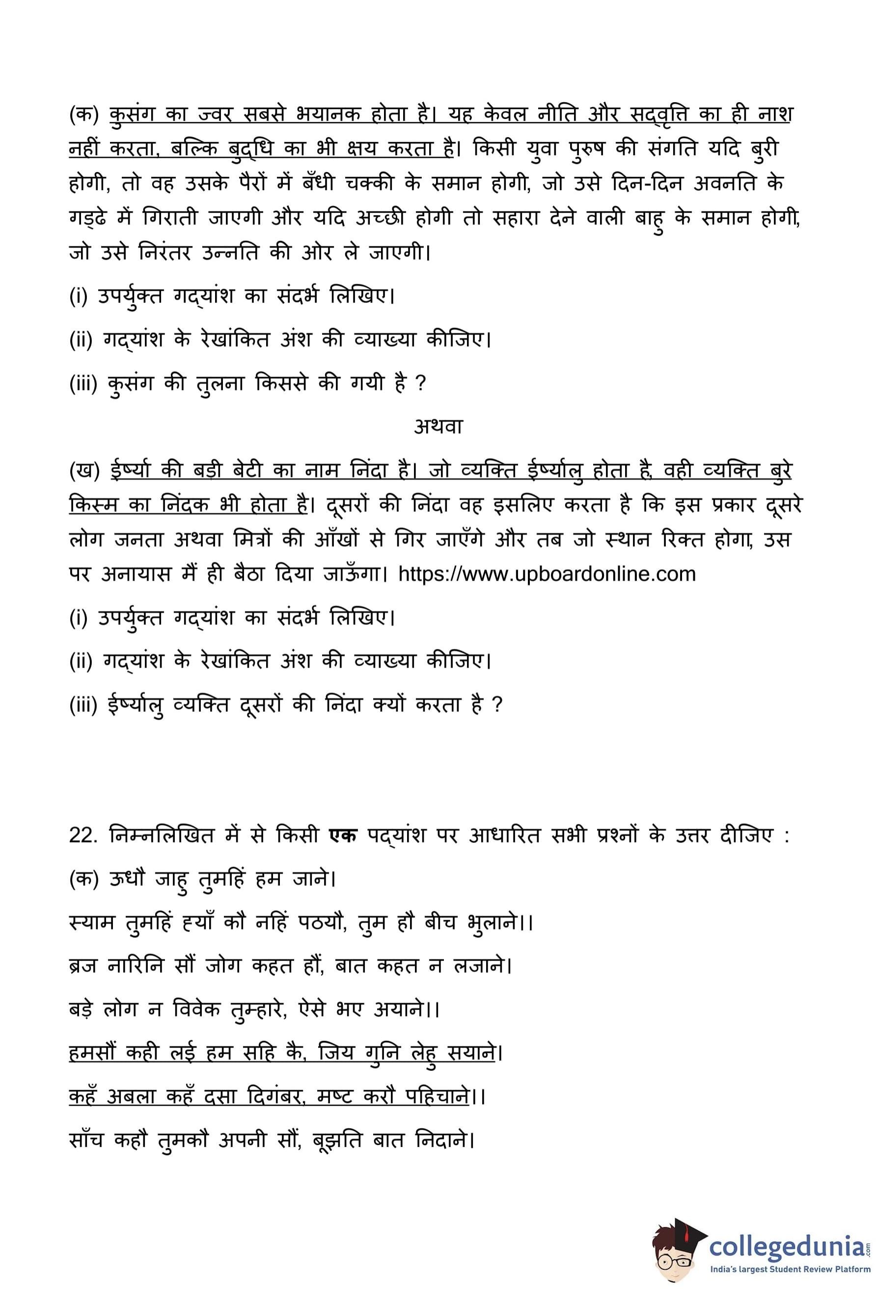 | UP Board Class 10 Hindi Question Paper with Solutions PDF | Check Solution |
