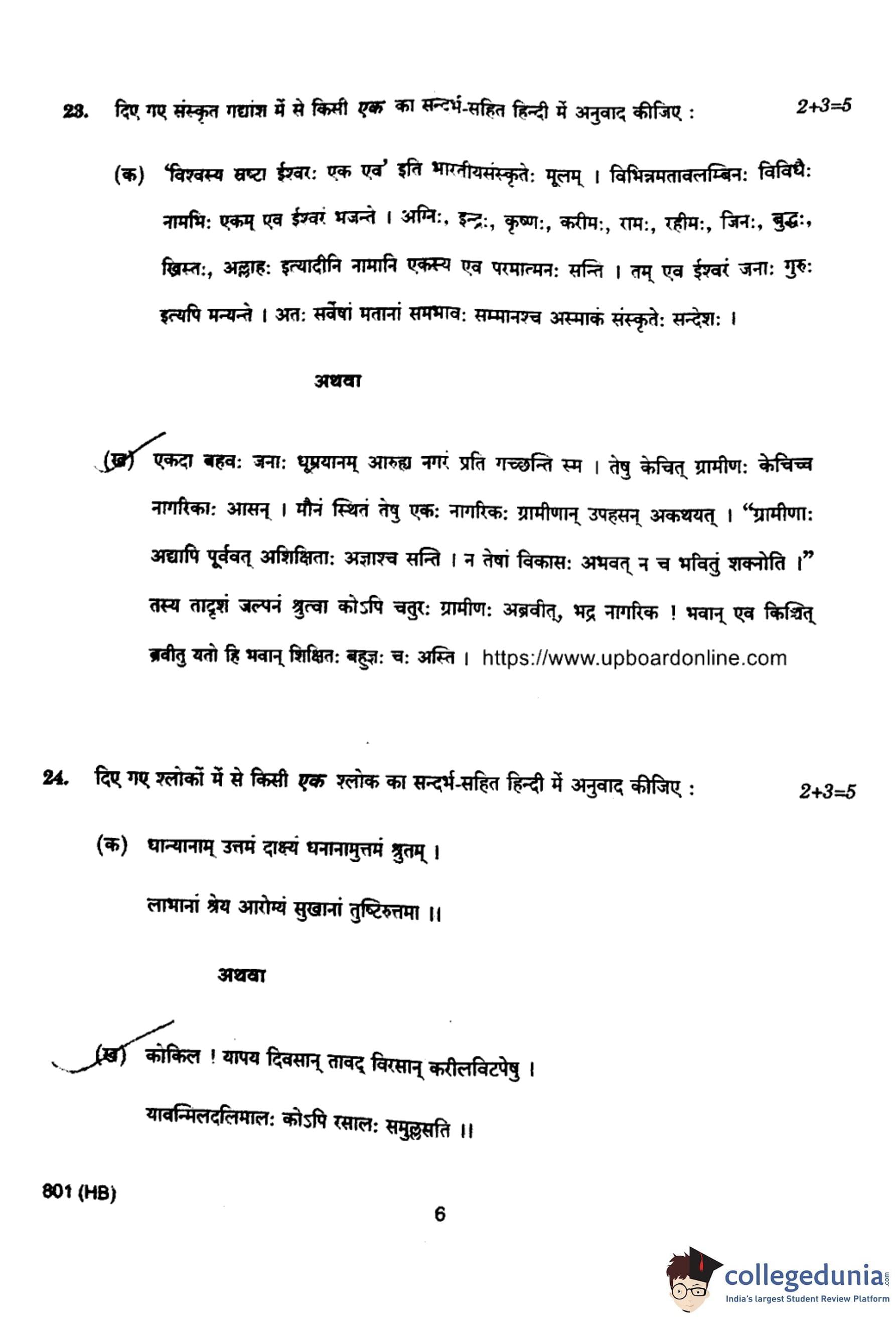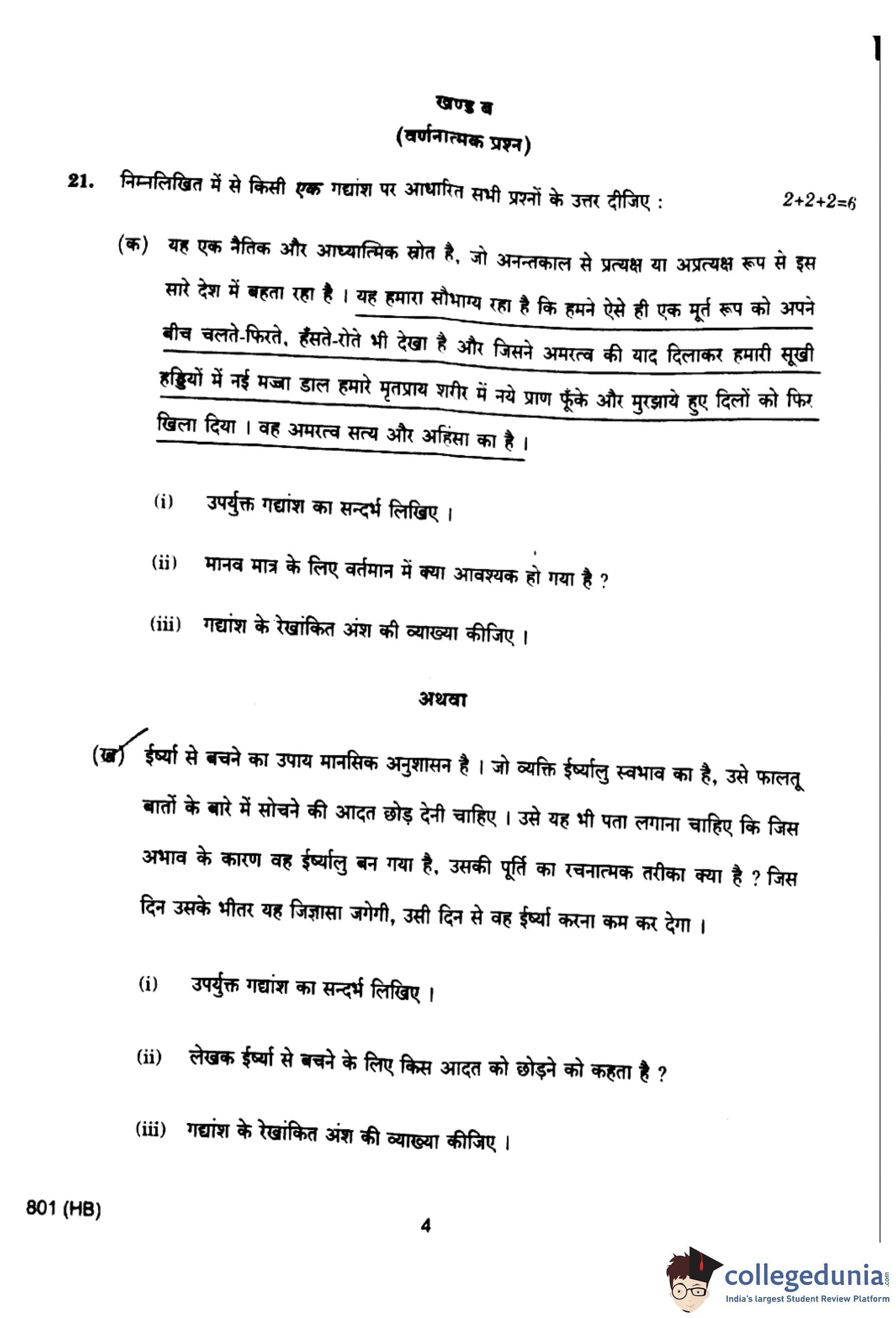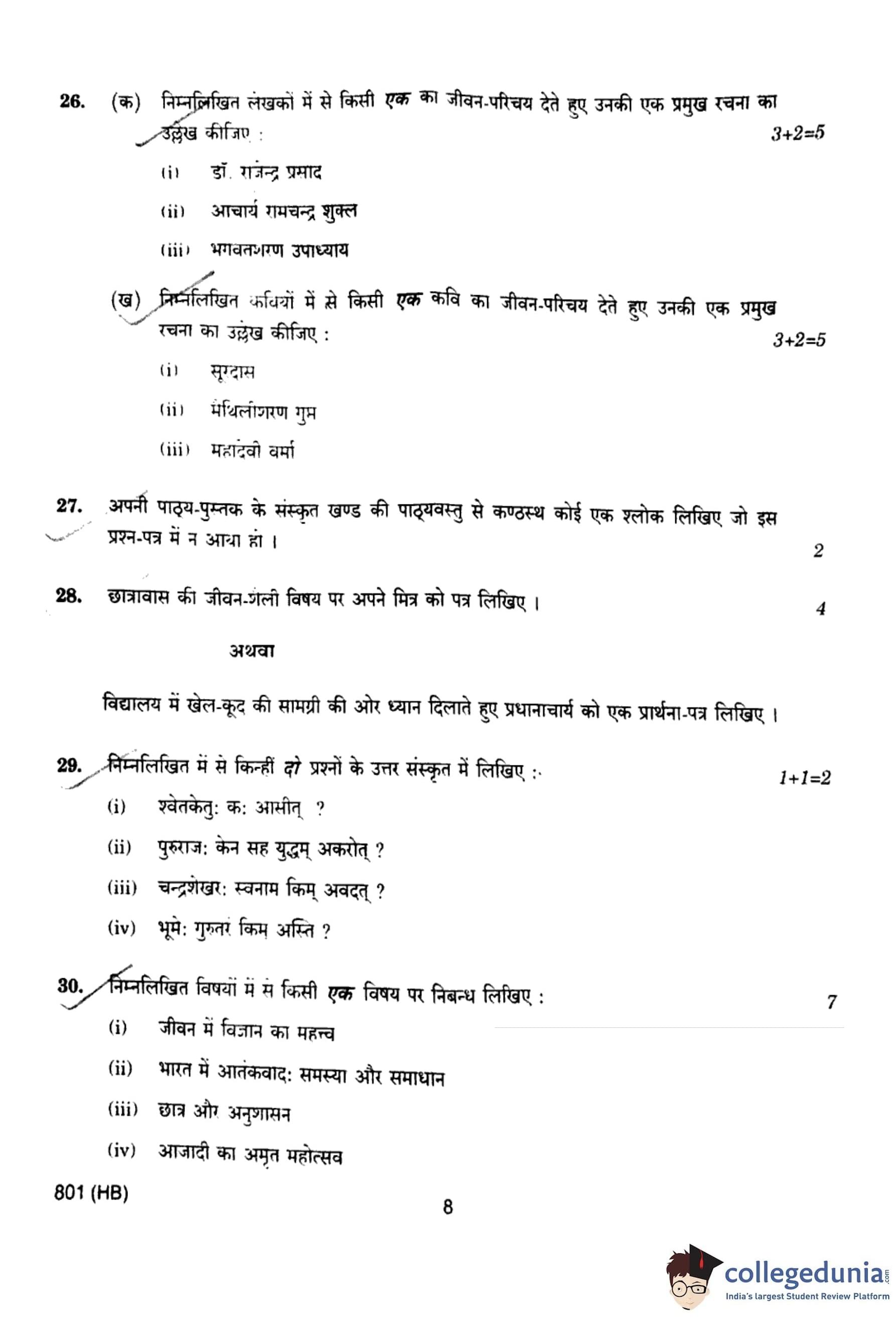UP Board Class 10 Hindi Question Paper 2024 (Code 801 HB) with Solutions