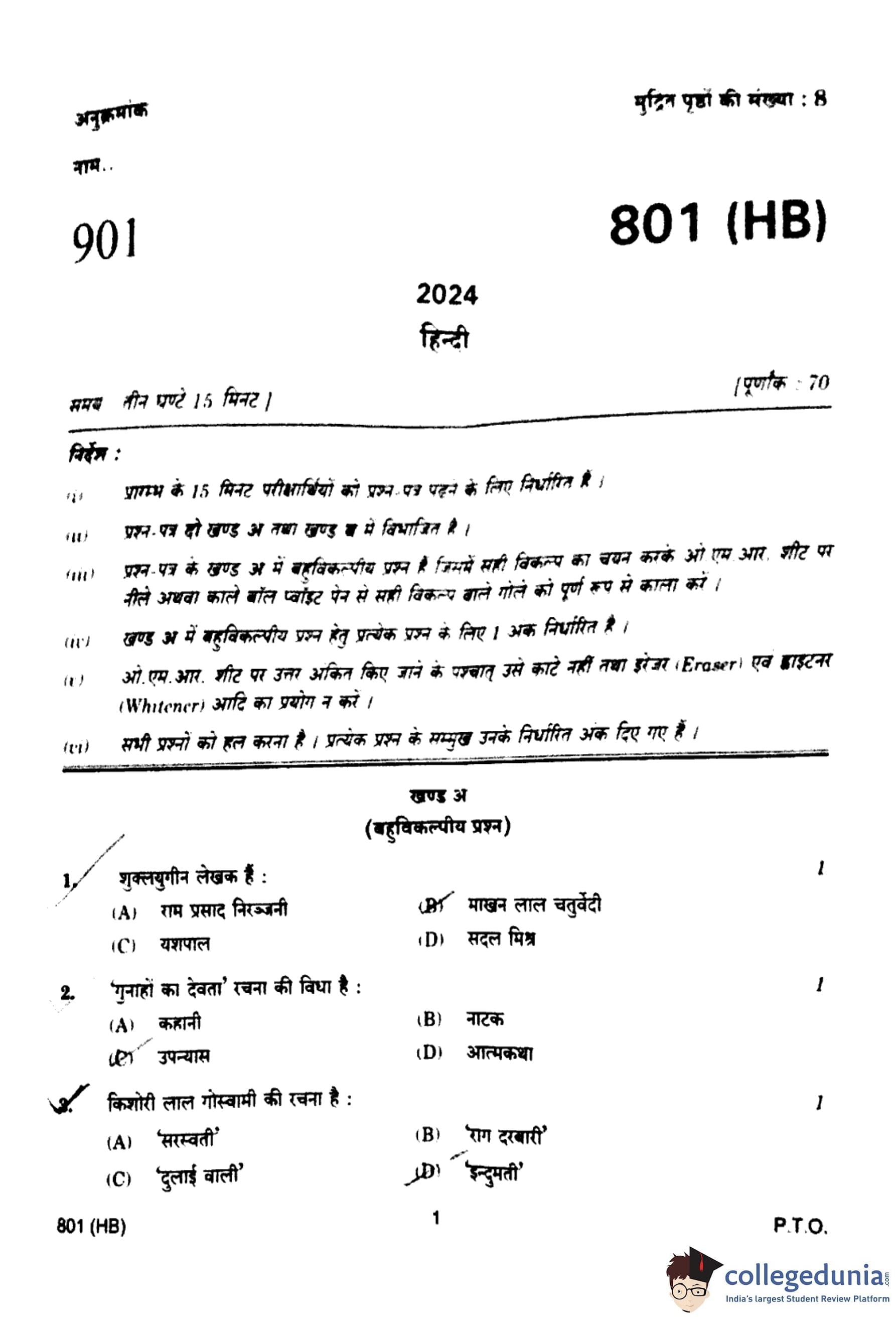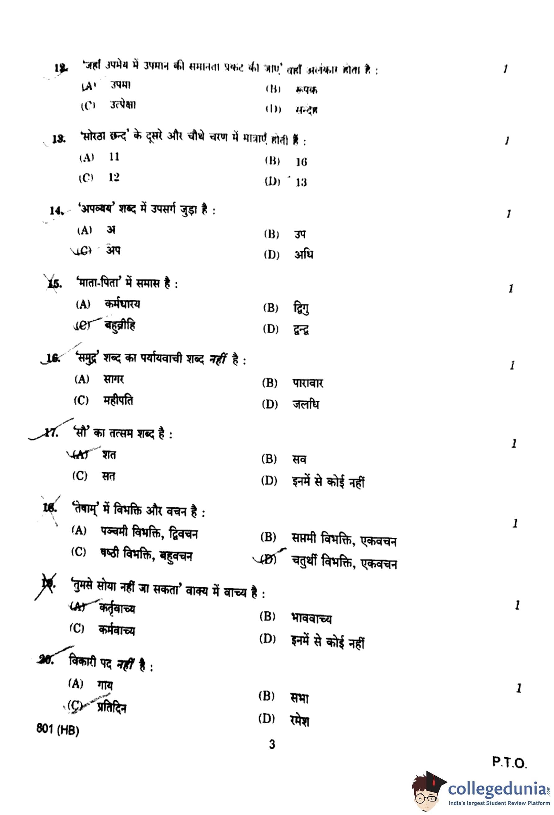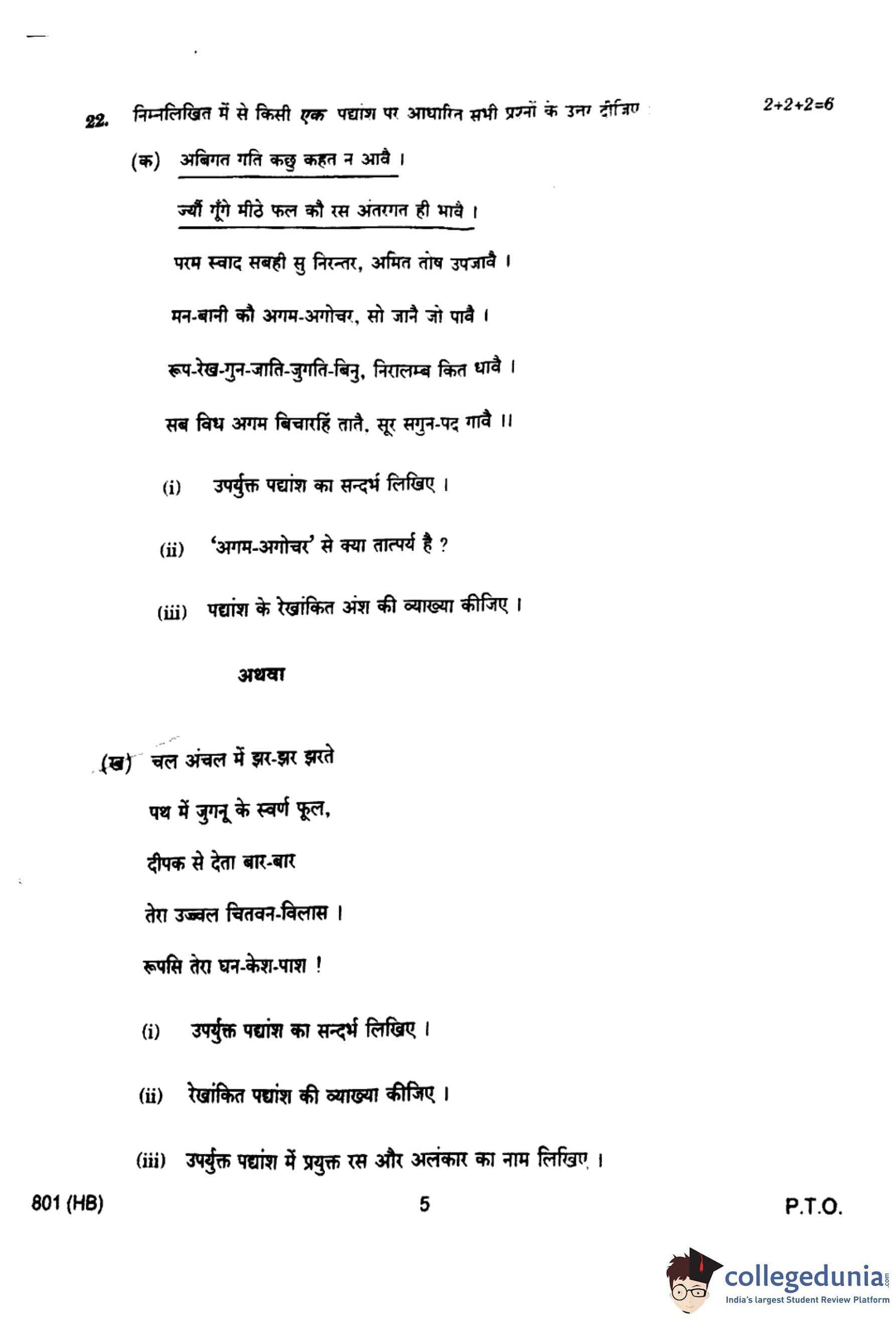 UP Board Class 10 Hindi Question Paper 2024 (Code 801 HB) with Solutions