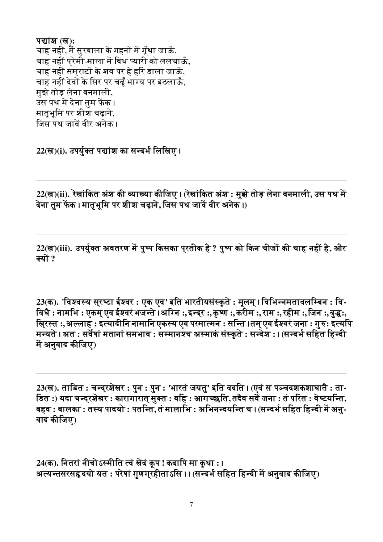 рдЕрдкрдиреА рдкрд╛рдареНрдп-рдкреБрд╕реНрддрдХ рдореЗрдВ рд╕реЗ рдХрдгреНрдард╕реНрде рдХреЛрдИ рдПрдХ рд╢реНрд▓реЛрдХ рд▓рд┐рдЦрд┐рдП, рдЬреЛ рдЗрд╕ рдкреНрд░рд╢реНрди рдкрддреНрд░ рдореЗрдВ рди рдЖрдпрд╛ рд╣реЛред