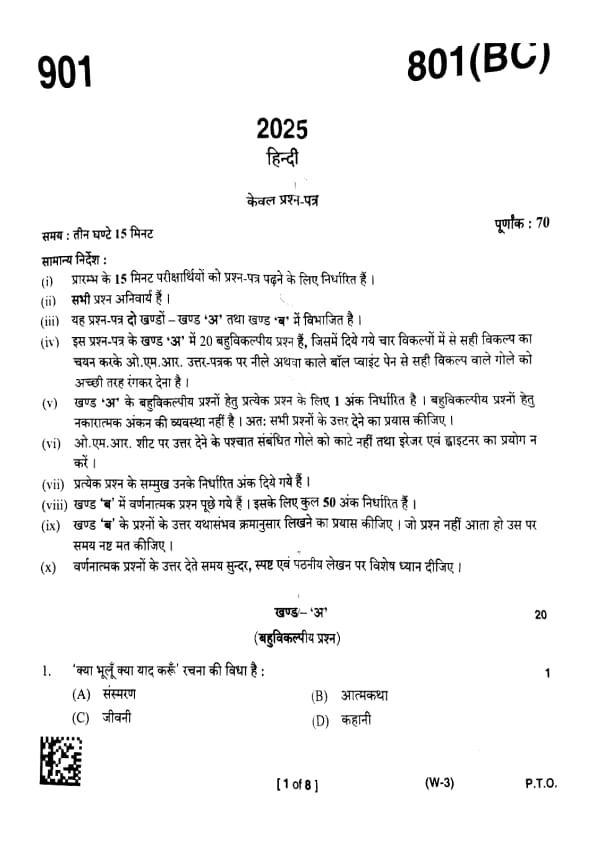 UP Board Class 10 Hindi┬аQuestion Paper 2025┬аPDF┬а(Code 801┬аBC) with Answer Key and Solutions PDF is available for download here. UP Board Class 10┬аexams were┬аconducted between February 24th┬аto March 12th┬а2025.┬аThe total marks for the theory paper were 70. Students reported the paper to be easy to moderate.