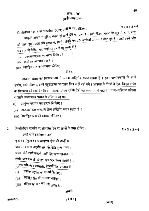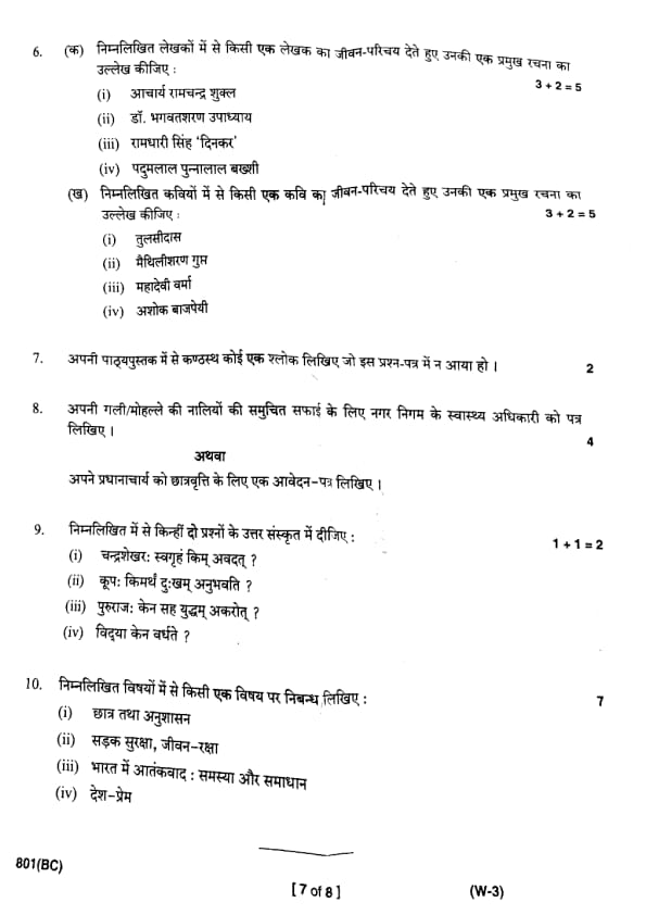| UP Board Class 10 Hindi (801 BC) Question Paper with Answer Key | Check Solutions |