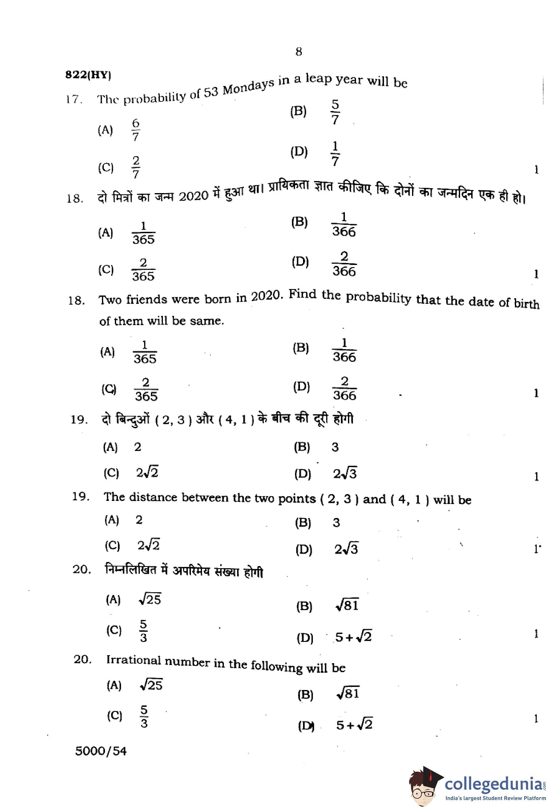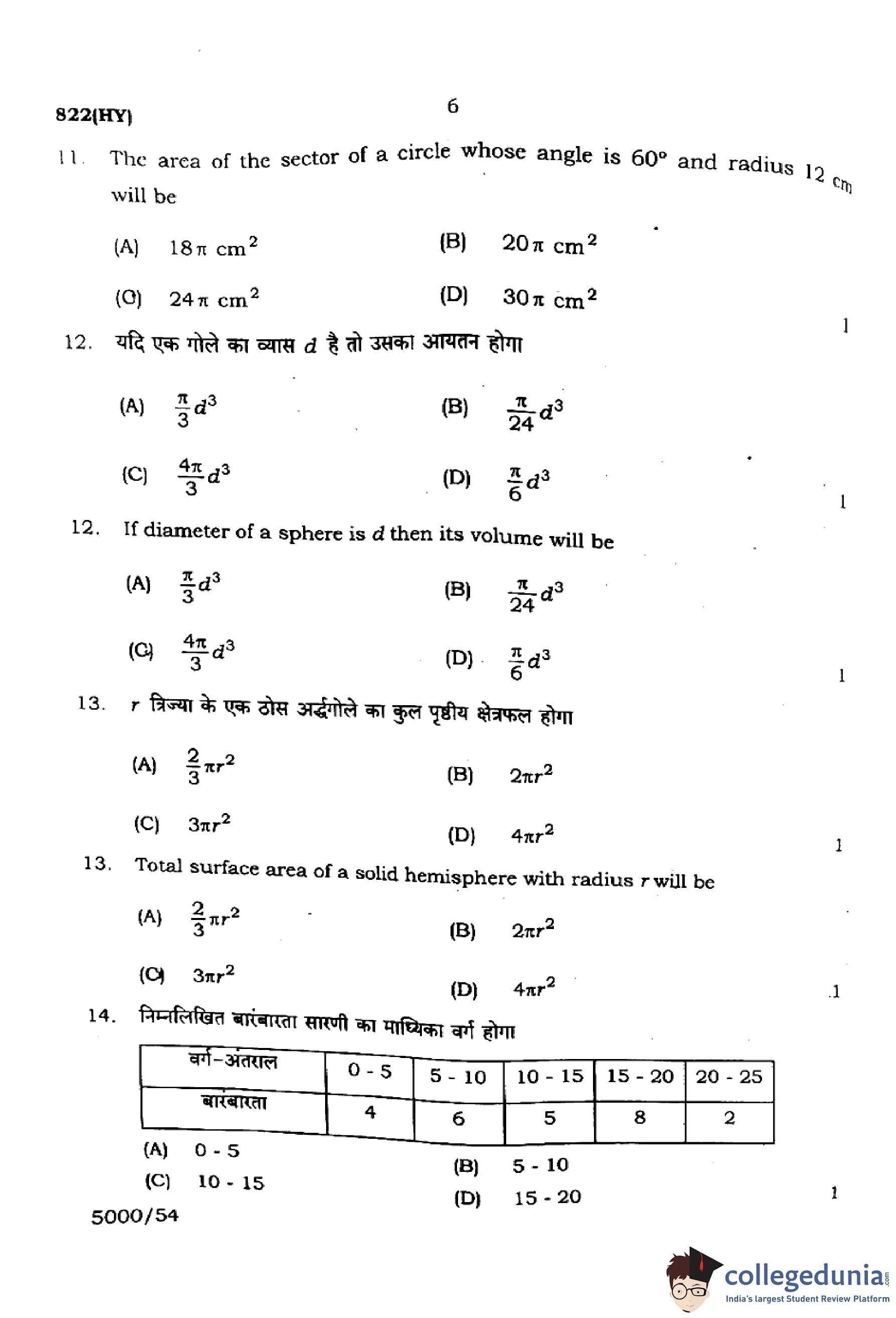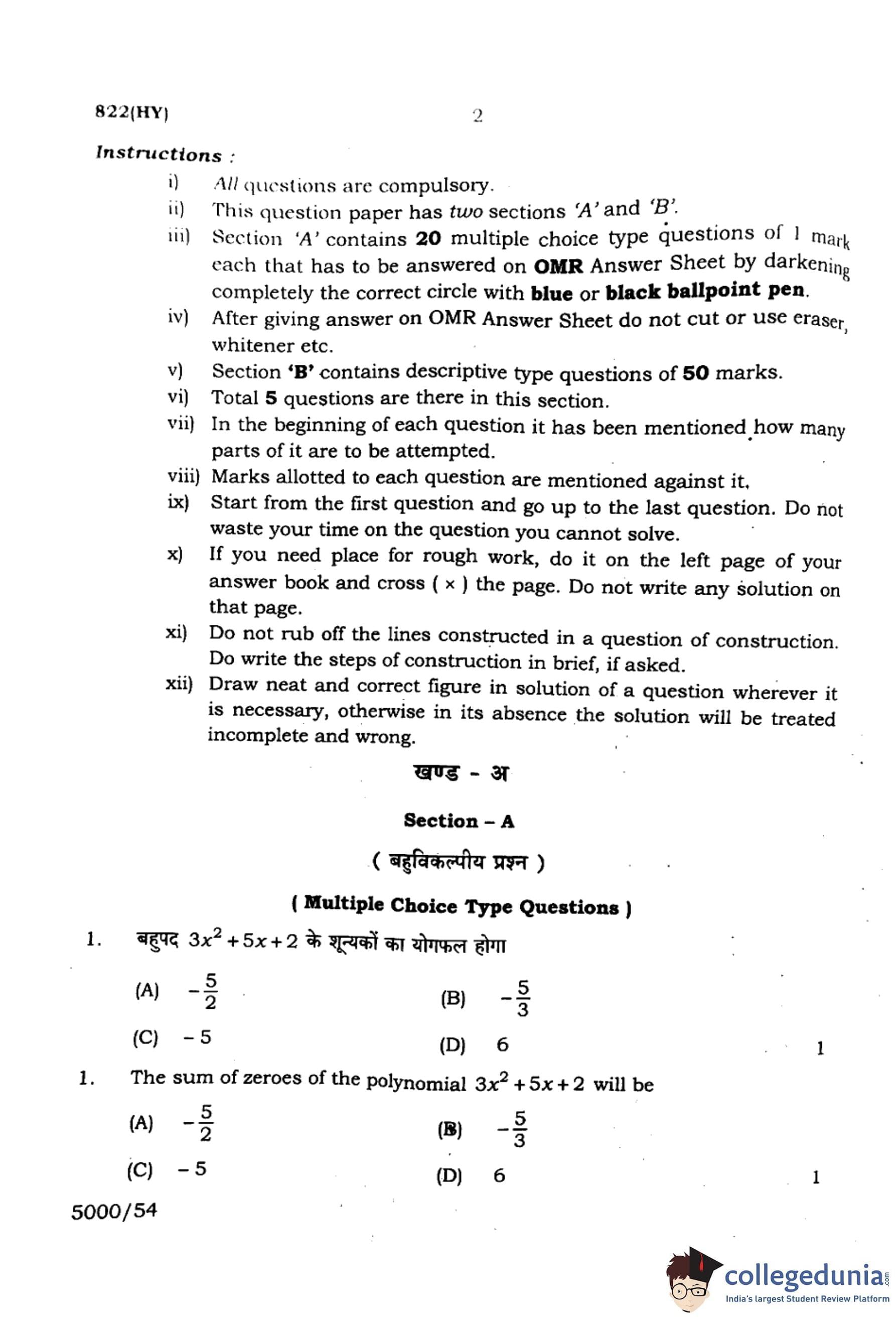 | UP Board Class 10 Mathematics (822 HY) 2024 Question Paper with Answer Key | Check Solutions |