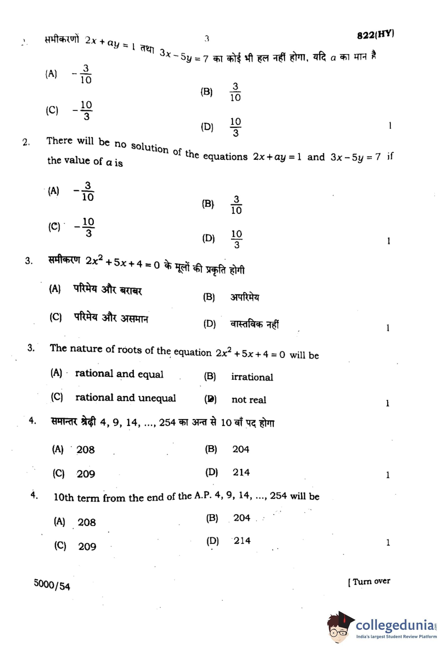 However, depending on the indexing, for 10th term from the end, \(T_{n-k+1}\) can also be used: \[ T_{n-k+1} = a + (n - k)d = 4 + (51 - 10) \times 5 = 4 + 205 = 209 \]