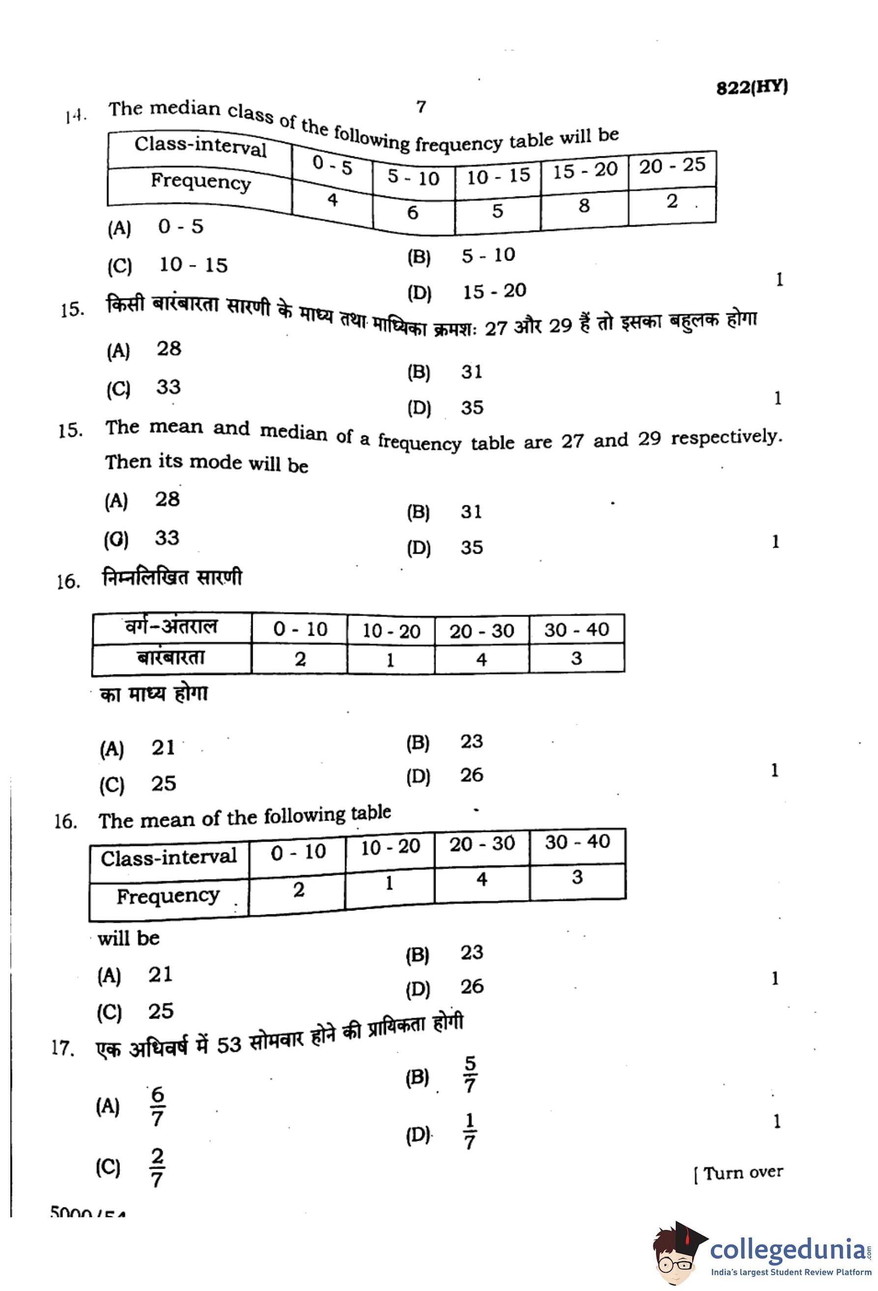 Hence, the mode of the distribution is \(\boxed{65}\). Quick Tip: In frequency distributions, mode lies near the class with the highest frequency. Use the formula carefully with correct \(f_0, f_1, f_2\).