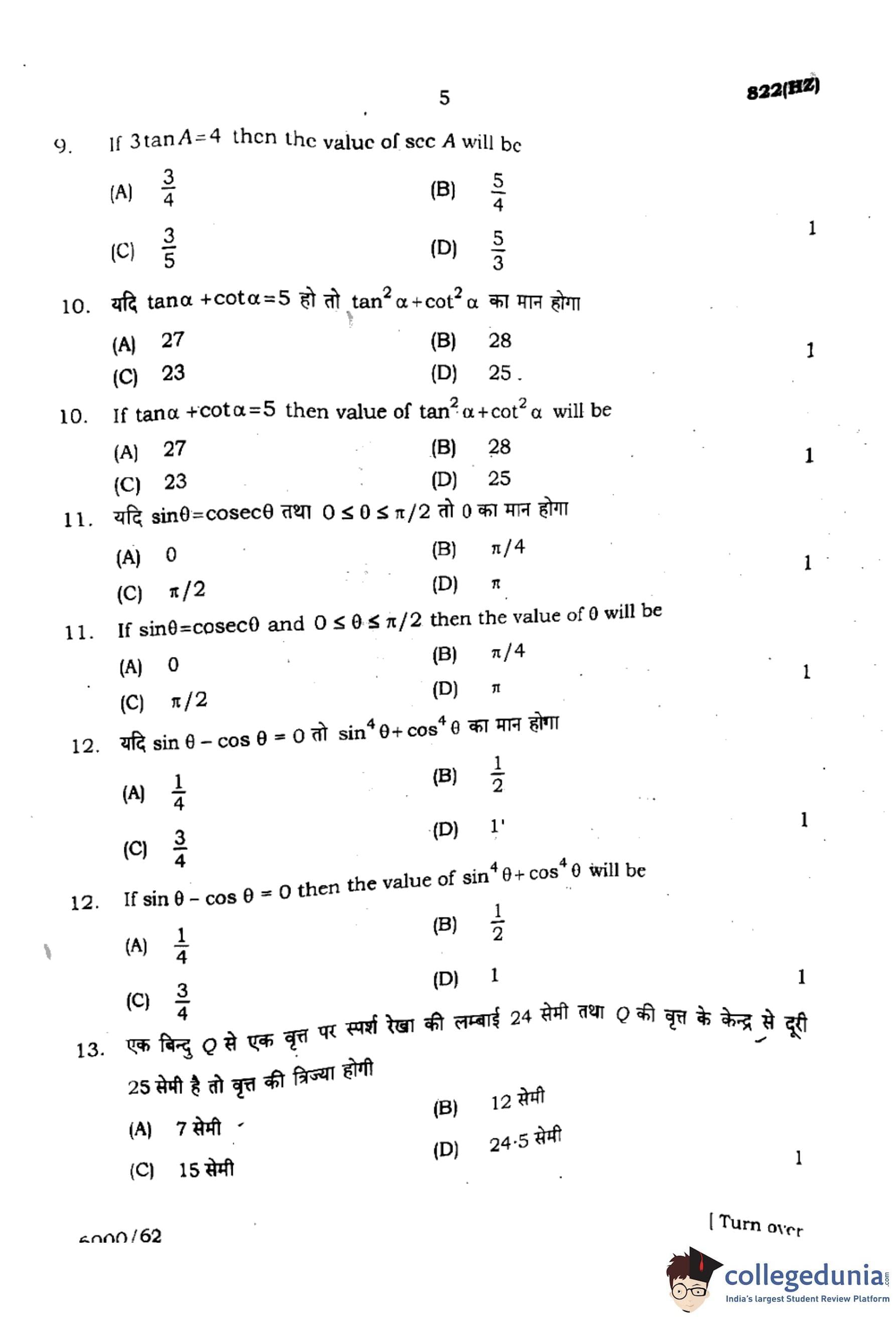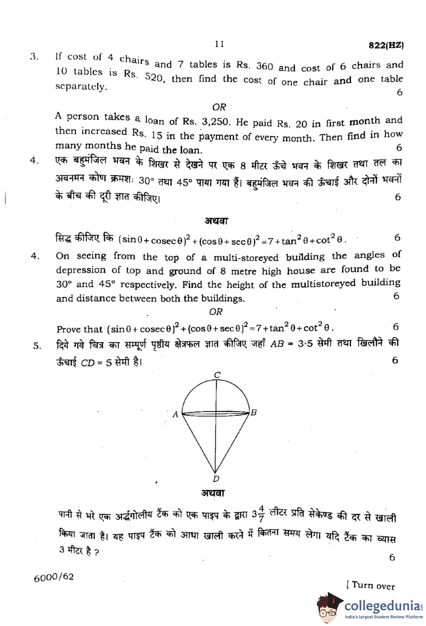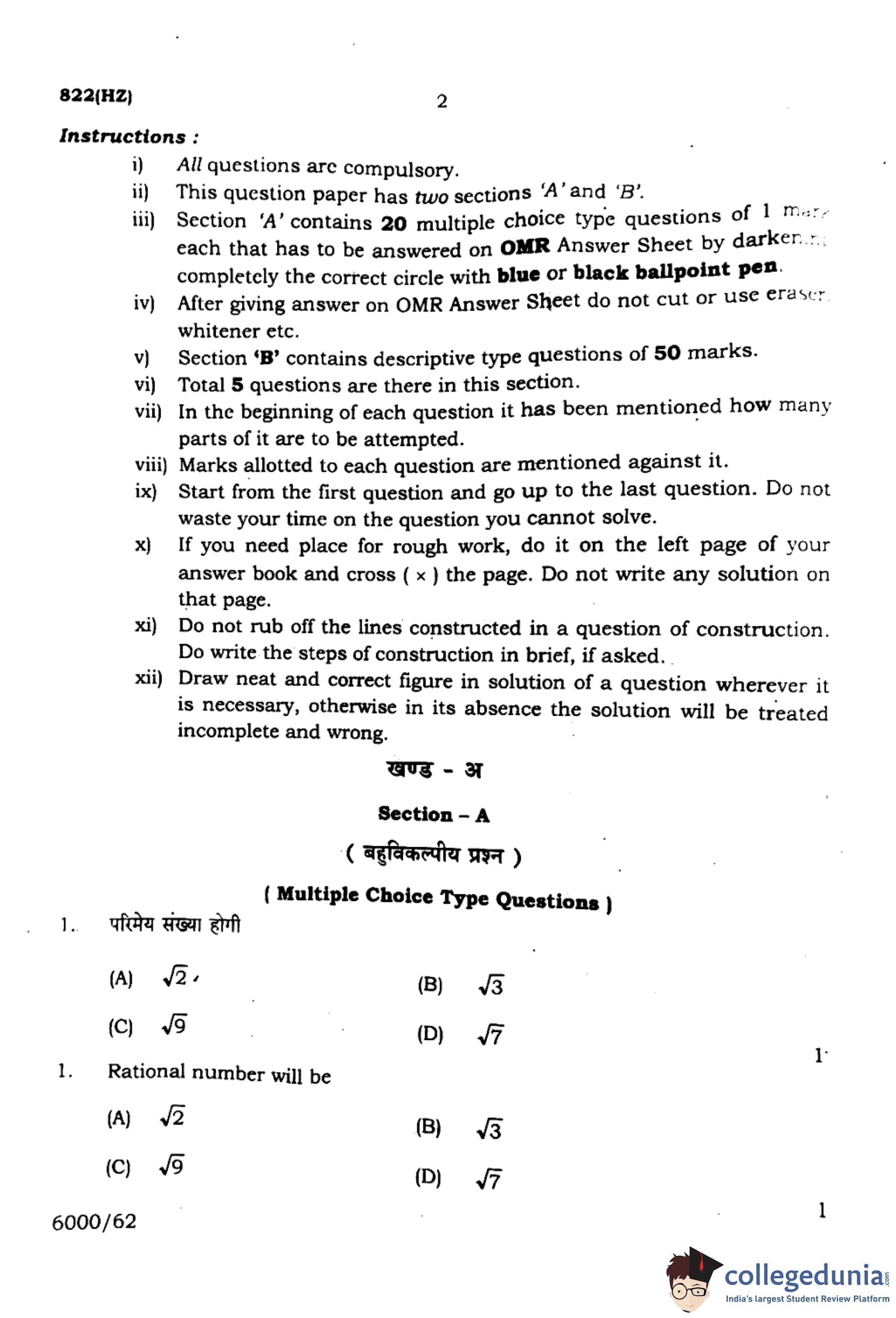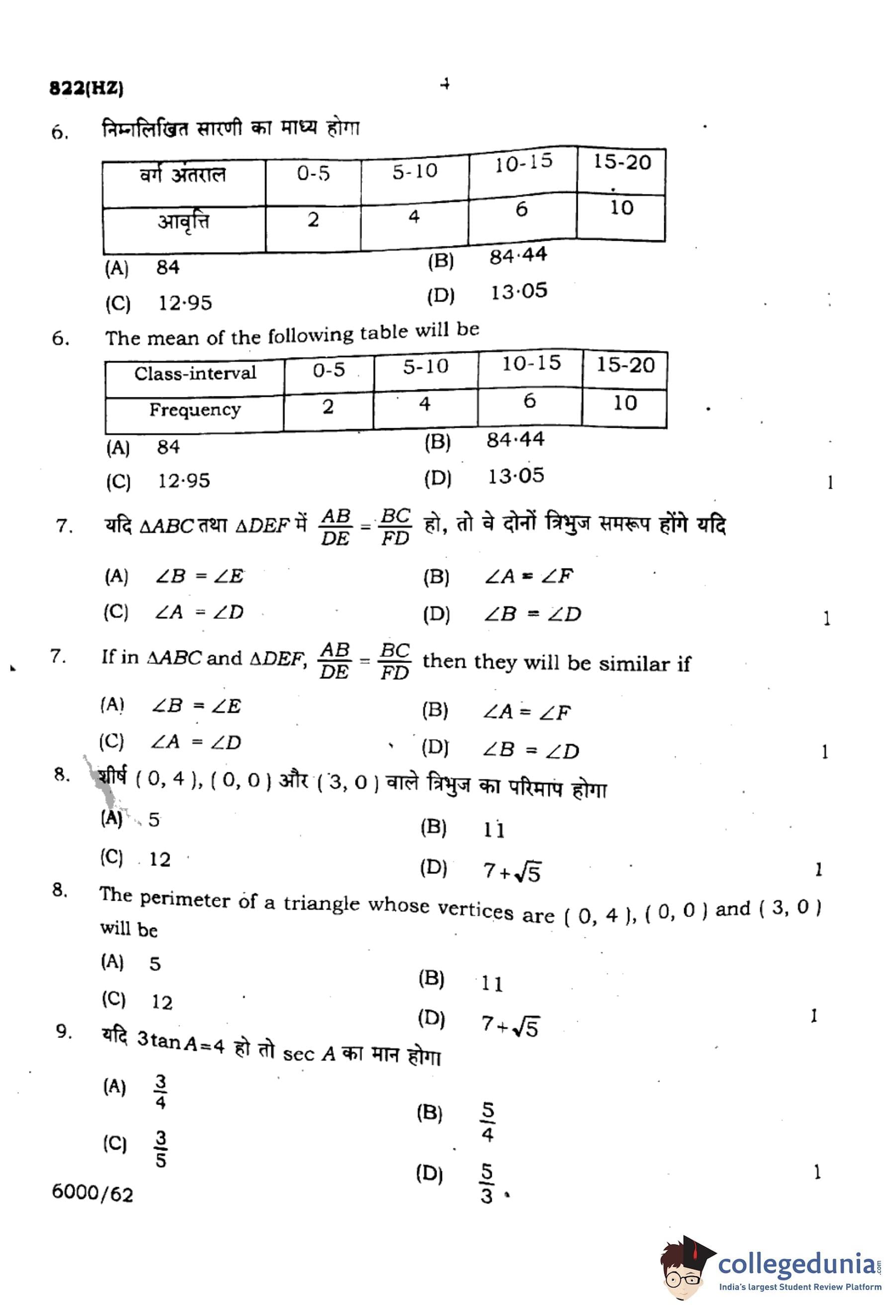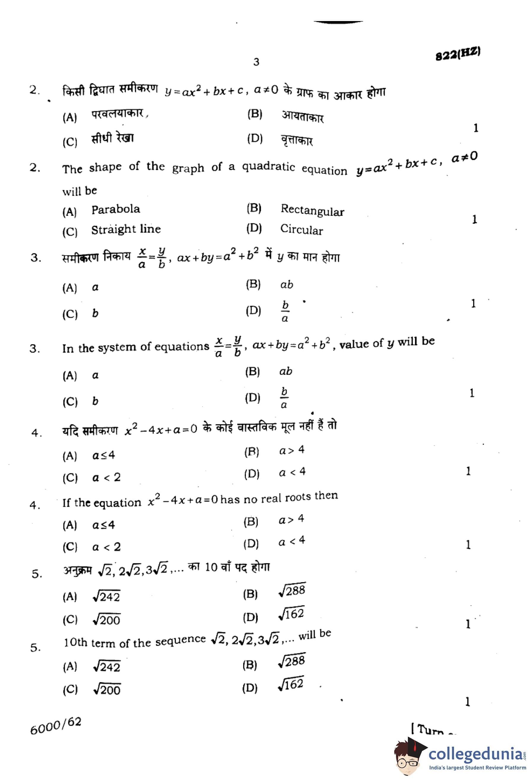 | UP Board Class 10 Mathematics (822 HZ) 2024 Question Paper with Answer Key | Check Solutions |