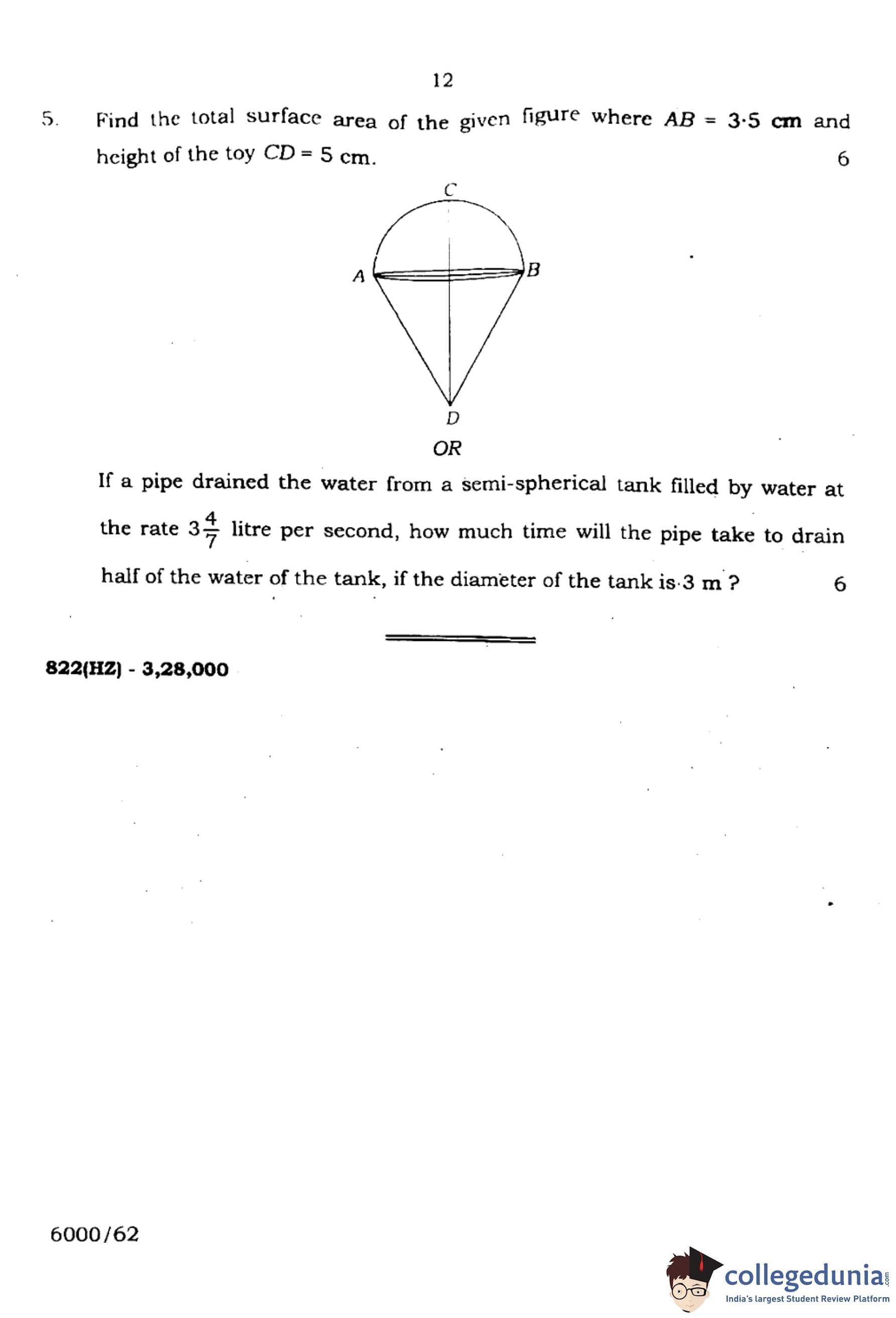 \[ \boxed{Time required = 16.5 \, minutes (approx.)} \] Quick Tip: Always convert all measurements into consistent units before calculation (metres to litres or cm³ to litres) and use the correct geometric formula for volume.