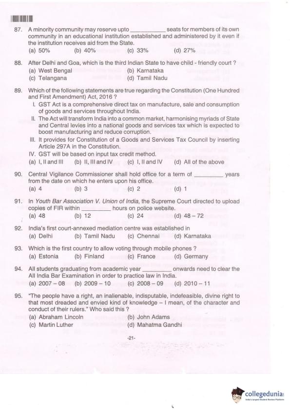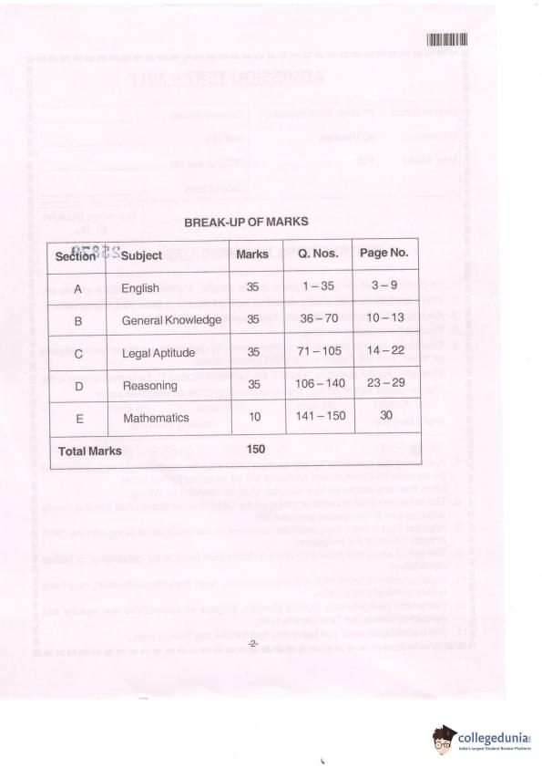 ILSAT 2017 Question paper with answer key pdf is available for download. The exam was successfully organized by ICFAI Law School, Hyderabad. The question paper comprised a total of 150 questions.