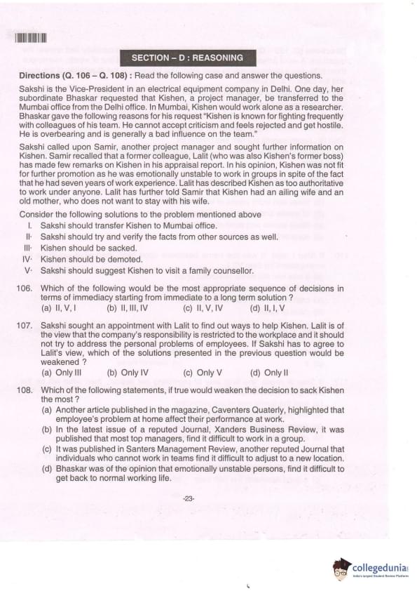 ILSAT 2017 Question Paper with Answer Key PDFs