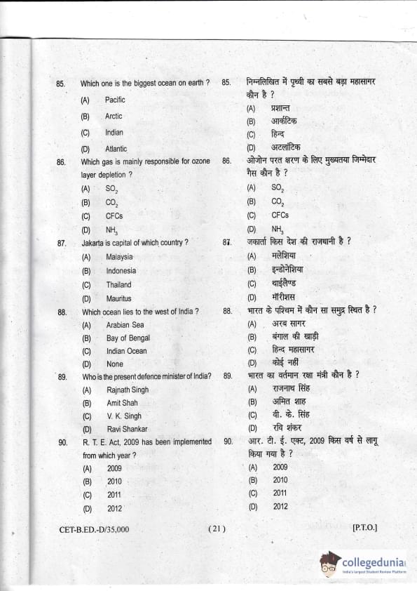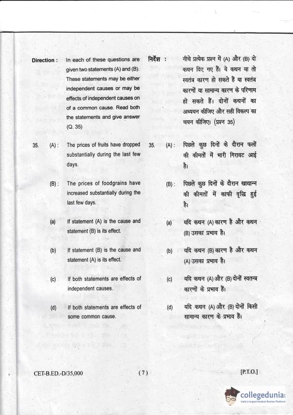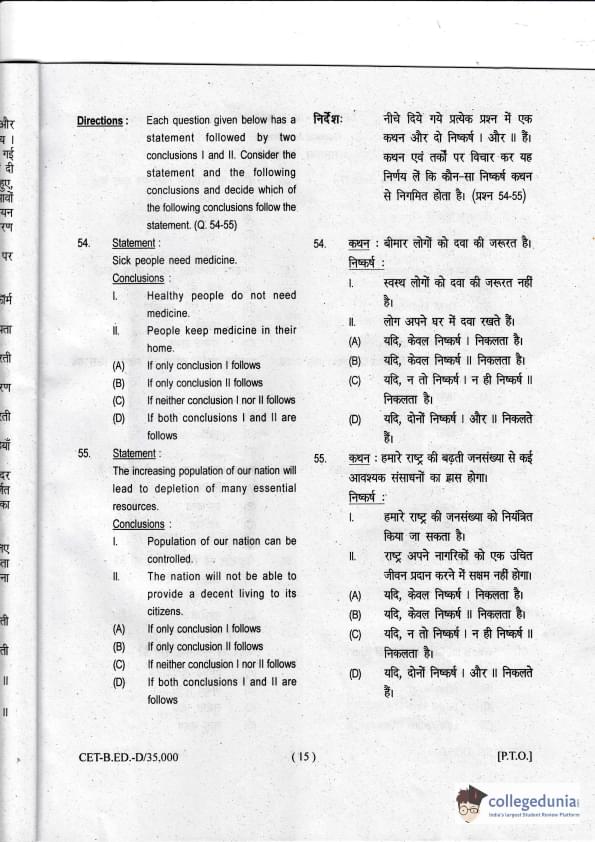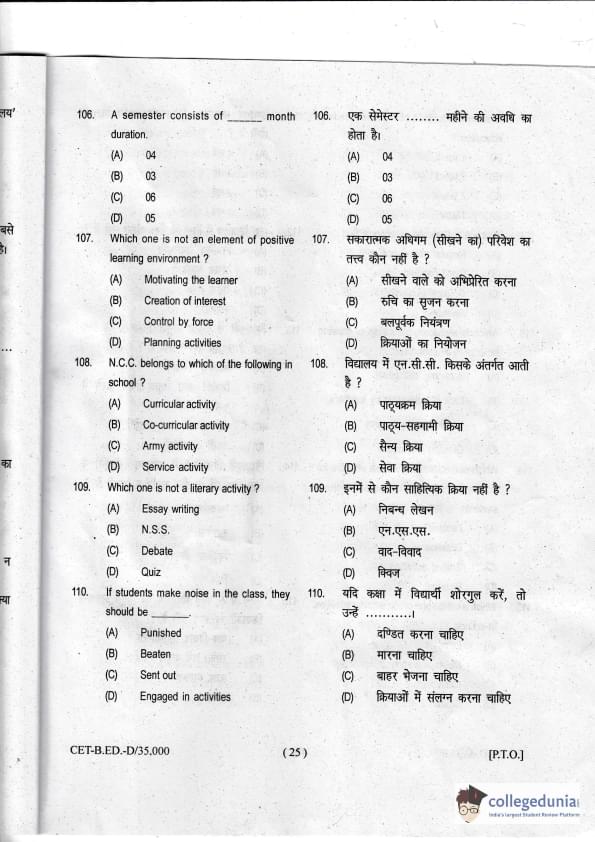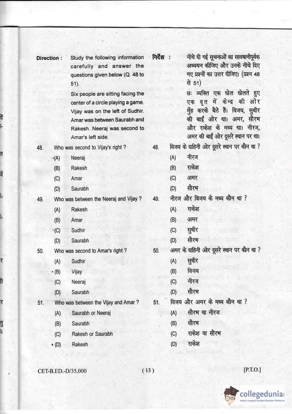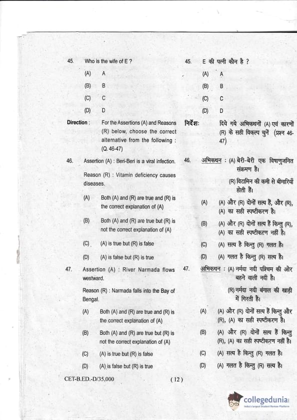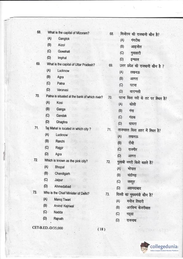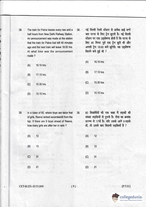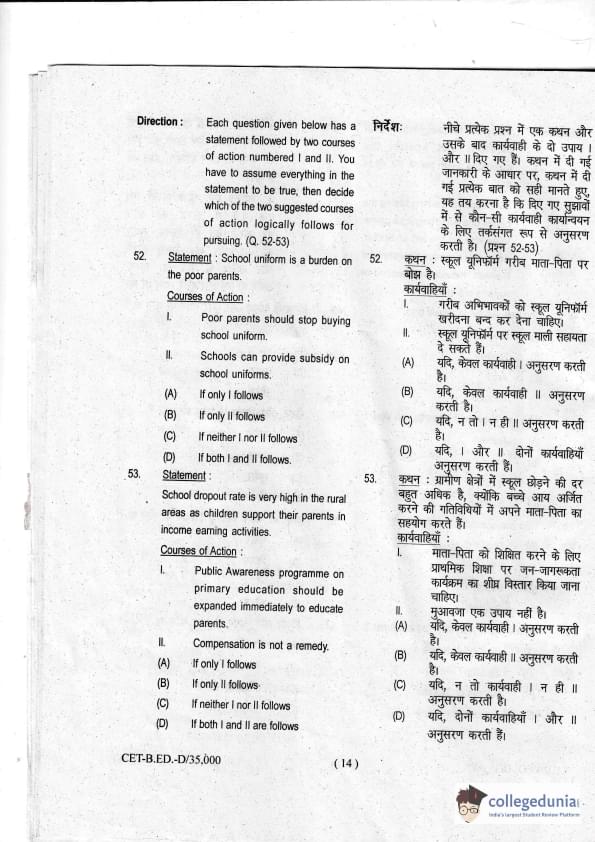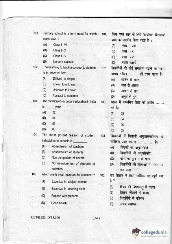 | Bihar BEd CET 2020 Set D Question Paper With Answer Key | Download PDF | Check Solutions |