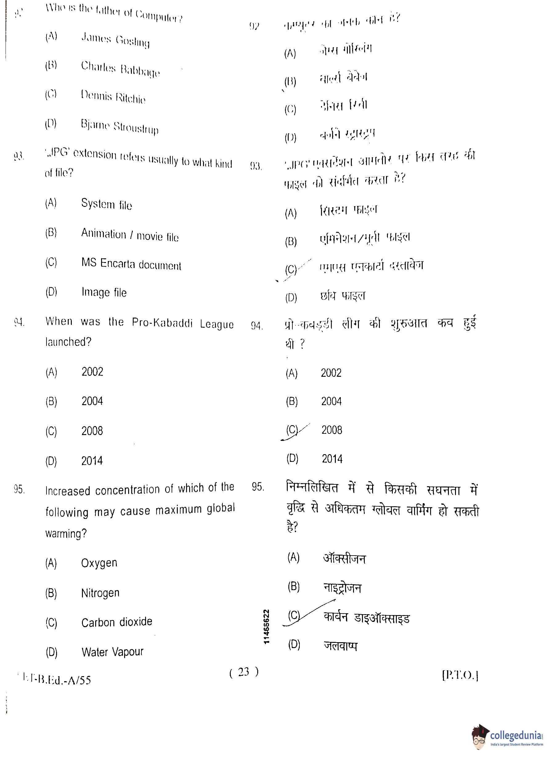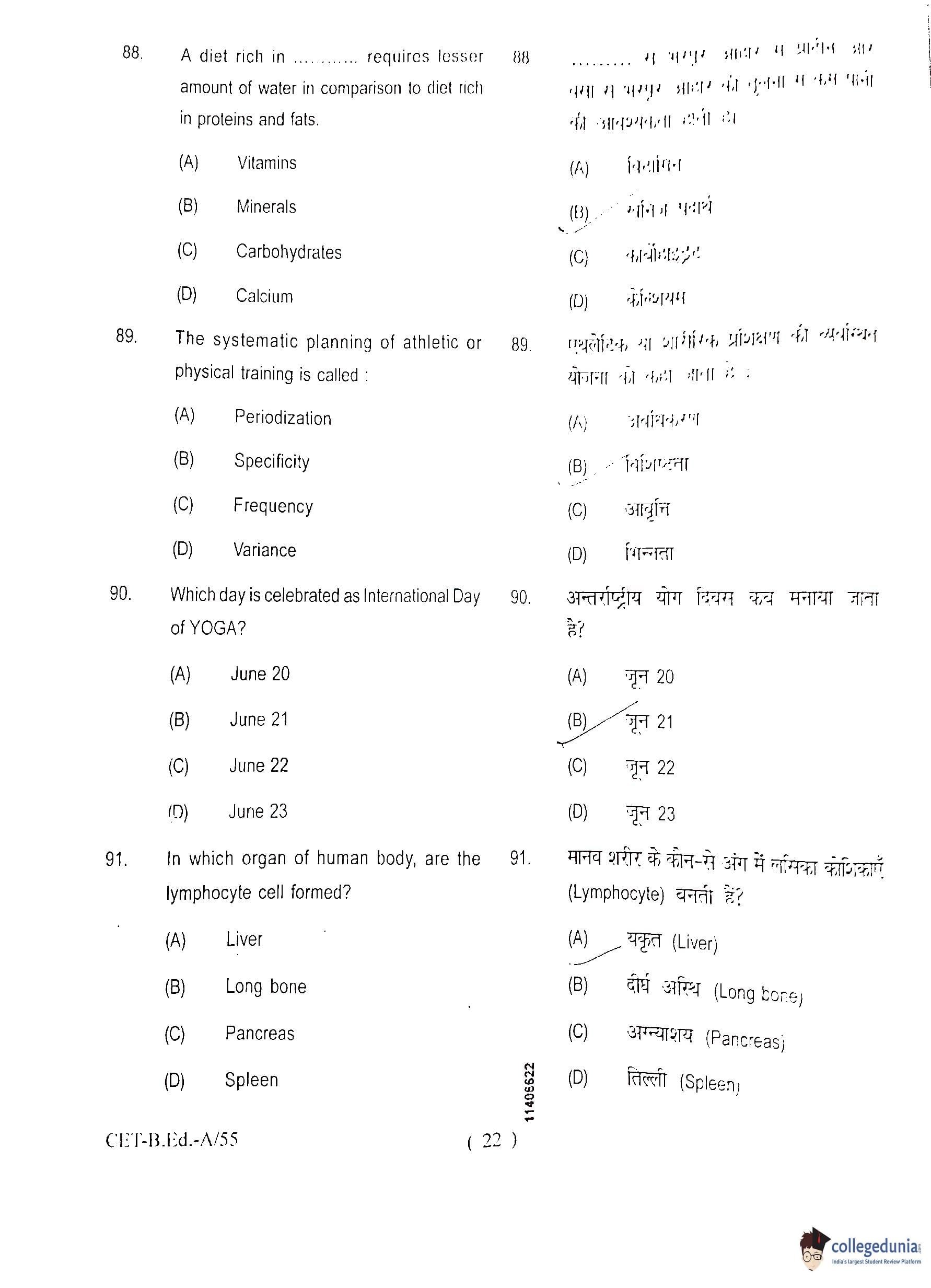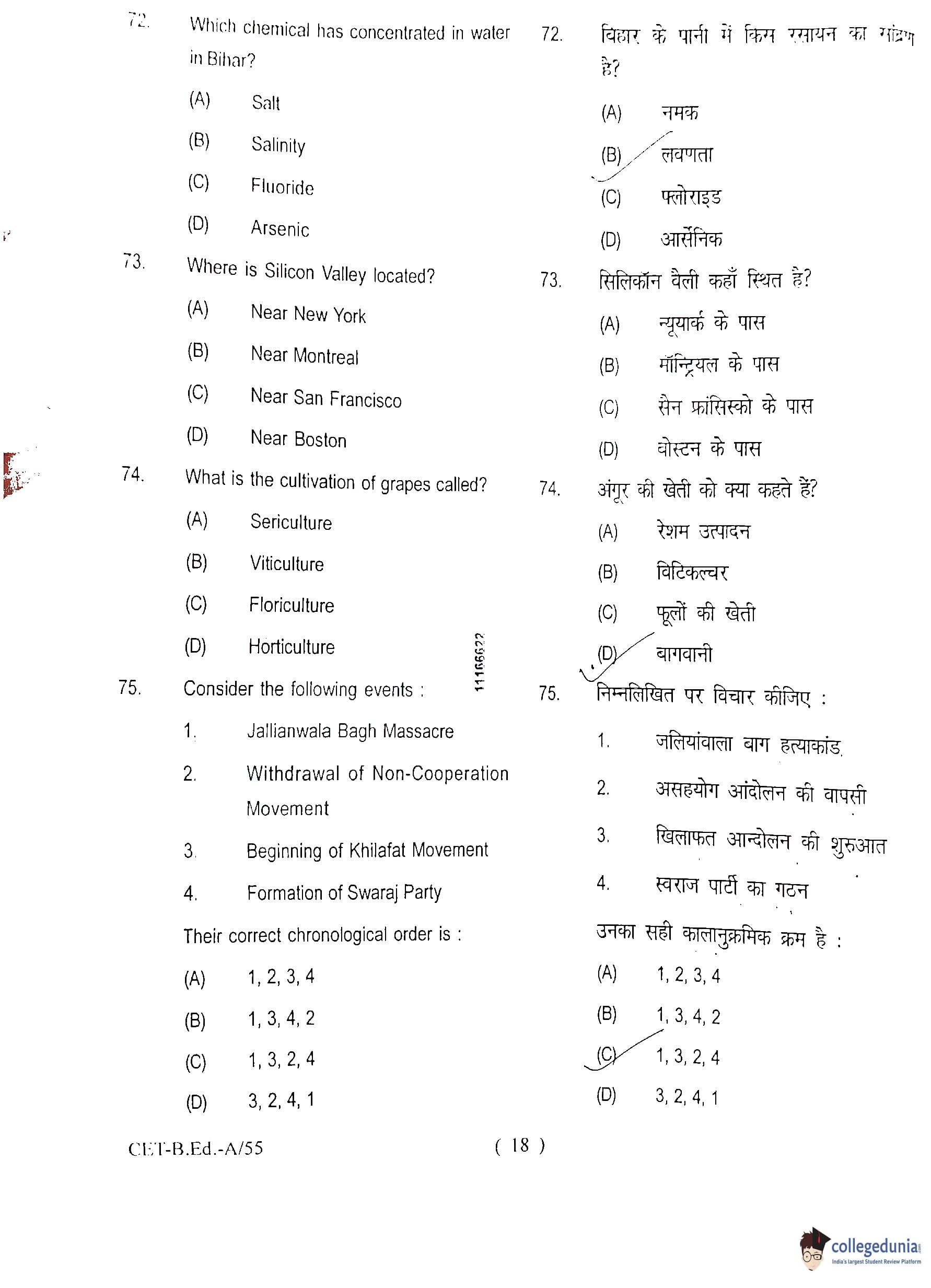 Bihar BEd CET 2022 Question Paper with Answer Key PDF