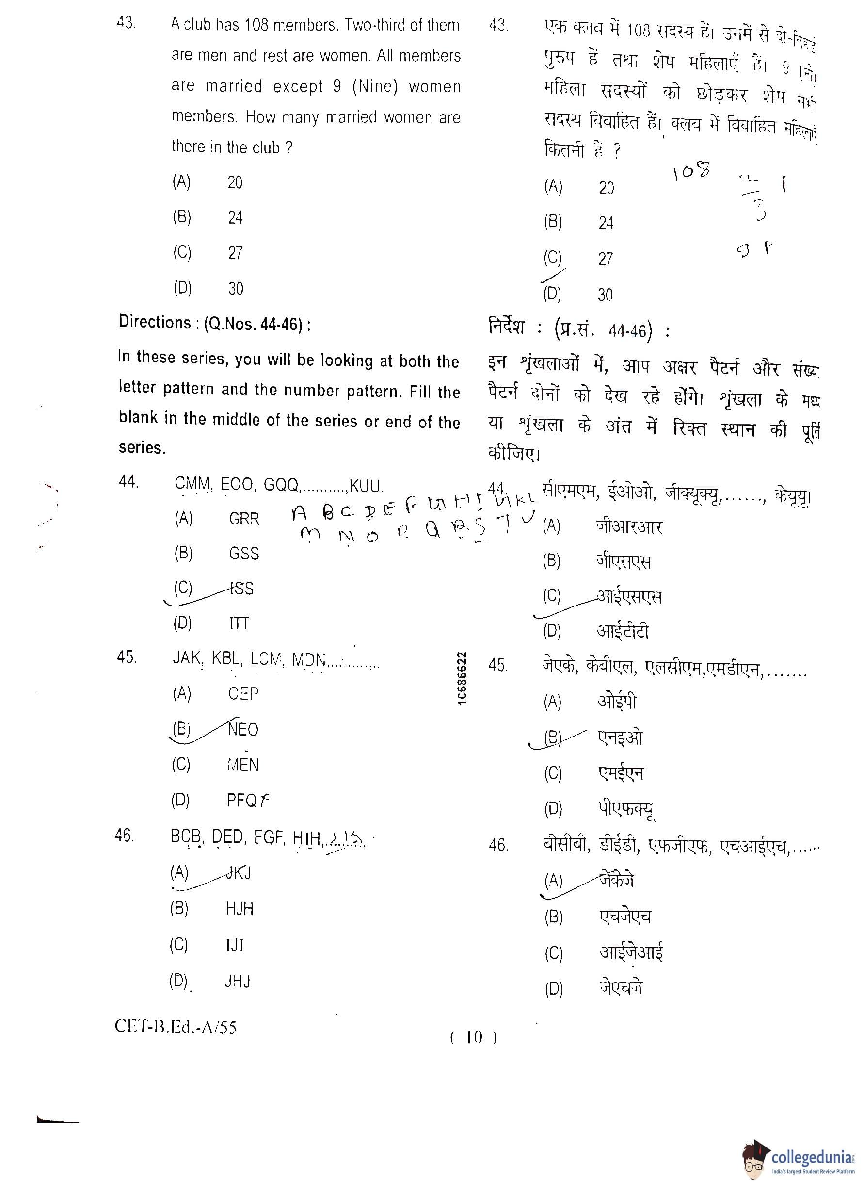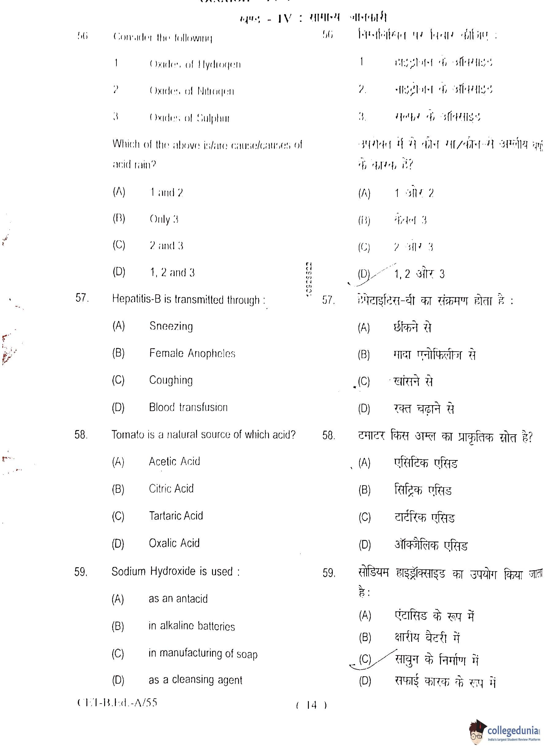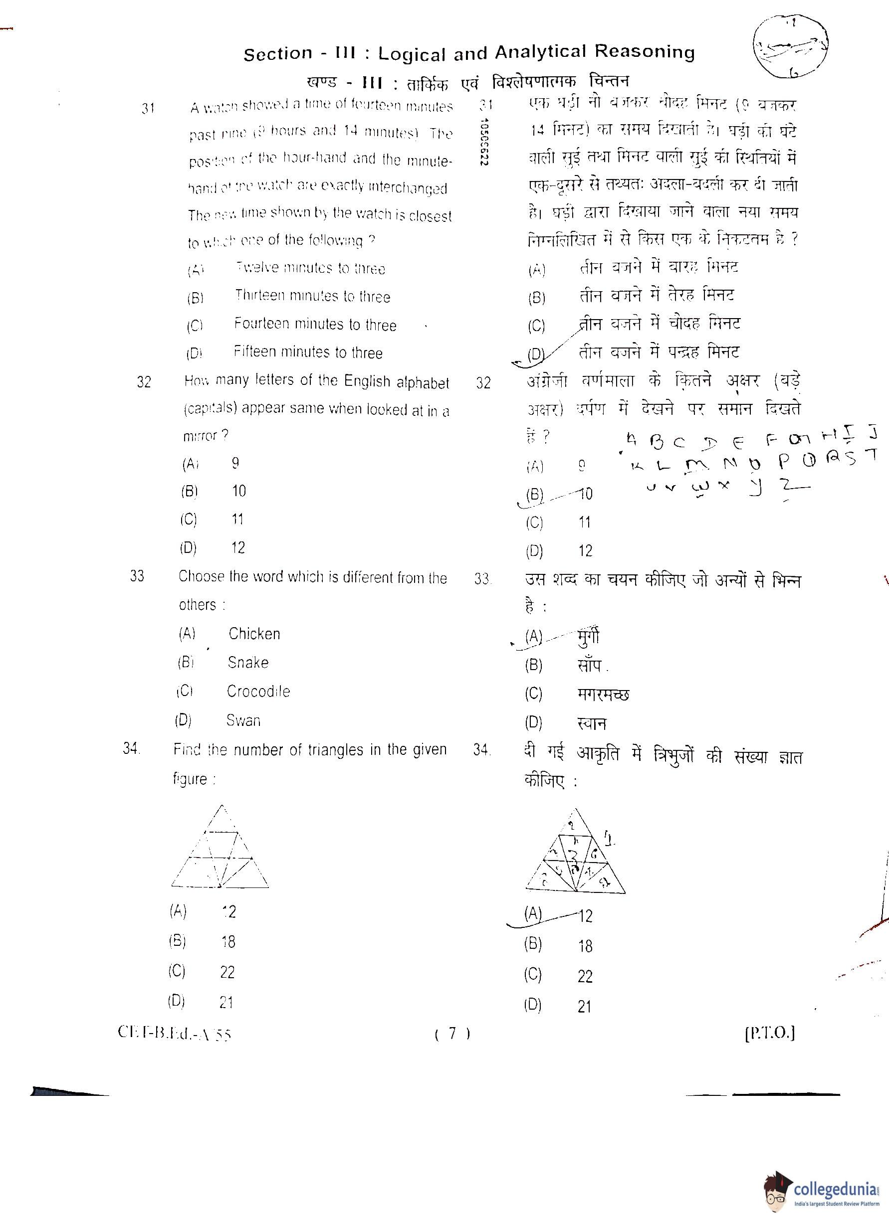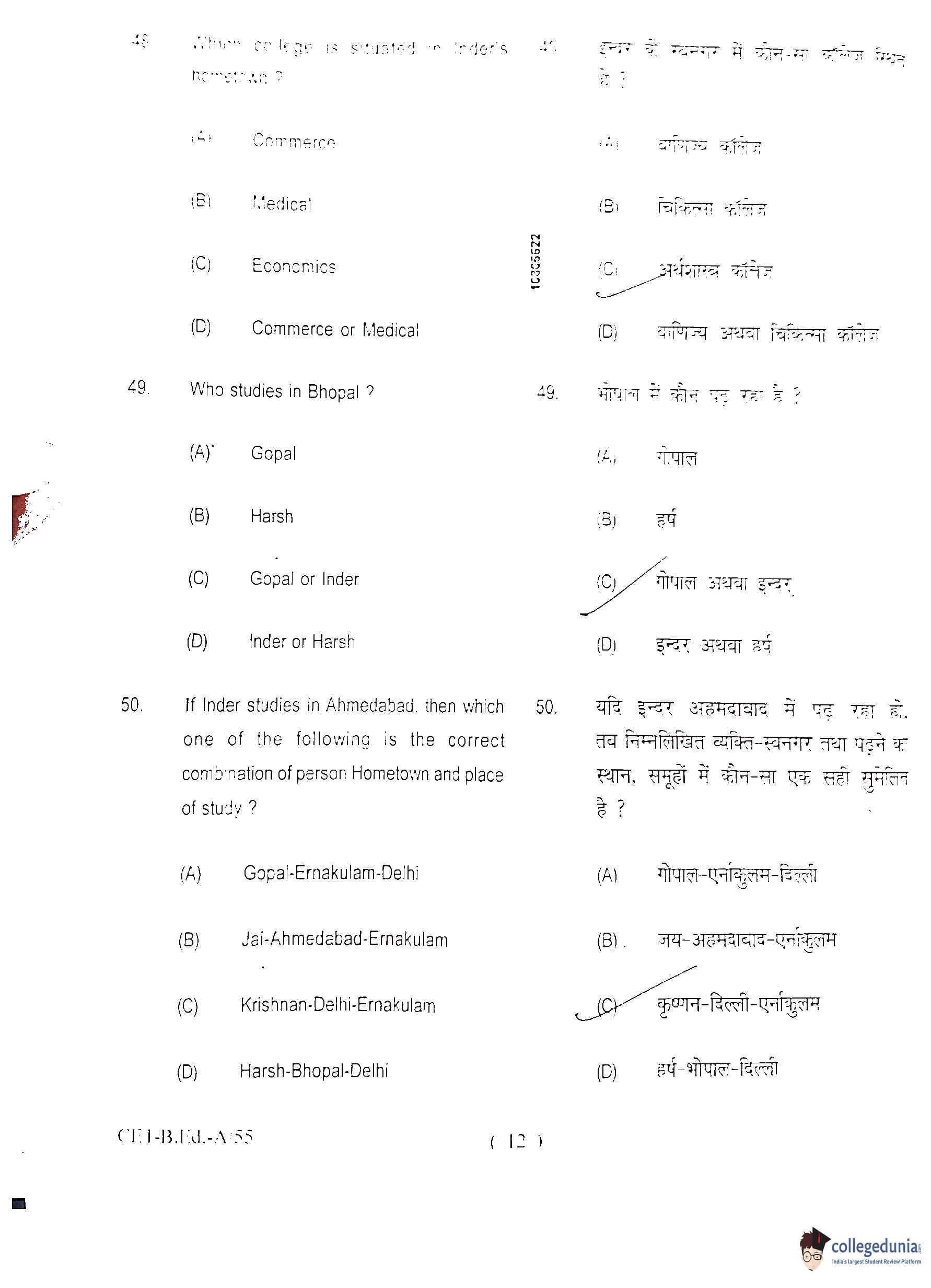 Bihar BEd CET 2022 Question Paper with Answer Key PDF