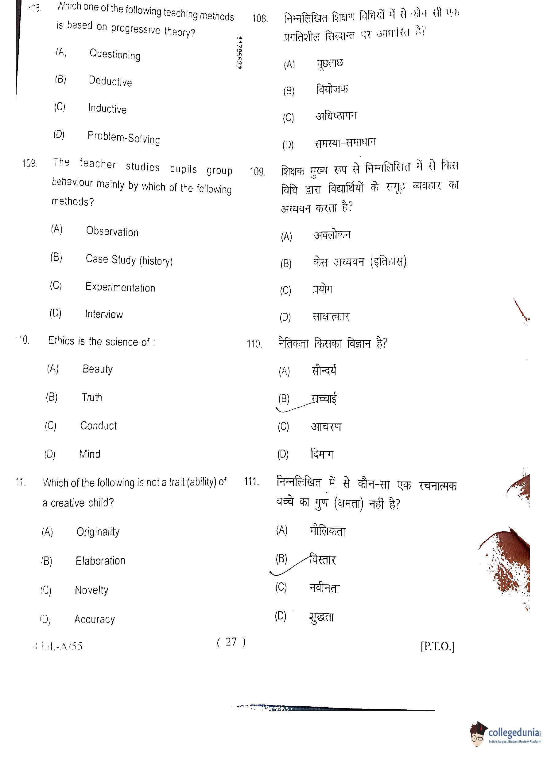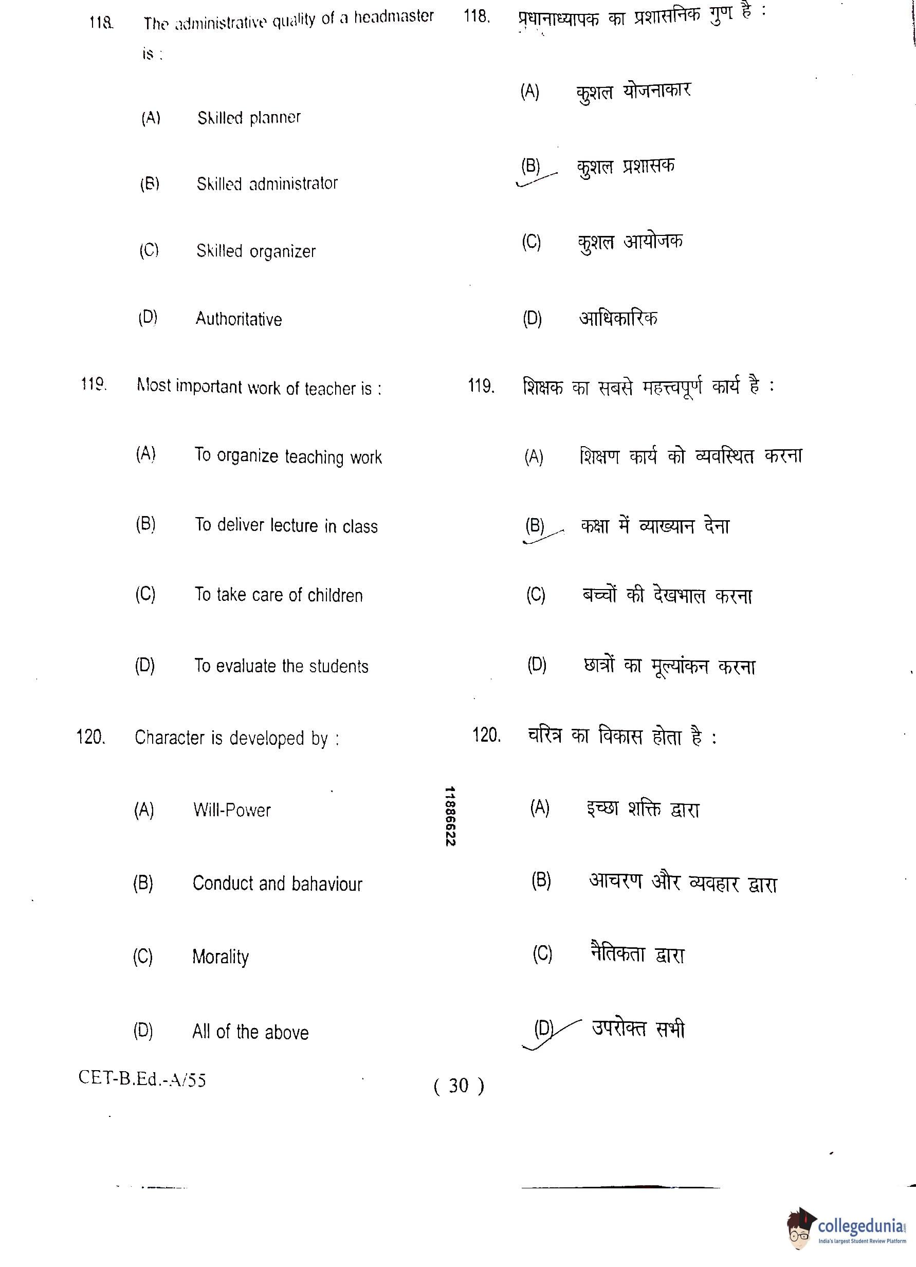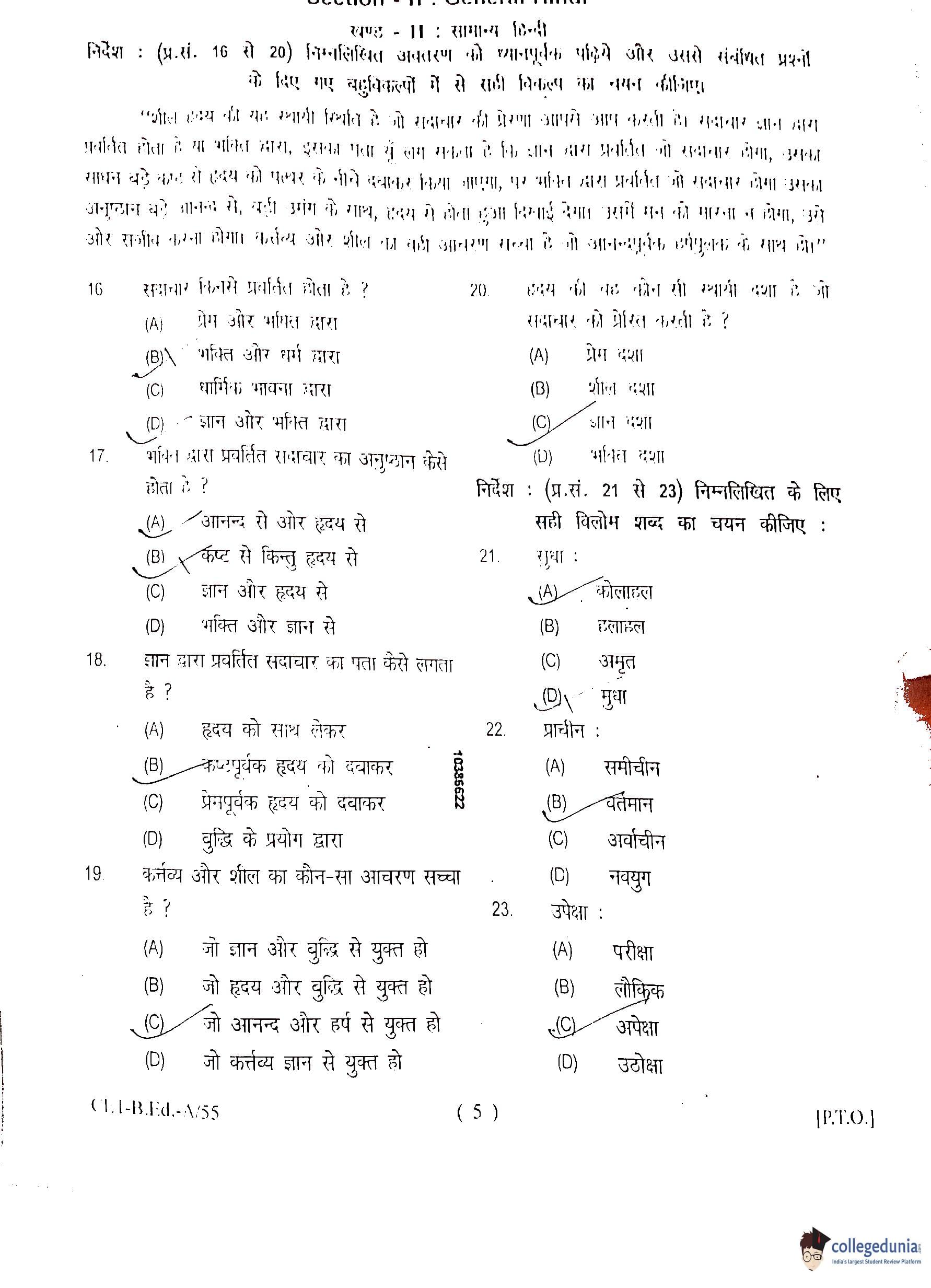 | Bihar B.Ed 2022 Question Paper with Answer Key PDF | Download PDF | Check Solution |