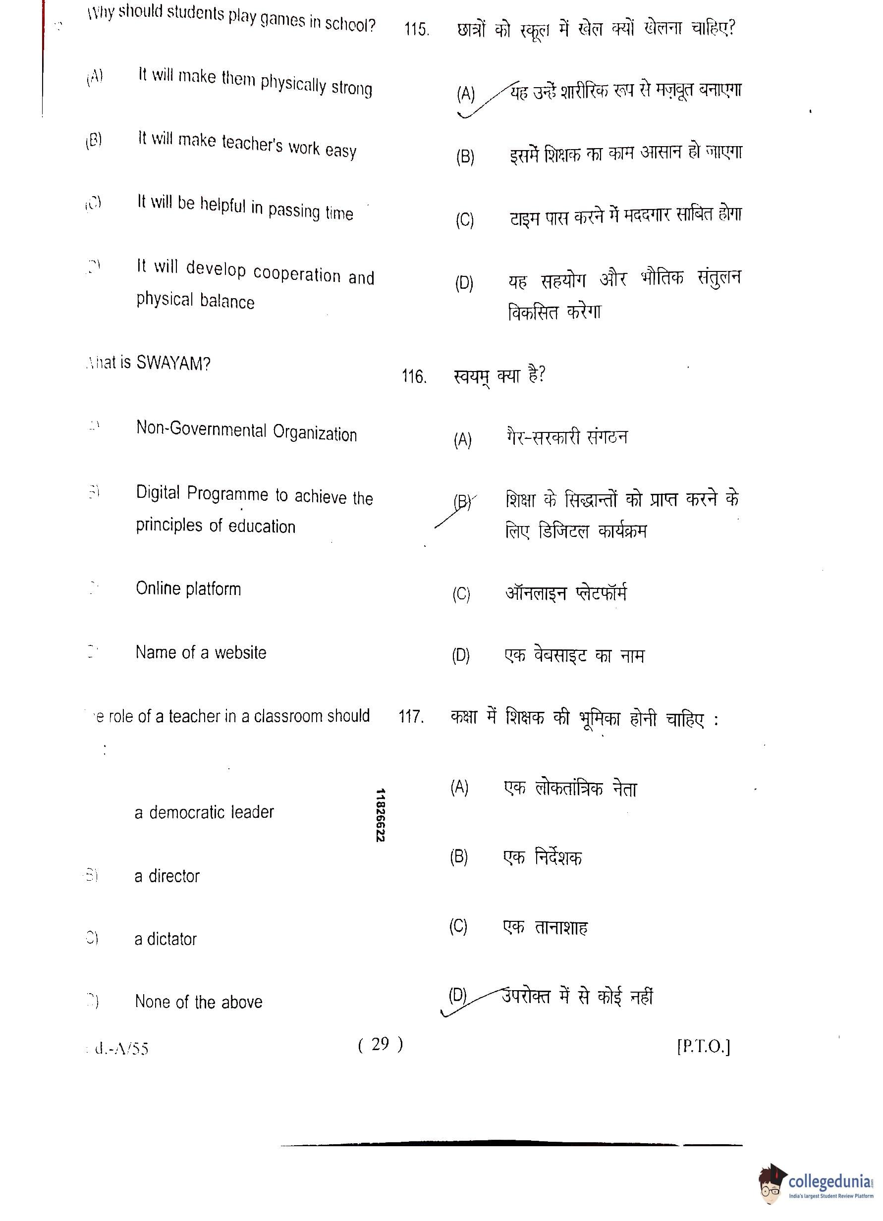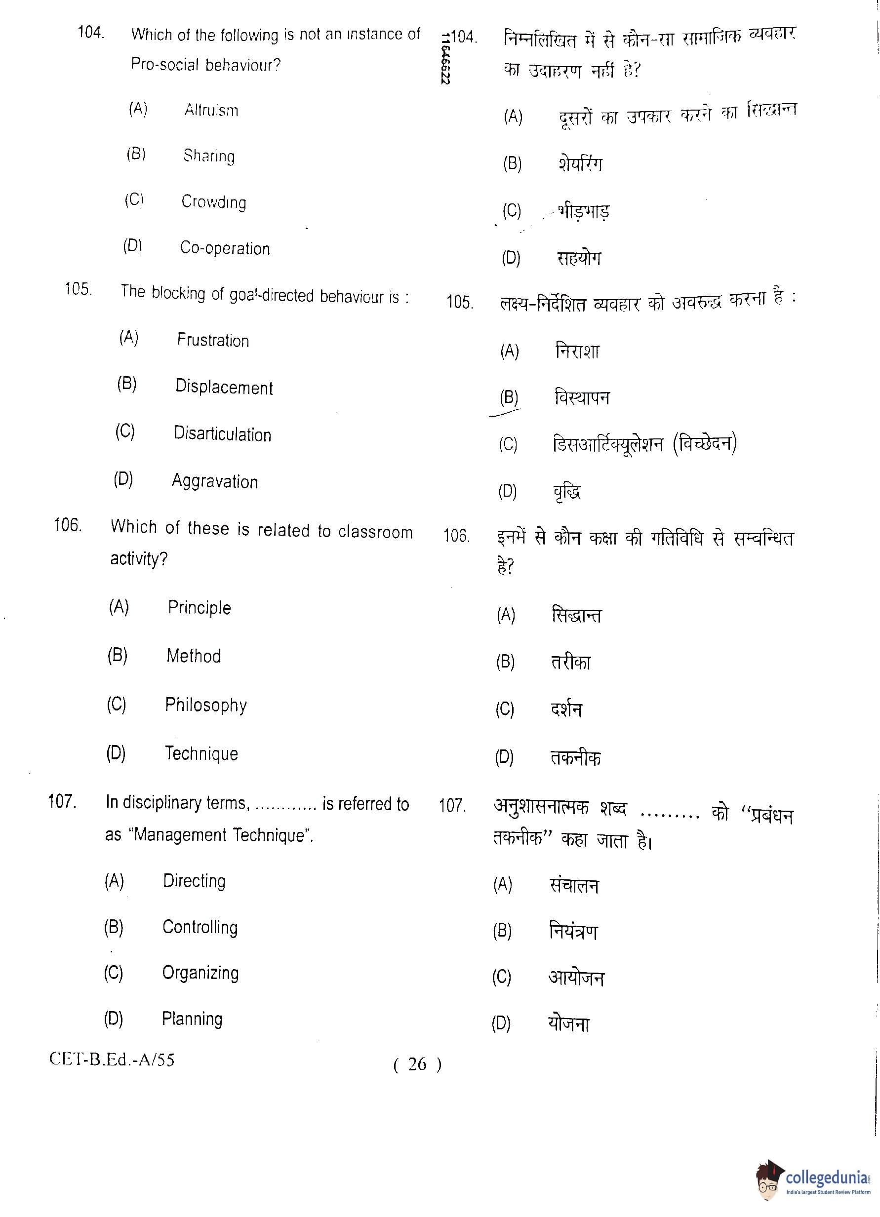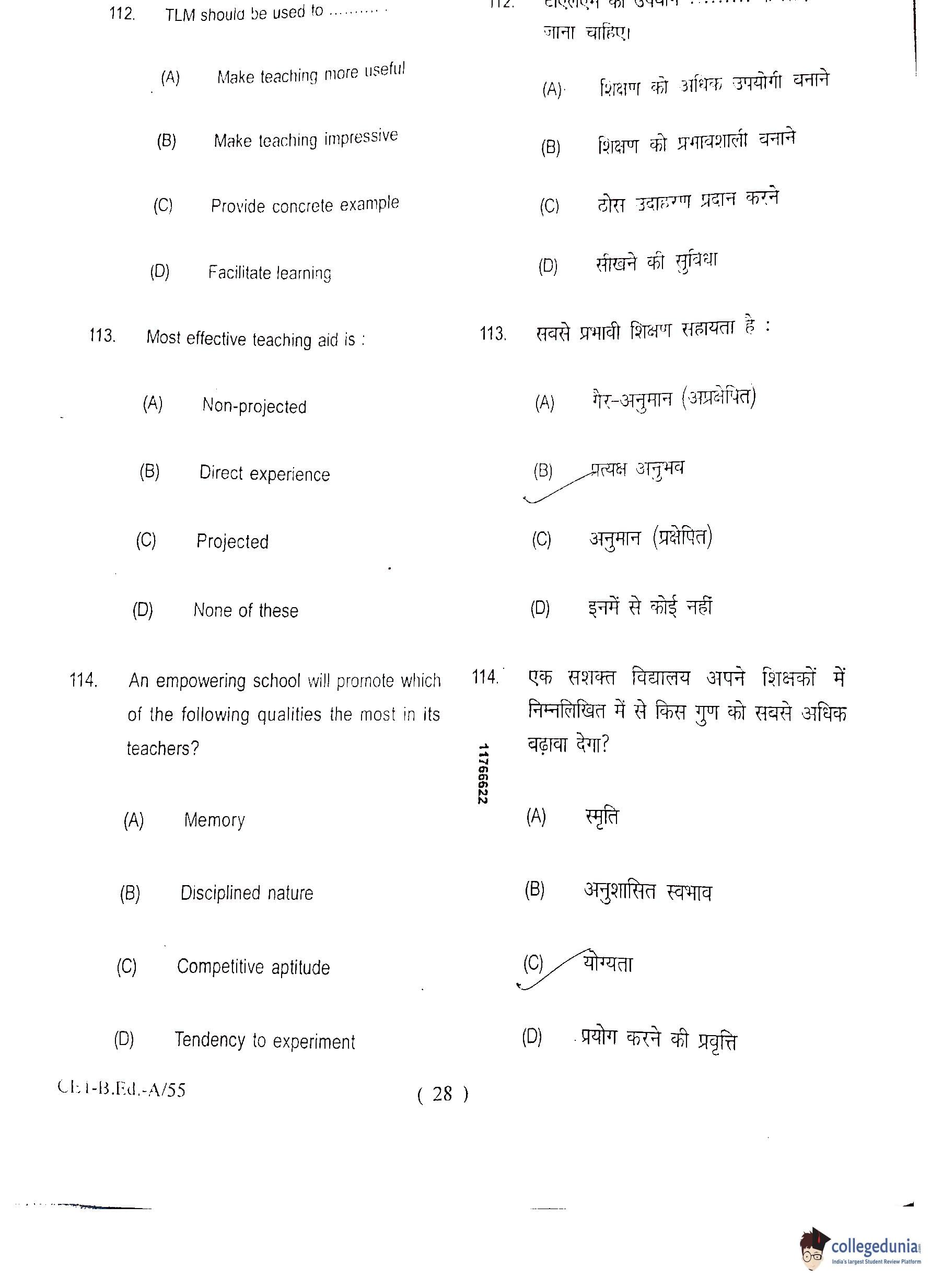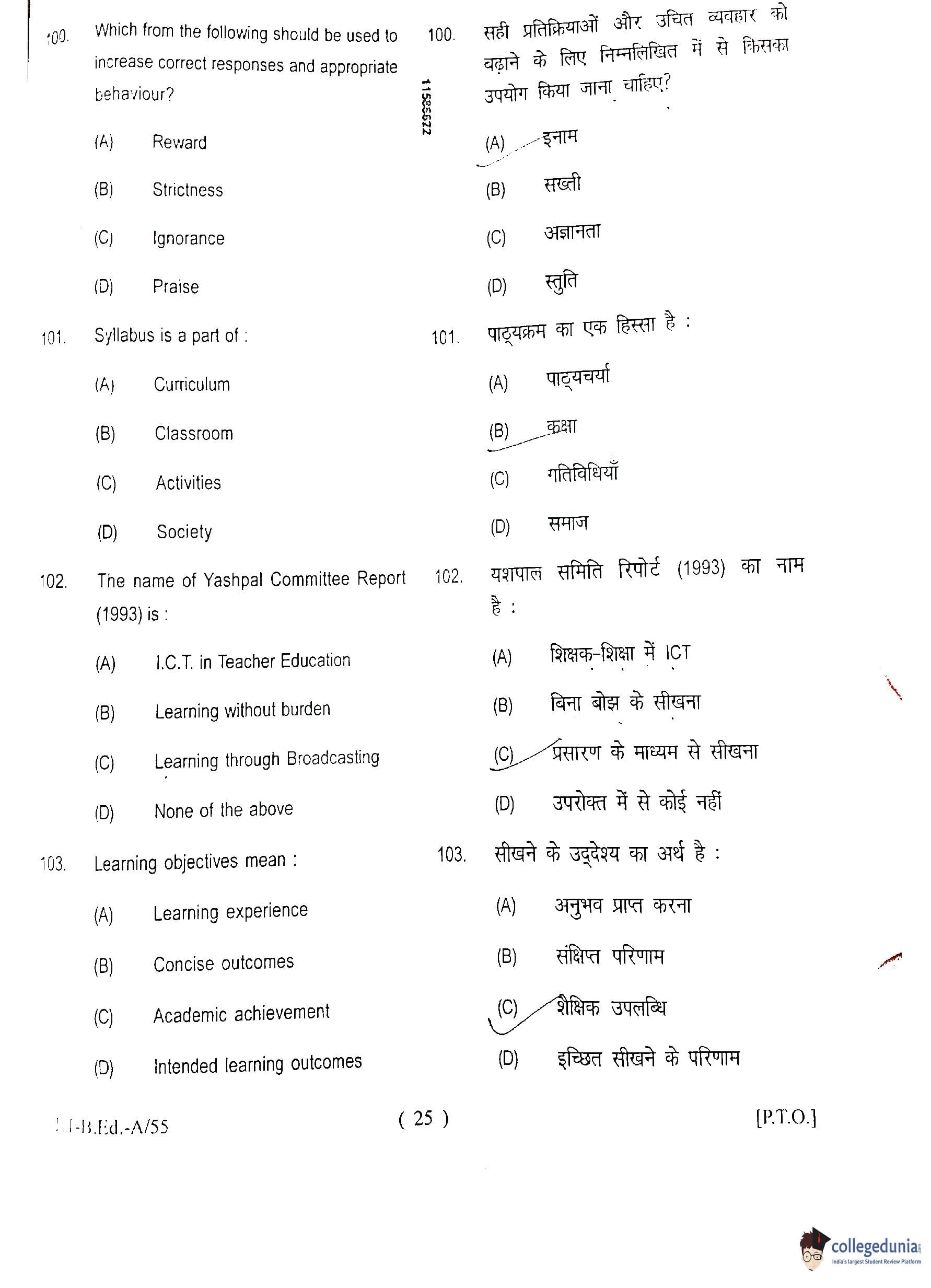 | Bihar B.Ed 2022 Question Paper with Answer Key PDF | Download PDF | Check Solution |