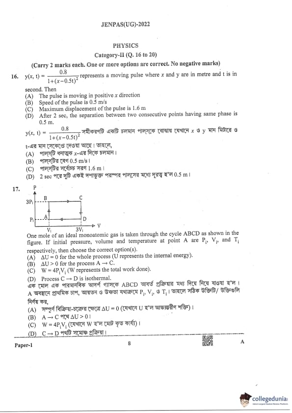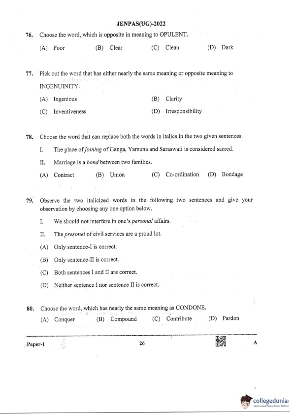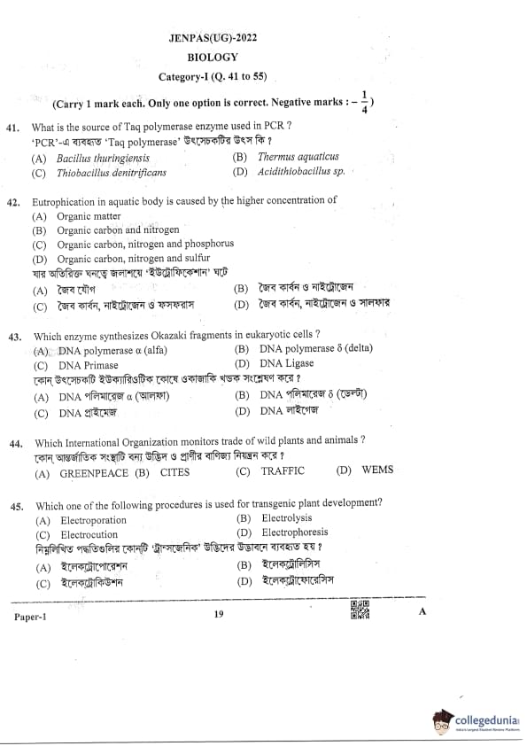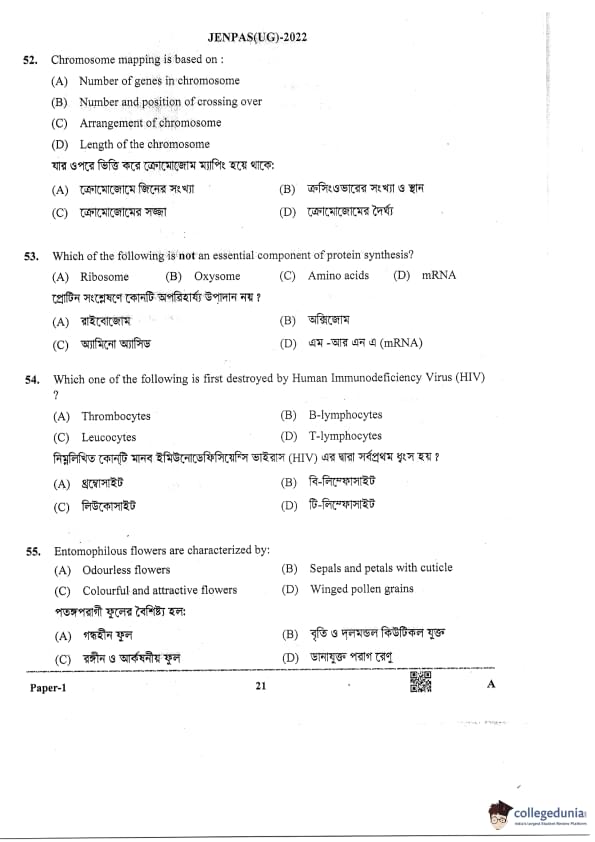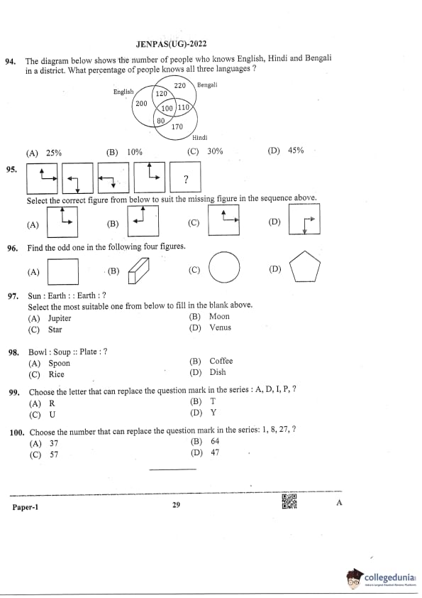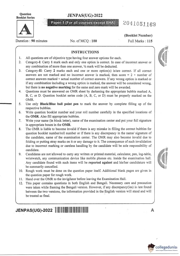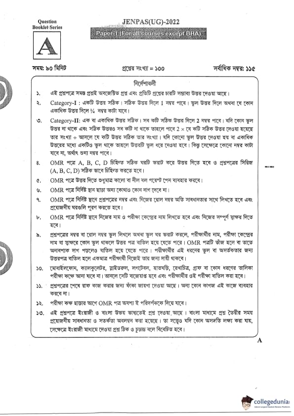 WBJEE JENPAS 2022 Question paper with answer key pdf is available for download. The exam was successfully organized by West Bengal Joint Entrance Examination Board (WBJEEB) on May 15, 2022. The question paper comprised a total of 100 questions.