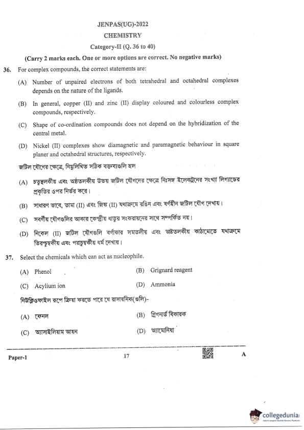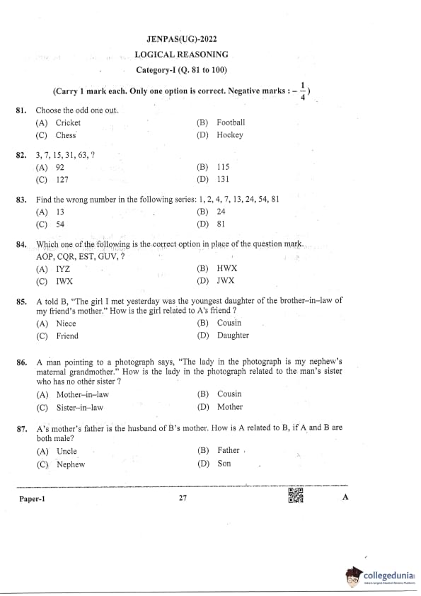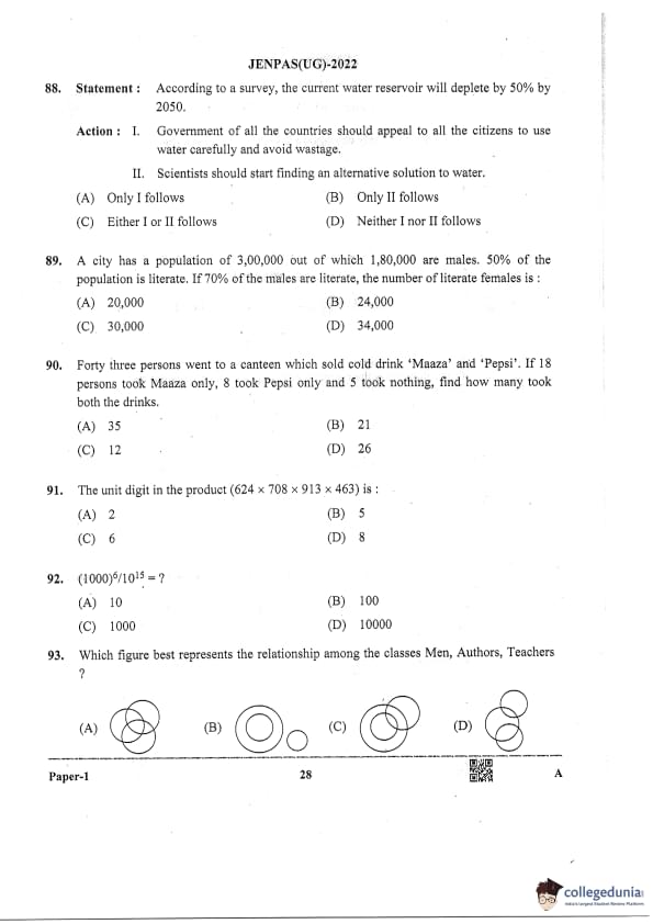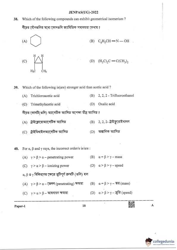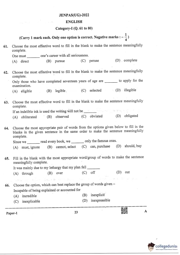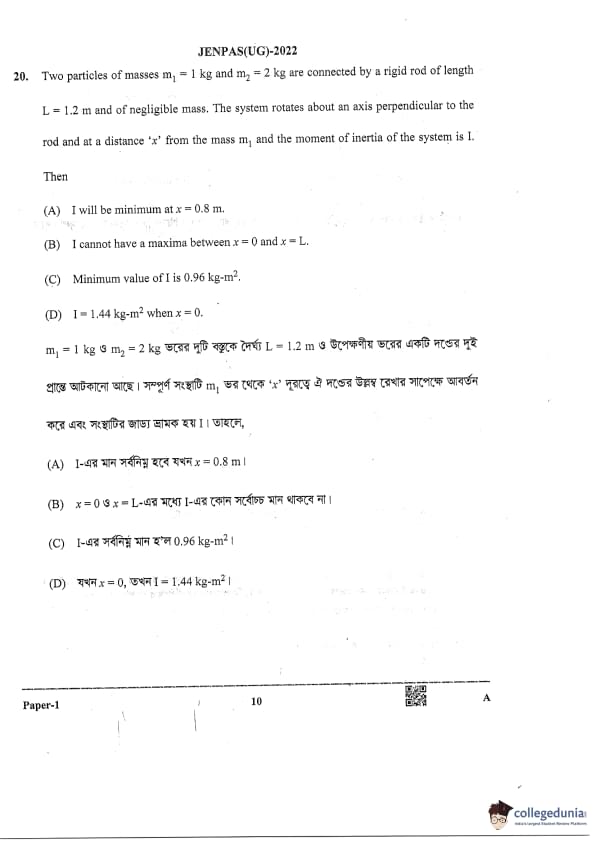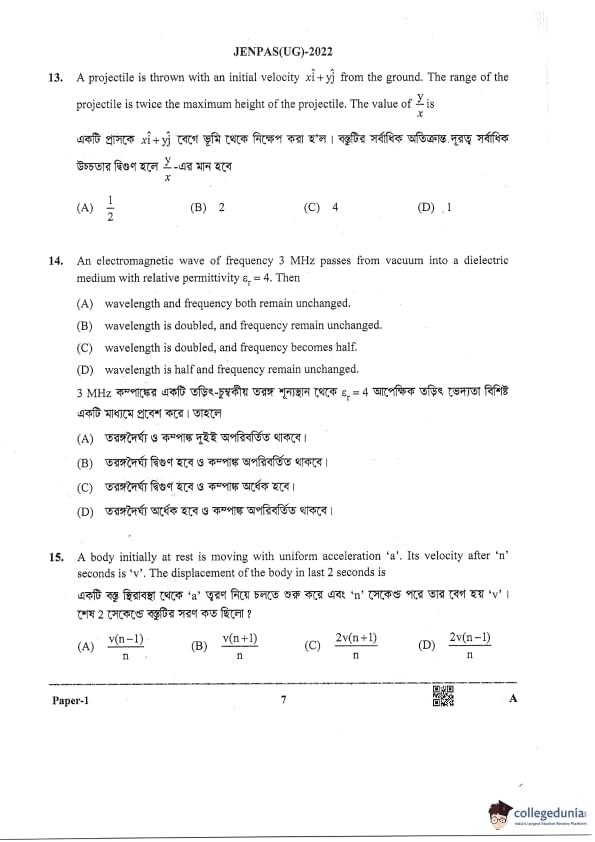 WBJEE JENPAS 2022 Question paper with answer key pdf is available for download. The exam was successfully organized by West Bengal Joint Entrance Examination Board (WBJEEB) on May 15, 2022. The question paper comprised a total of 100 questions.
