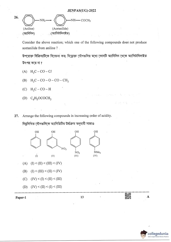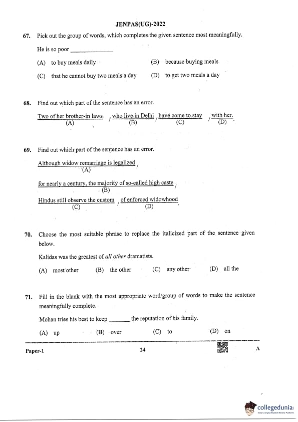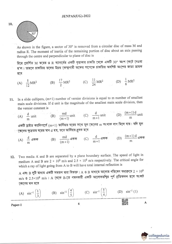 WBJEE JENPAS 2022 Question Paper with Answer Key PDF