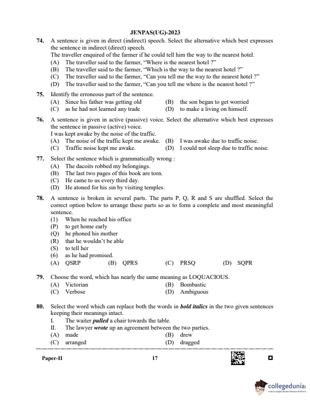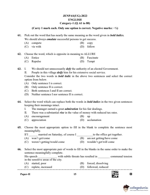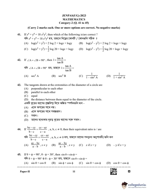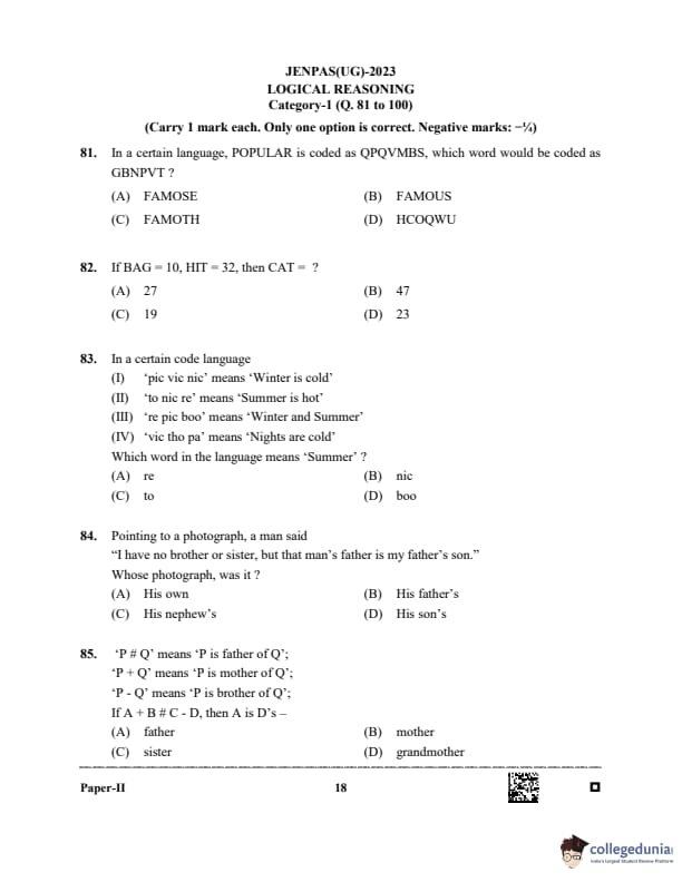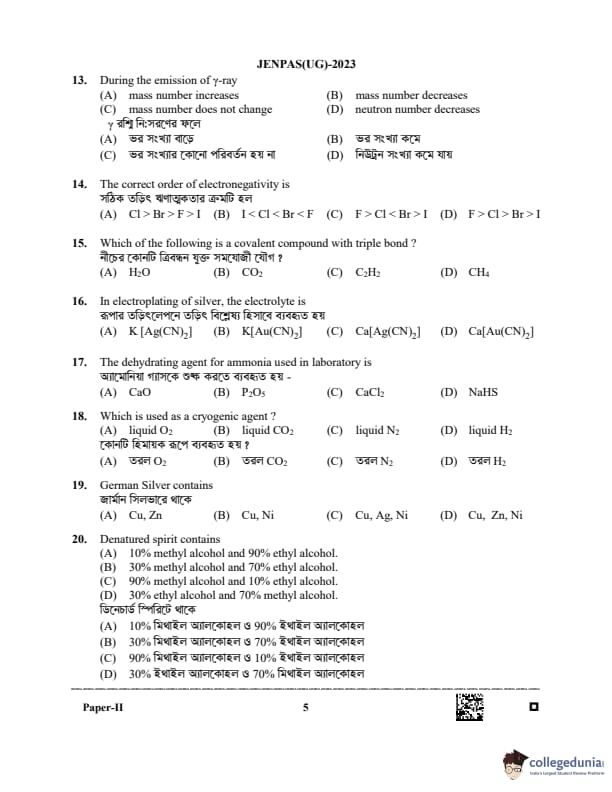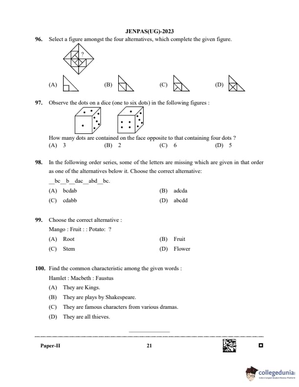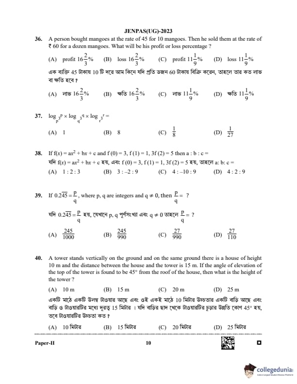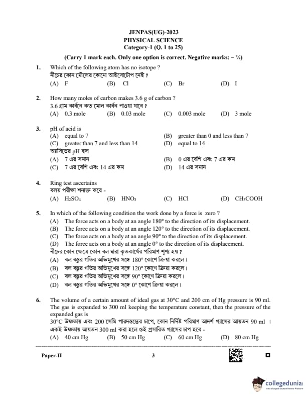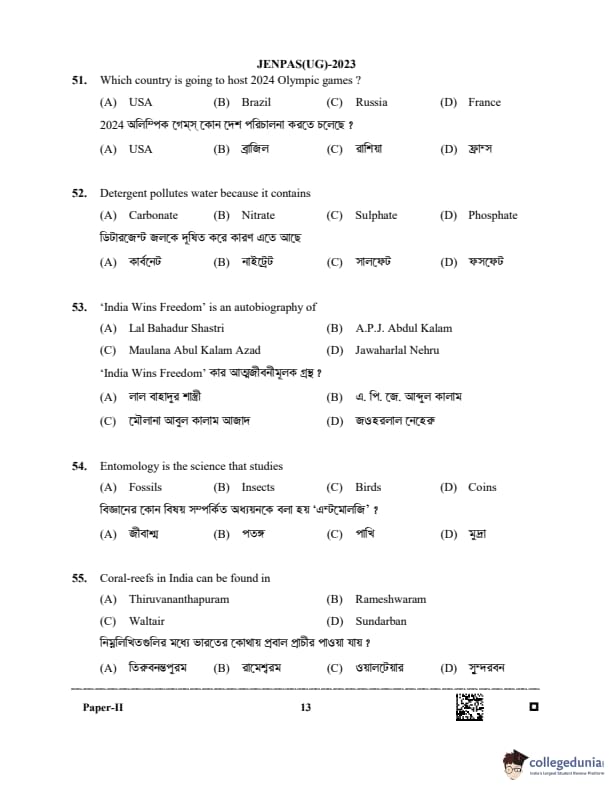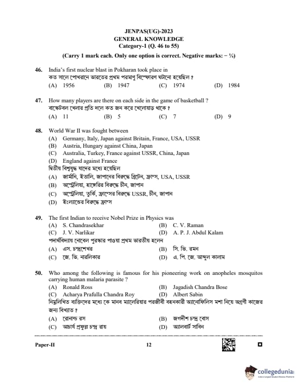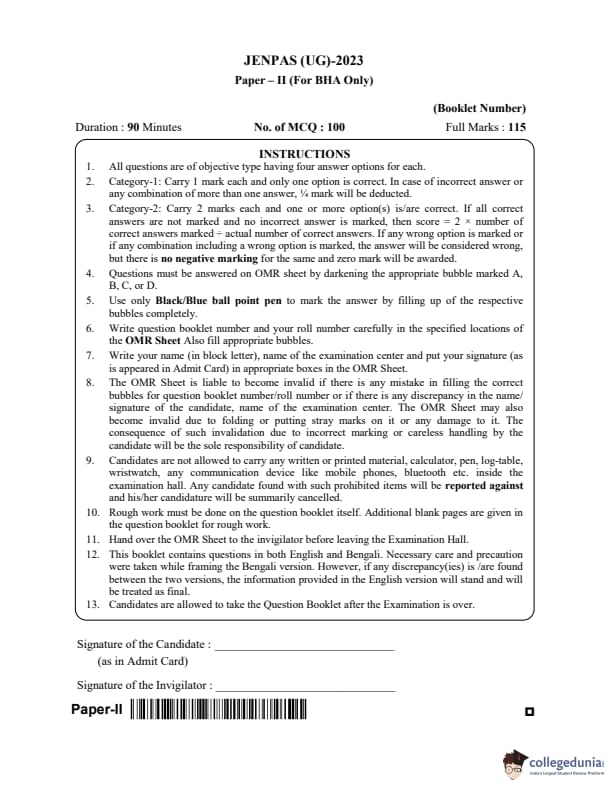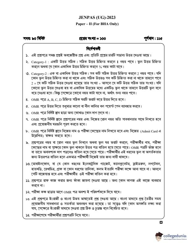 WBJEE JENPAS 2023 BHA Question paper with answer key pdf is available for download. The exam was successfully organized by West Bengal Joint Entrance Examination Board (WBJEEB) on June 11, 2023. The question paper comprised a total of 100 questions.