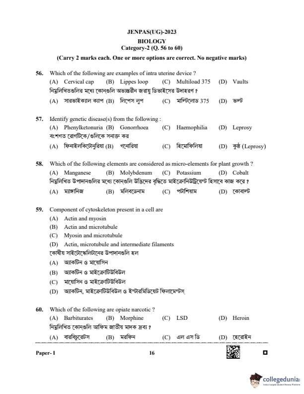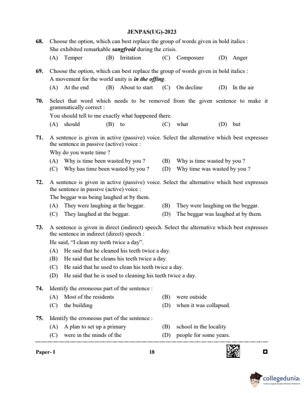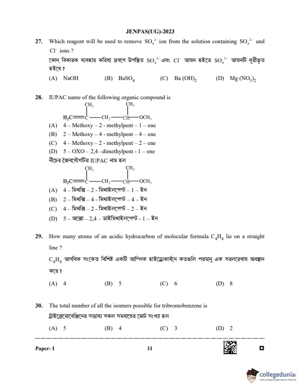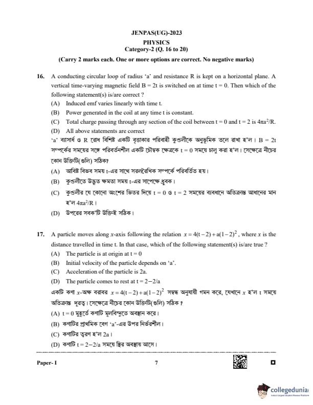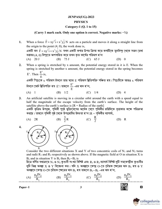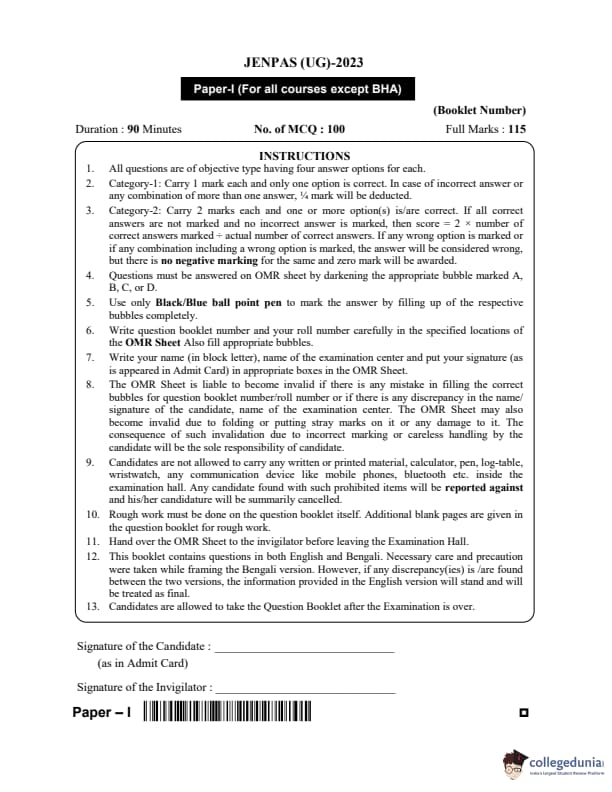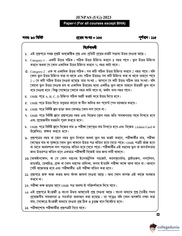 WBJEE JENPAS 2023 Question paper with answer key pdf is available for download. The exam was successfully organized by West Bengal Joint Entrance Examination Board (WBJEEB) on June 11, 2023. The question paper comprised a total of 100 questions.