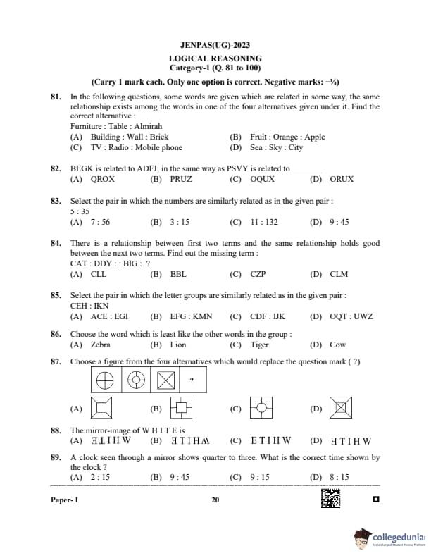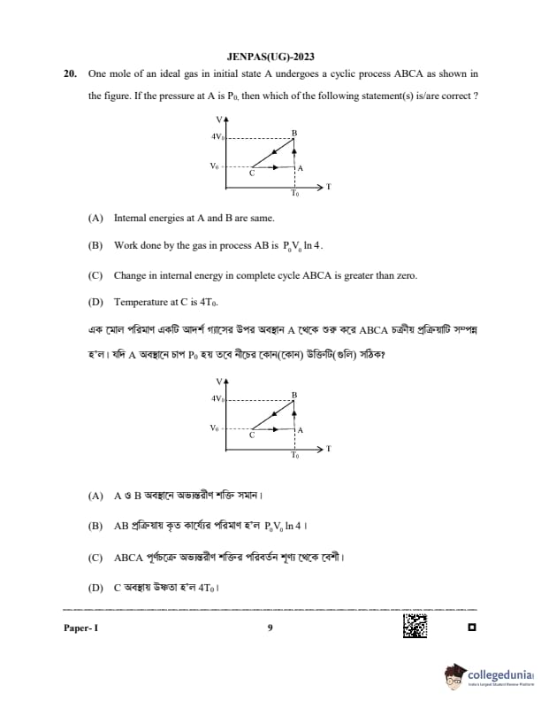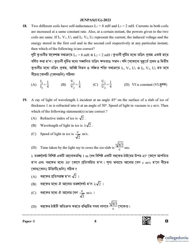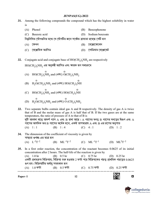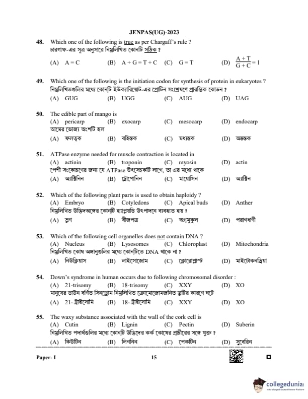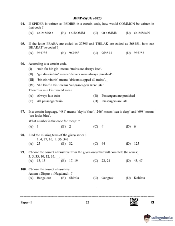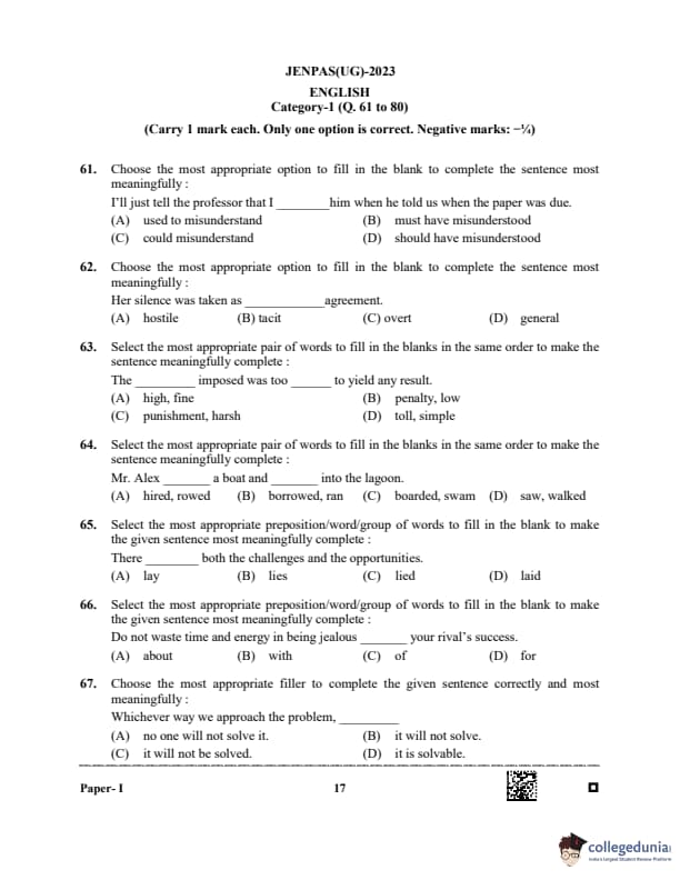 WBJEE JENPAS 2023 Question paper with answer key pdf is available for download. The exam was successfully organized by West Bengal Joint Entrance Examination Board (WBJEEB) on June 11, 2023. The question paper comprised a total of 100 questions.