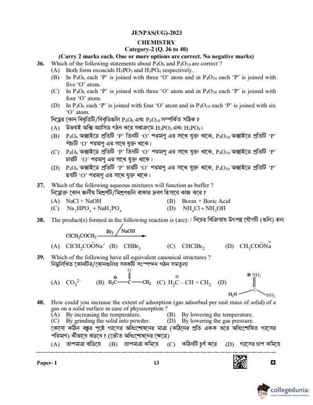 WBJEE JENPAS 2023 Question Paper with Answer Key PDF