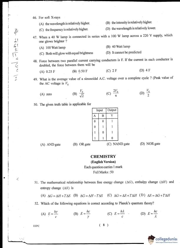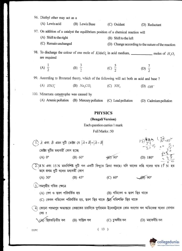 WBJEE JENPAS UG 2012 PHYSICS & CHEMISTRY Question paper with answer key pdf is available for download. The exam was successfully organized by West Bengal Joint Entrance Examination Board (WBJEEB). The question paper comprised a total of 100 questions.